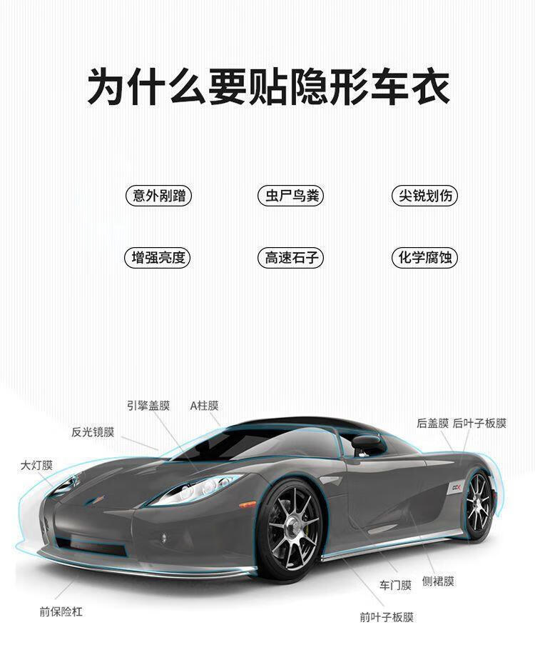 Murannuoer is suitable for car clothing film, car invisible car clothing tph protective film, transparent motorcycle full vehicle film, car shell film 80CM*1.52 meters
