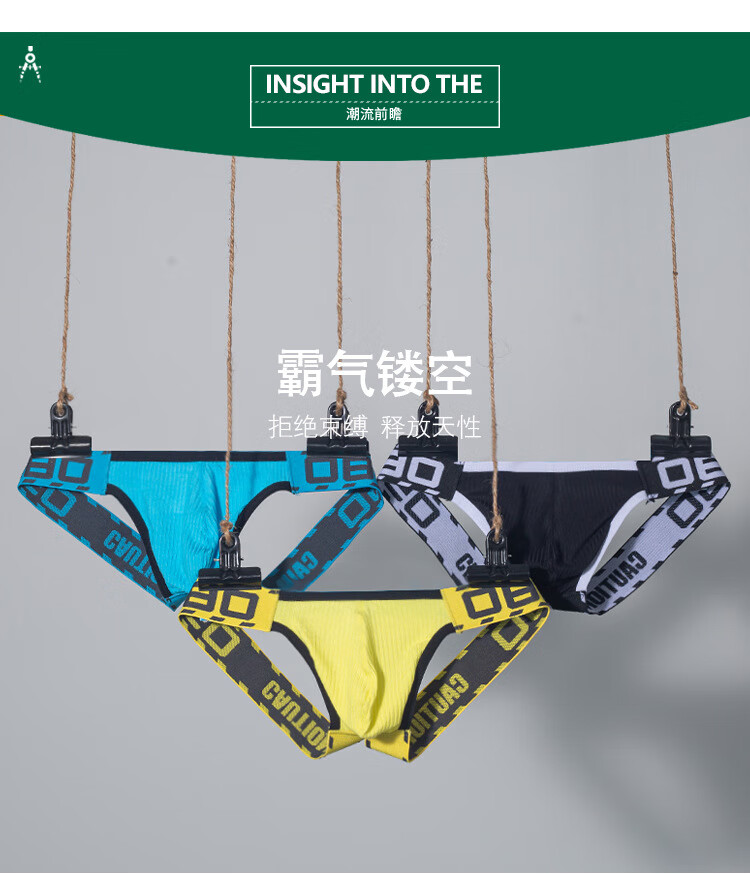 Adano men's thong low-rise solid color cotton breathable underwear BS3209 yellow 2XL