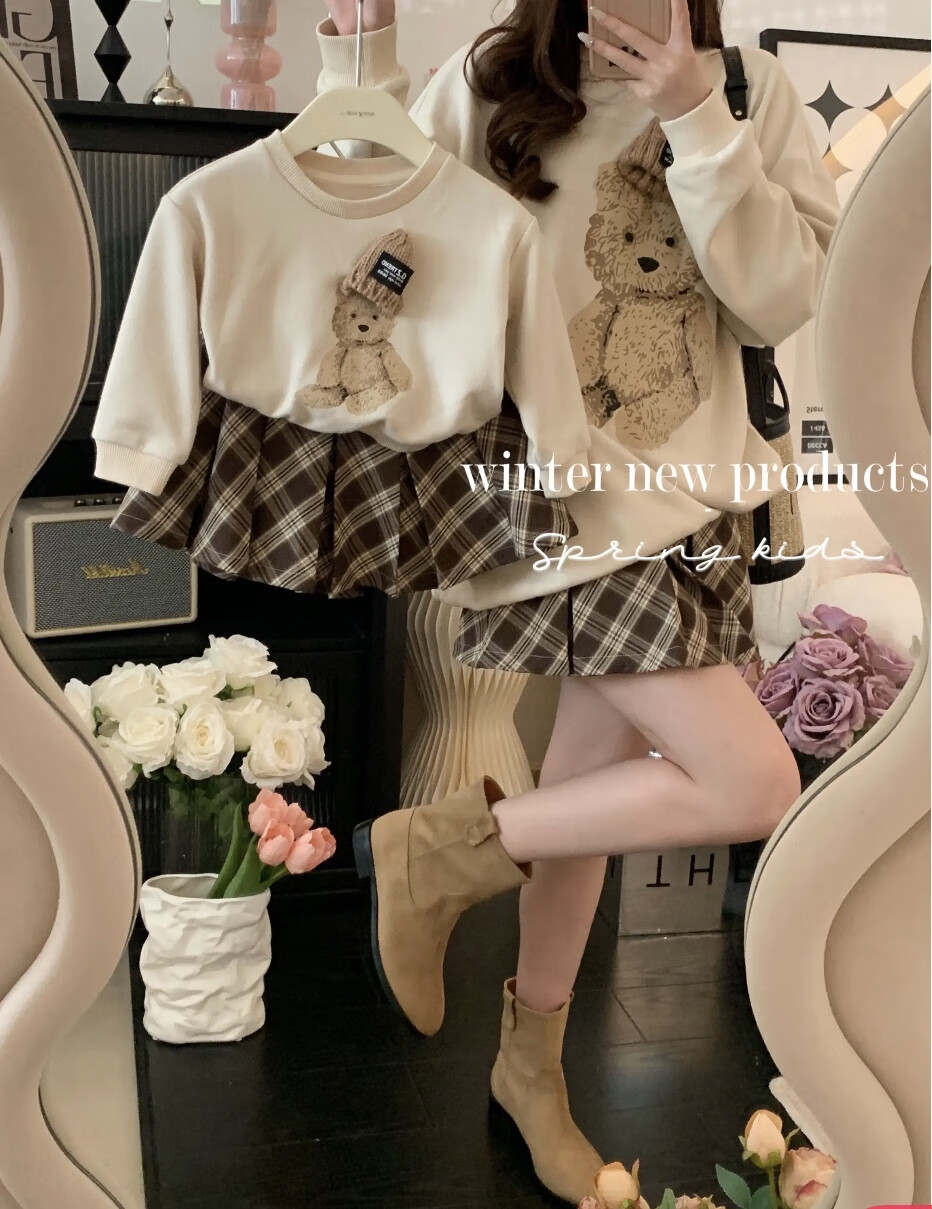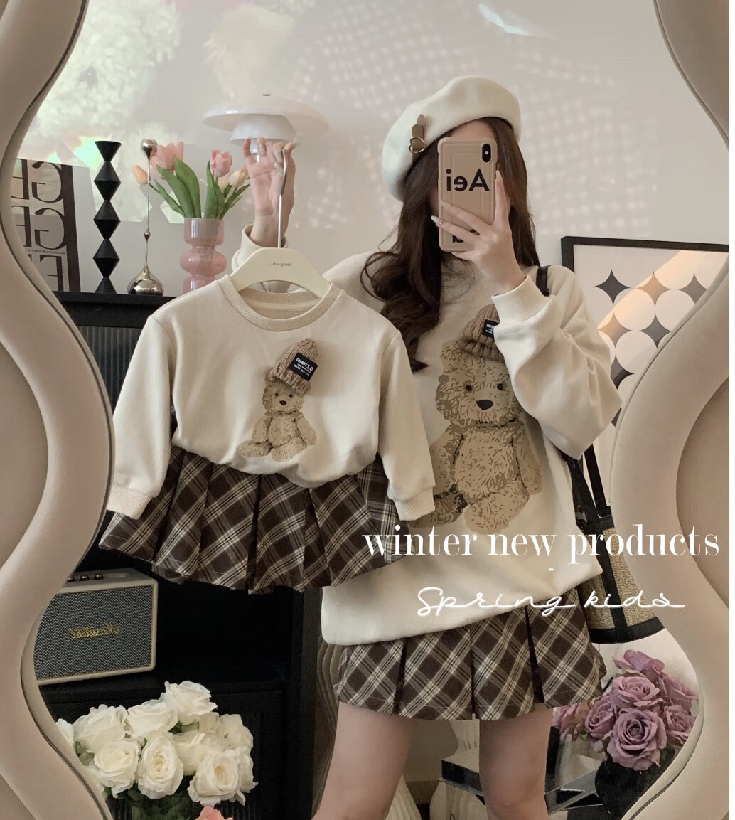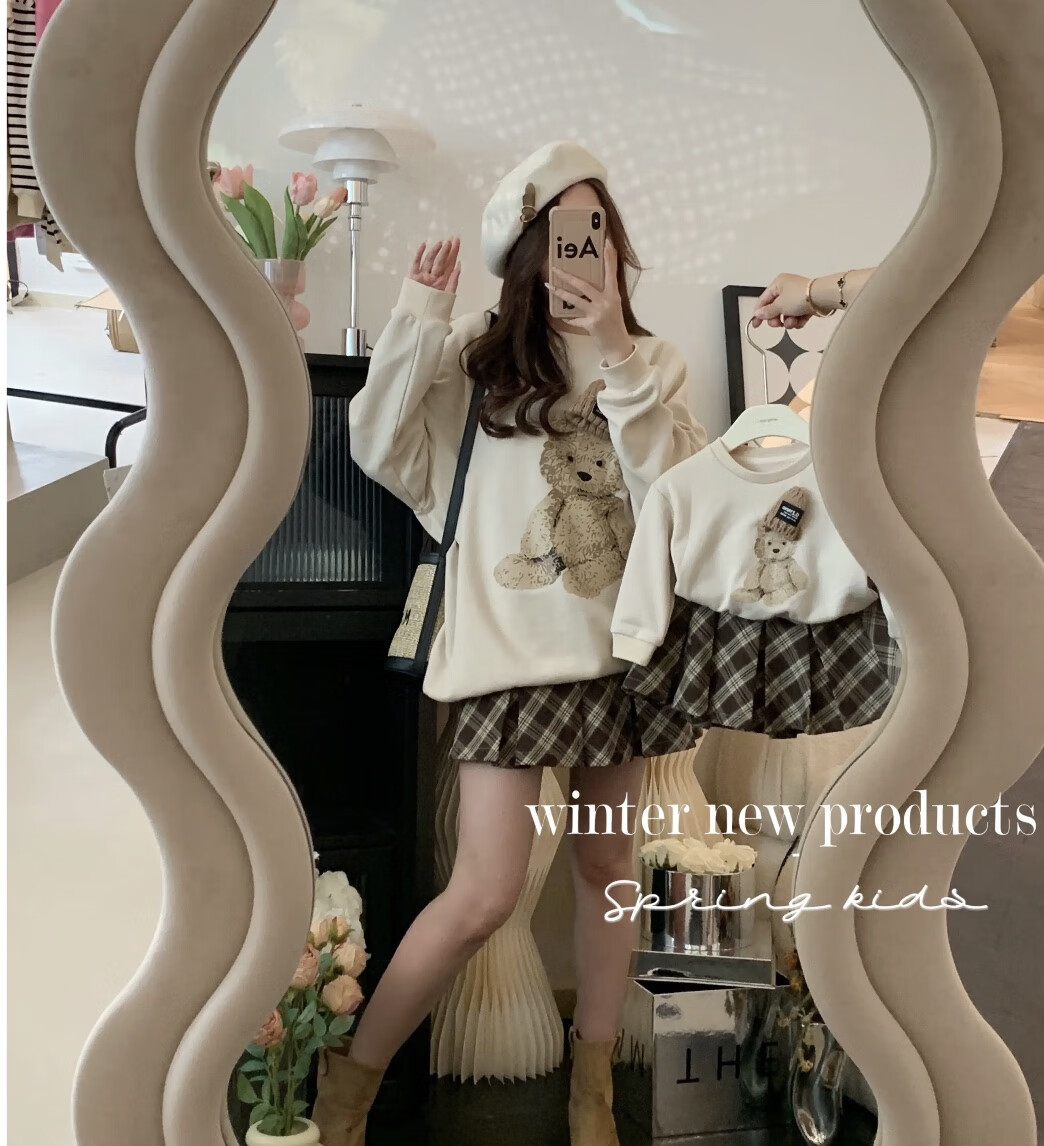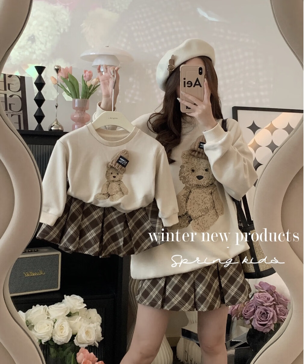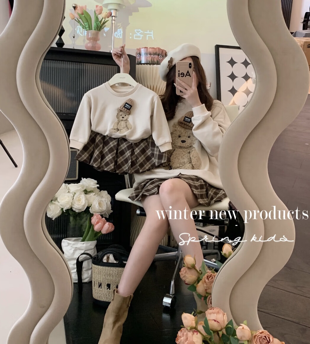 Yunshun parent-child autumn clothing for a family of three or four baby bear long-sleeved skirt mother-child mother-daughter sweatshirt set bear sweatshirt + skirt baby size 90