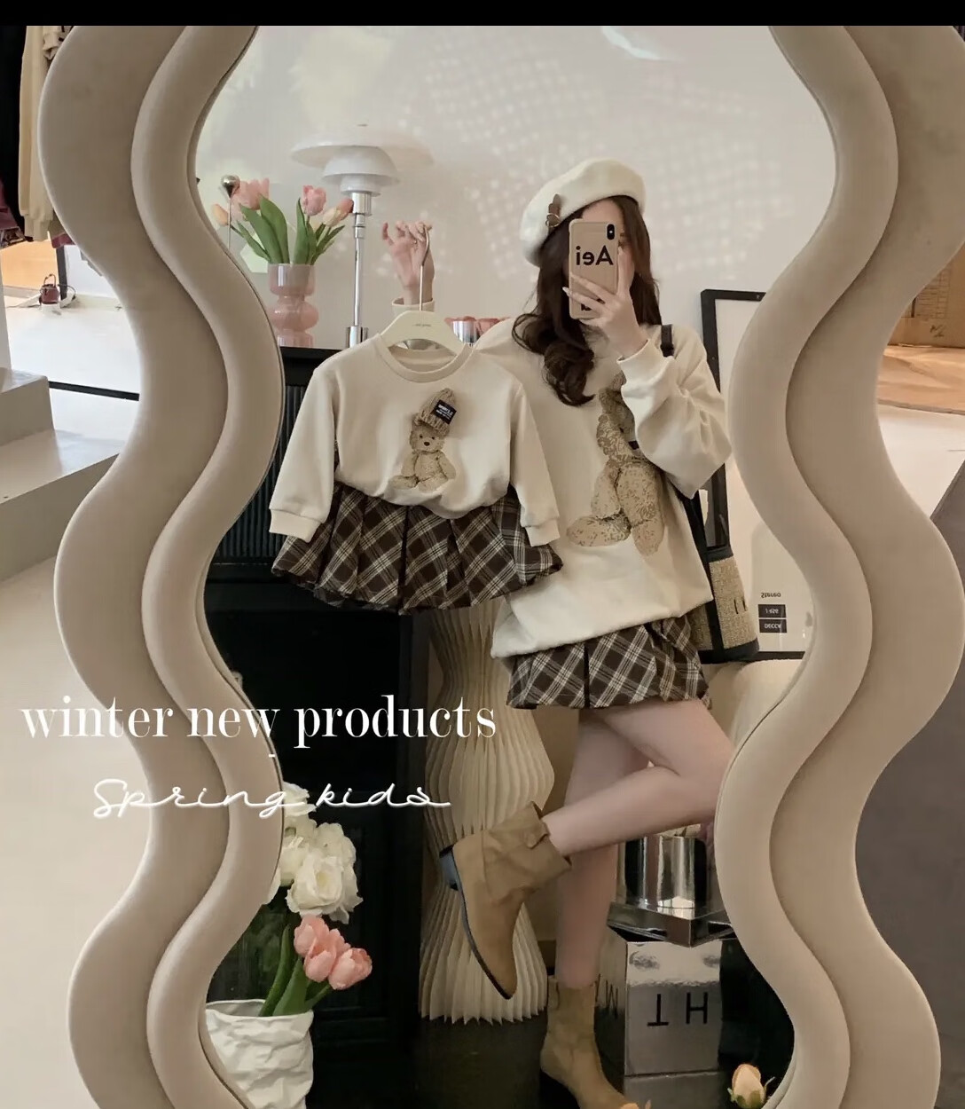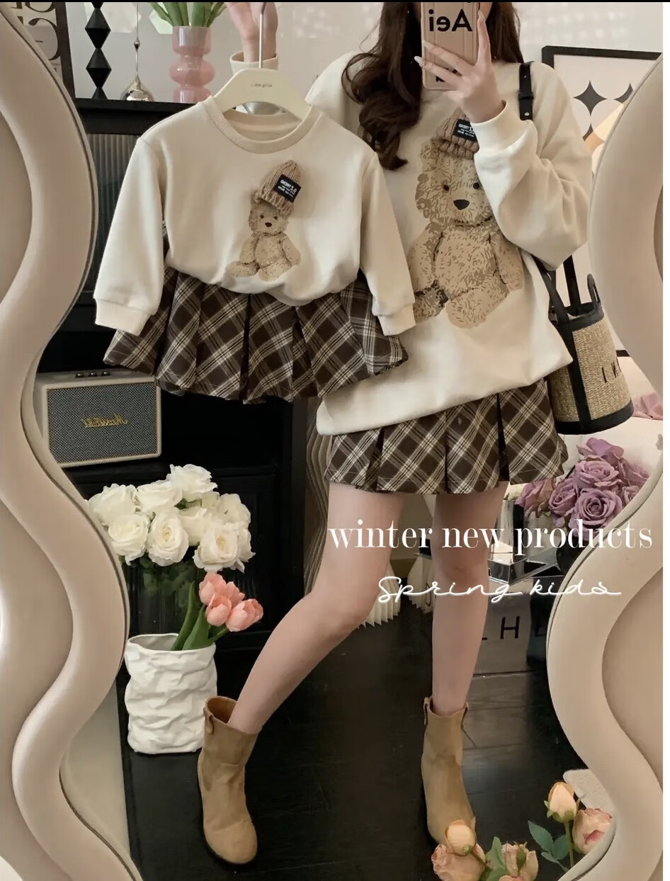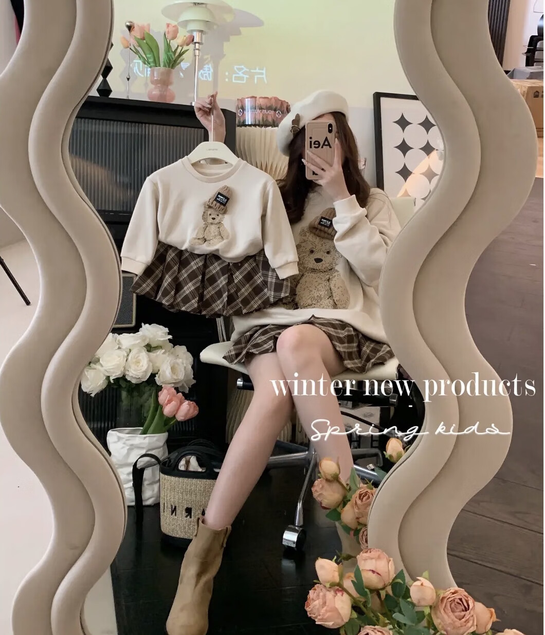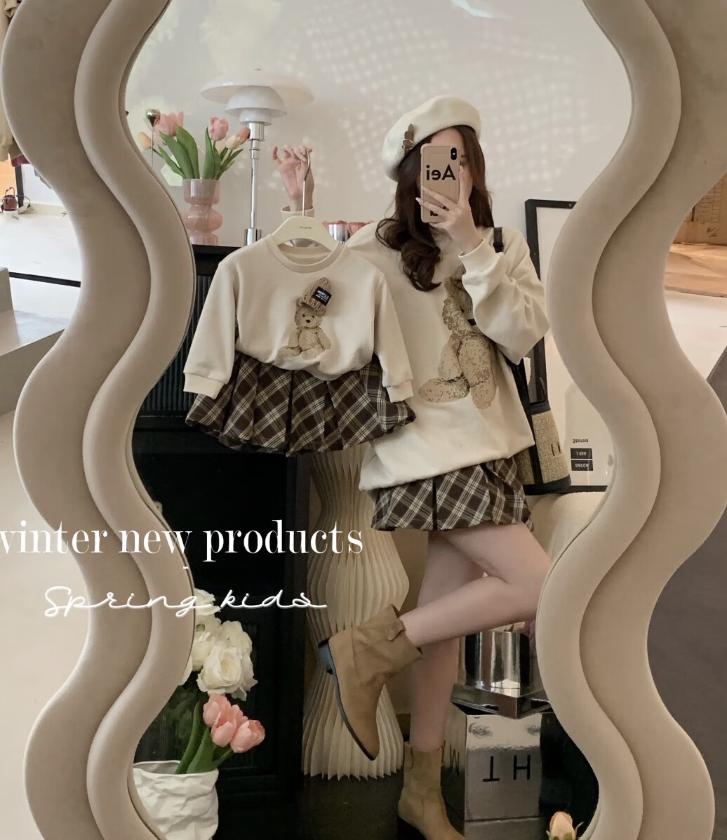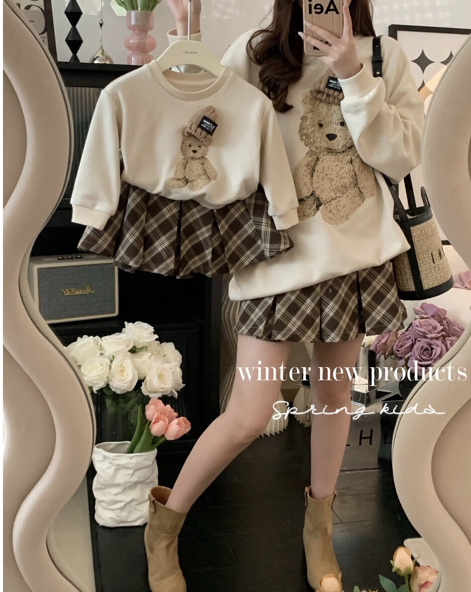 Yunshun parent-child autumn clothing for a family of three or four baby bear long-sleeved skirt mother-child mother-daughter sweatshirt set bear sweatshirt + skirt baby size 90