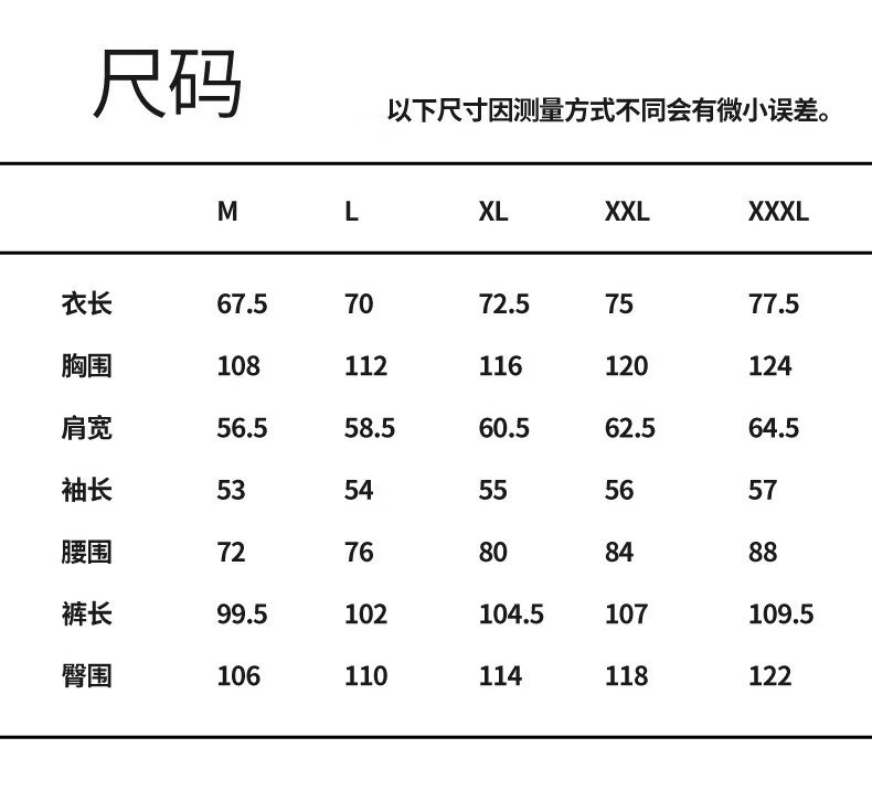 Outseam (cm) 99 cm 101.5 cm 104 cm 106.5 cm 109 cm