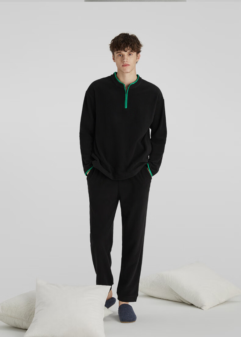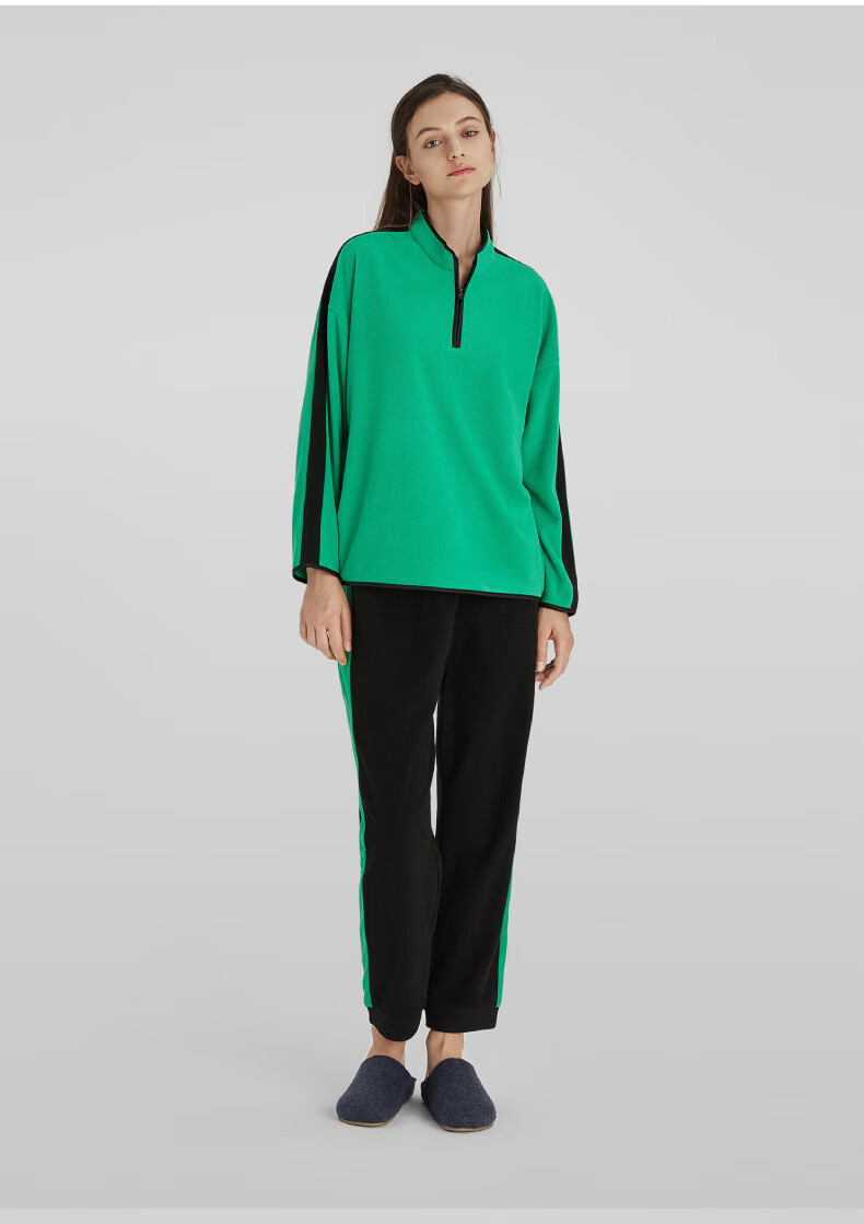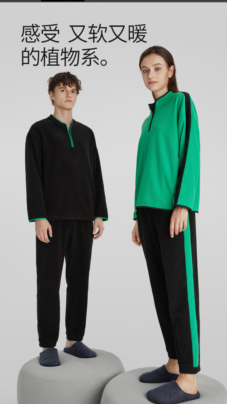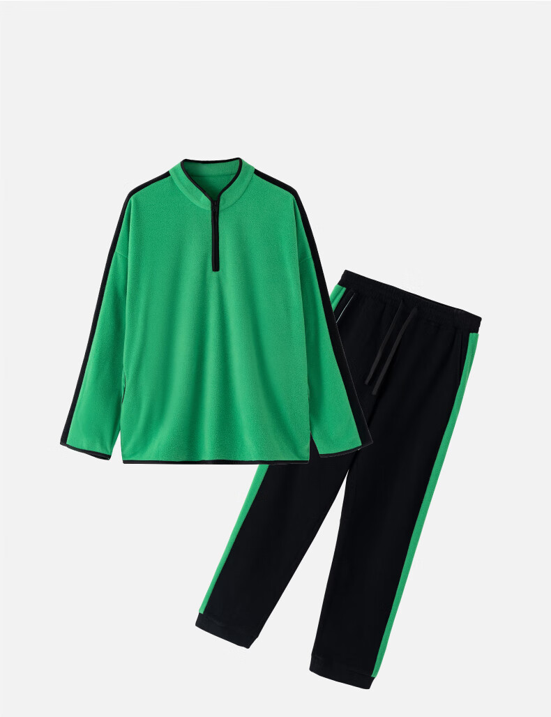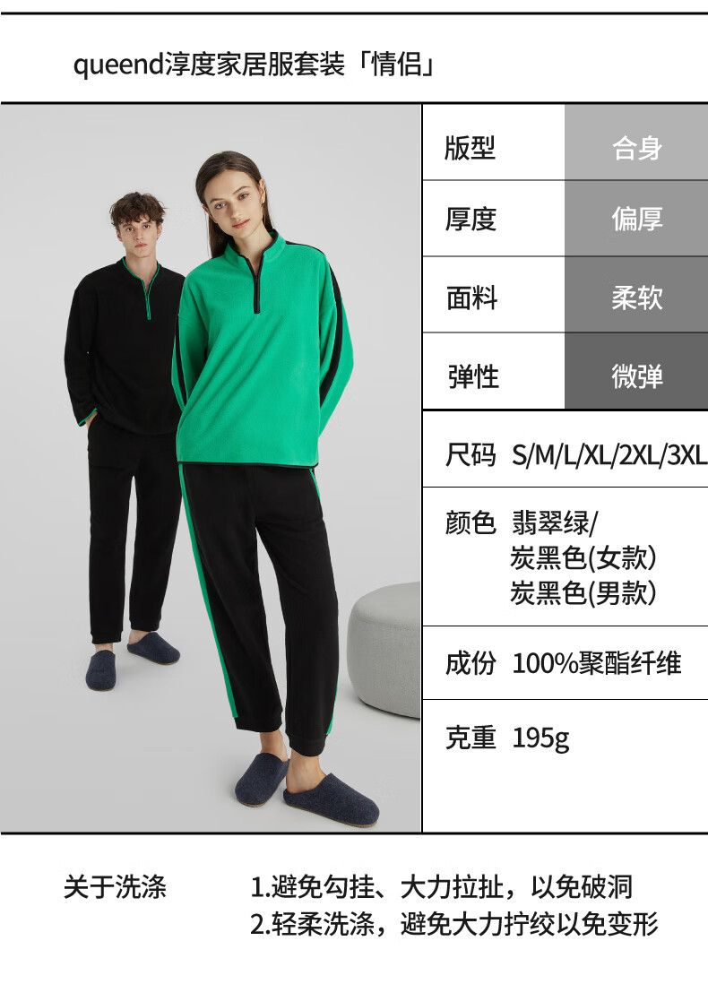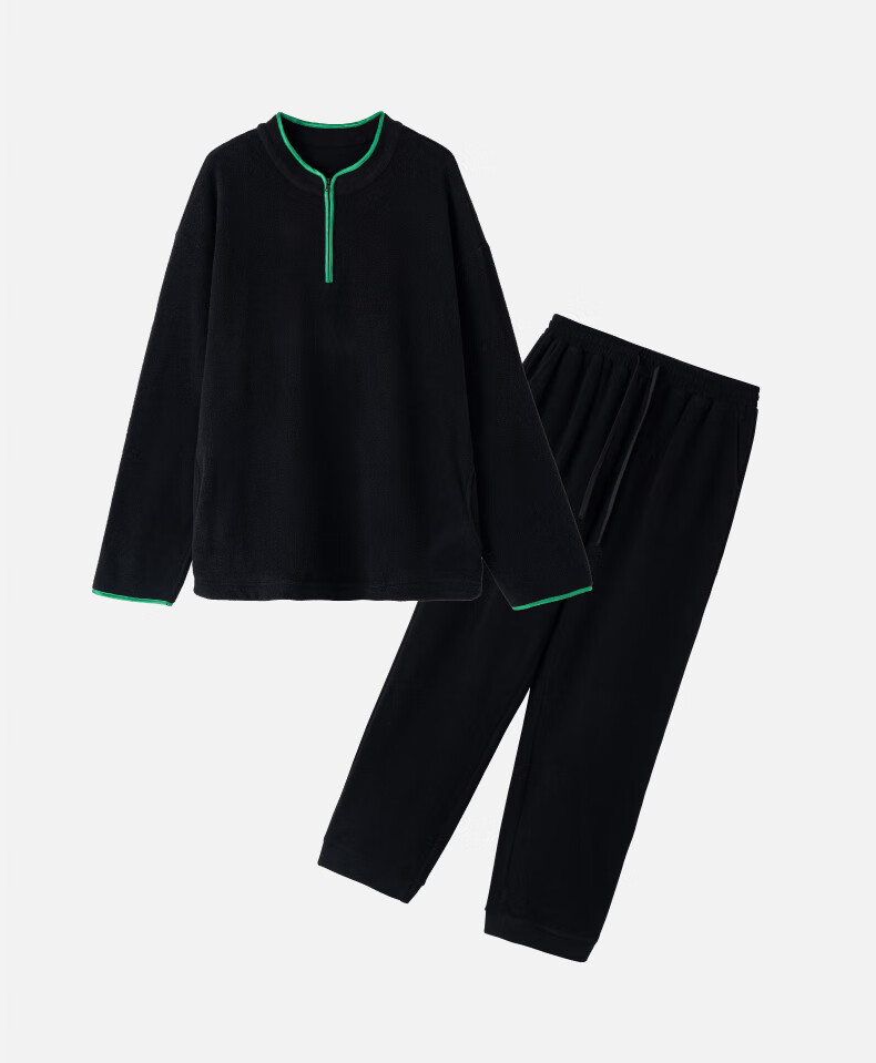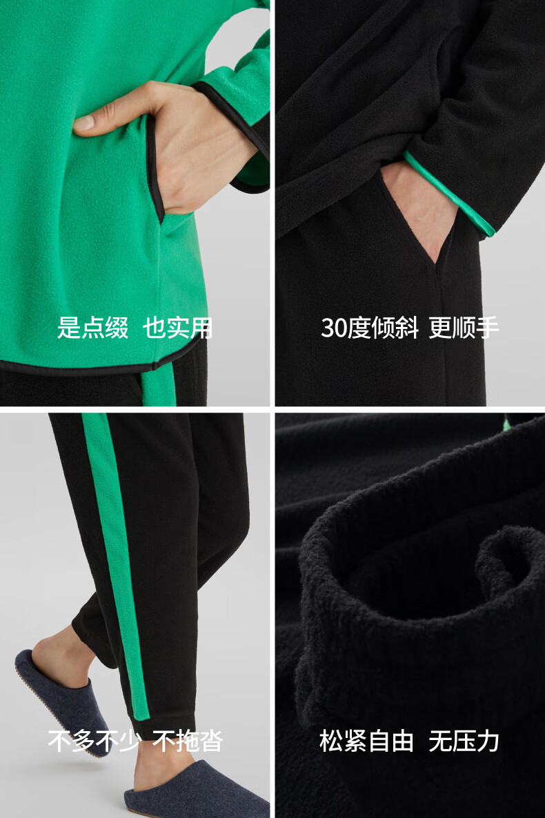 Chundu is soft, light and warm, polar fleece pajamas, autumn and winter thickened couple wear, men's and women's casual sports home wear, emerald green/charcoal black M