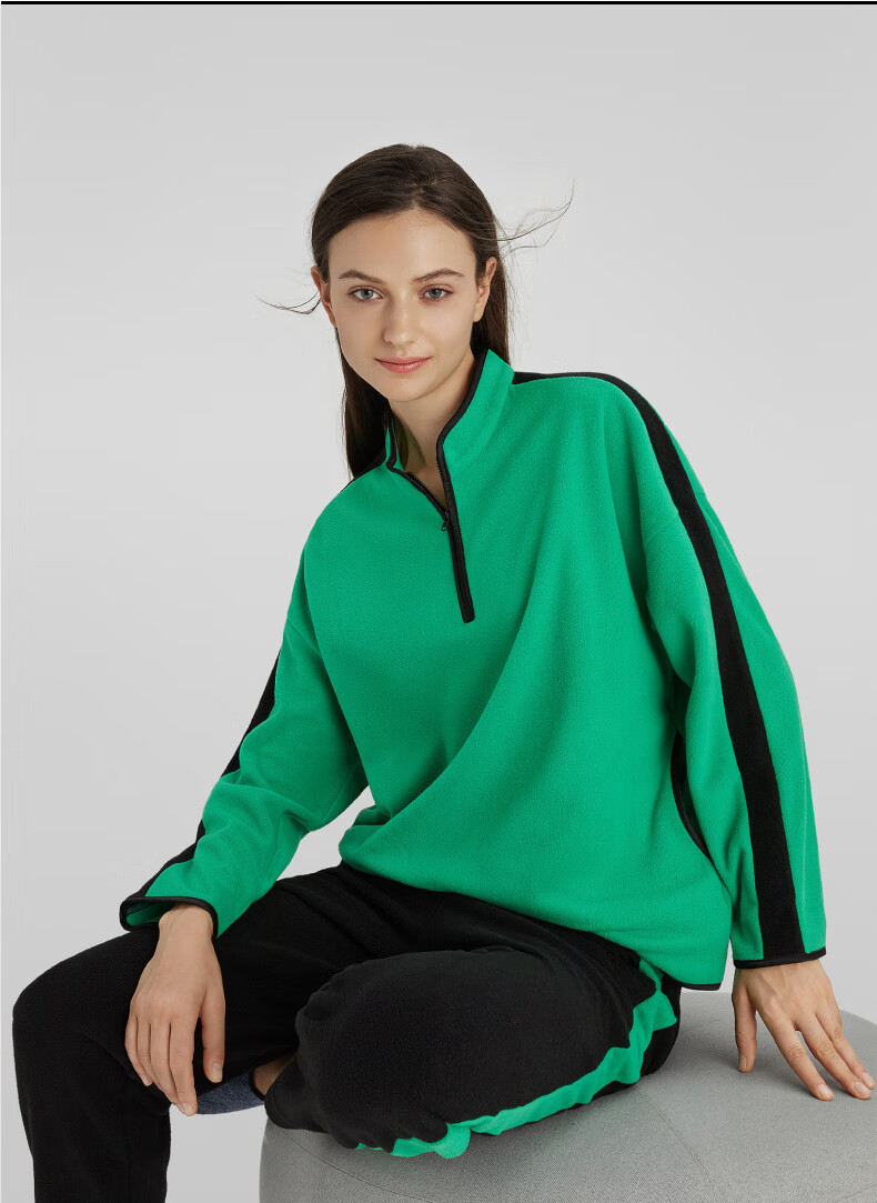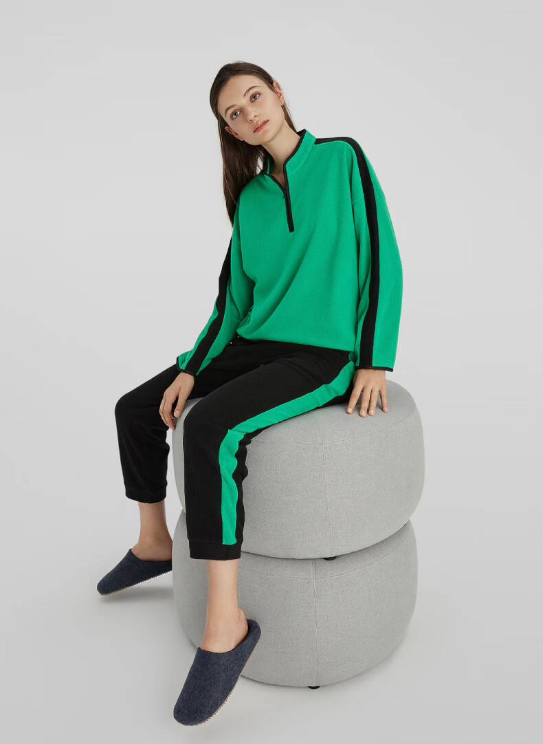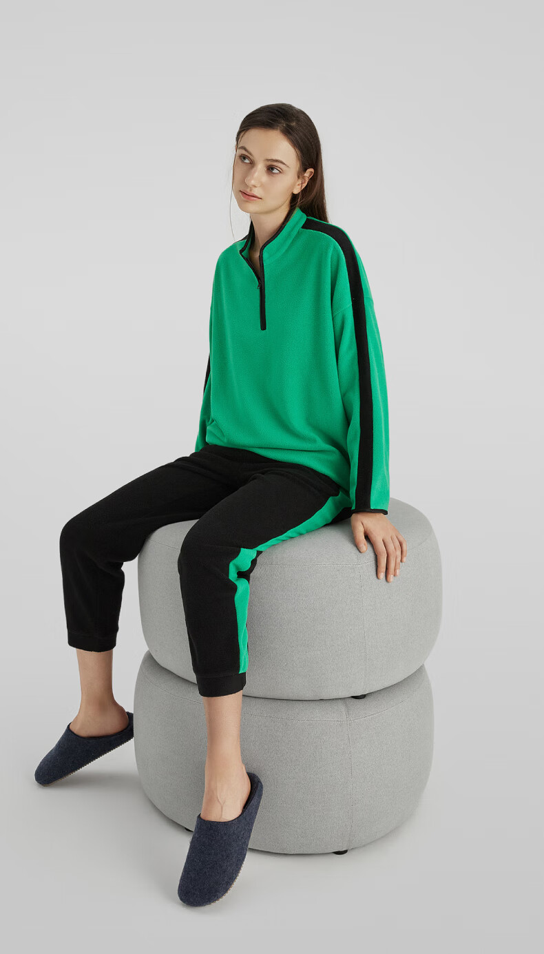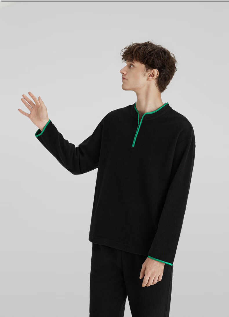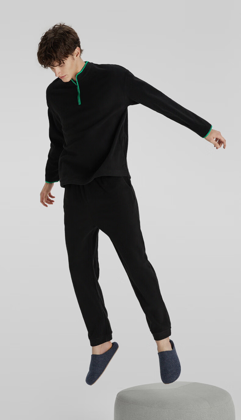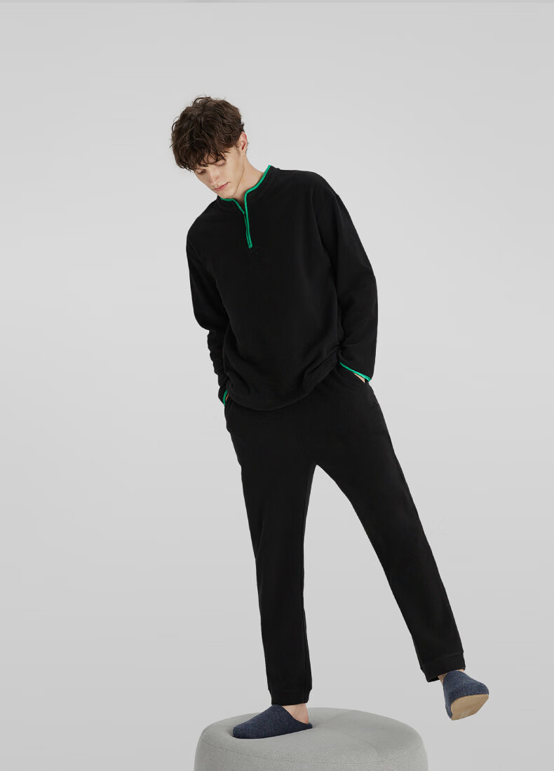 Chundu is soft, light and warm, polar fleece pajamas, autumn and winter thickened couple wear, men's and women's casual sports home wear, emerald green/charcoal black M