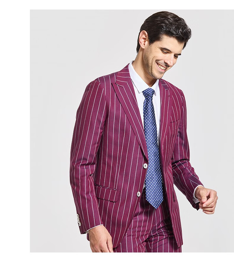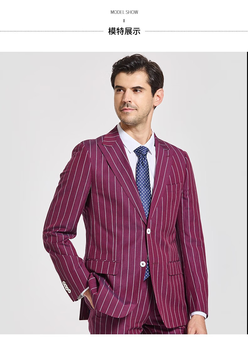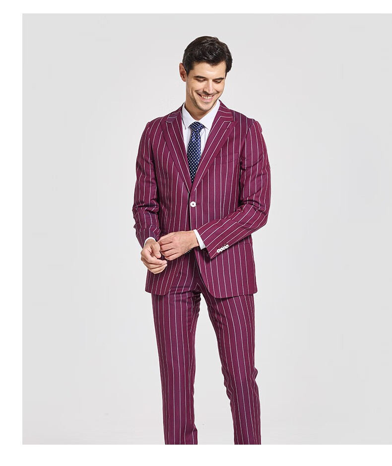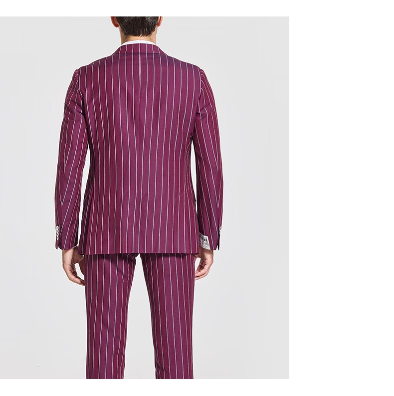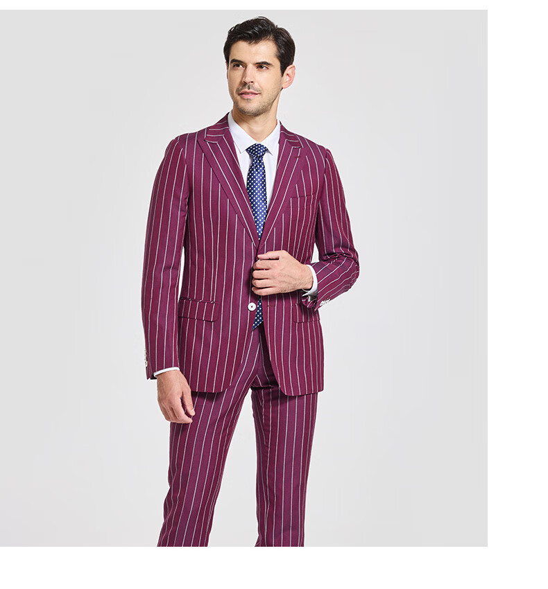 Jijia autumn and winter fashion suit two-piece casual men's striped VBC wool suit jacket rose red 175/96A suit + trousers
