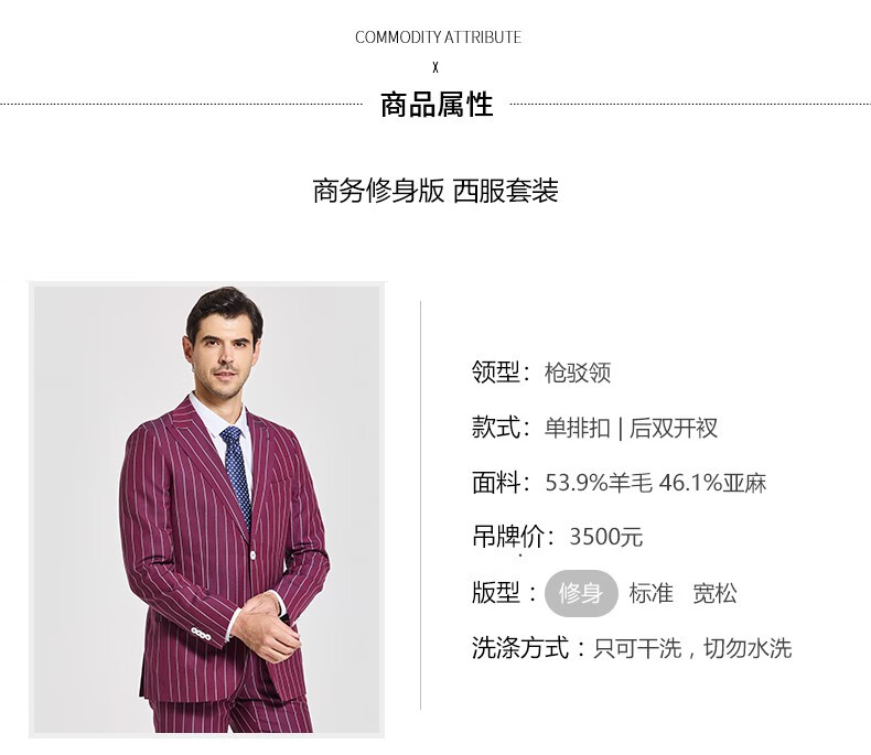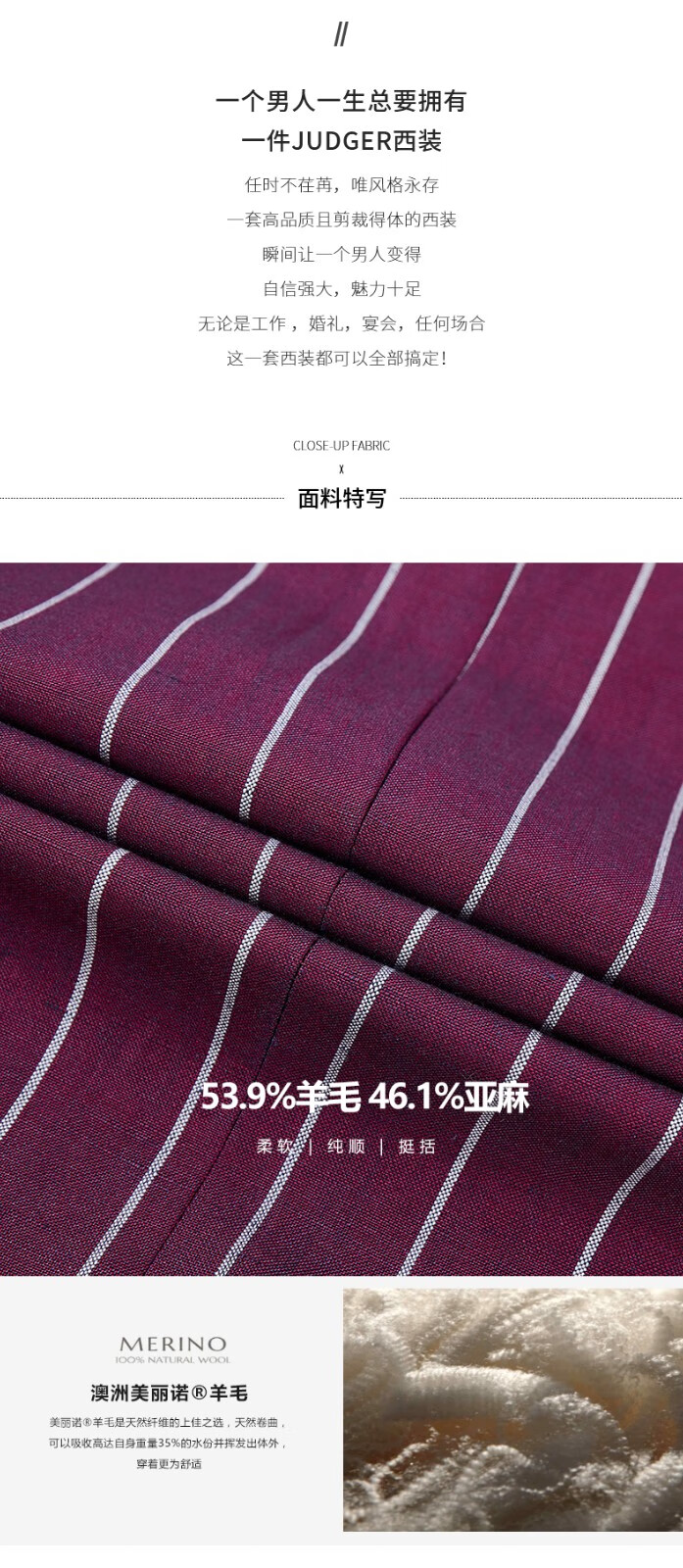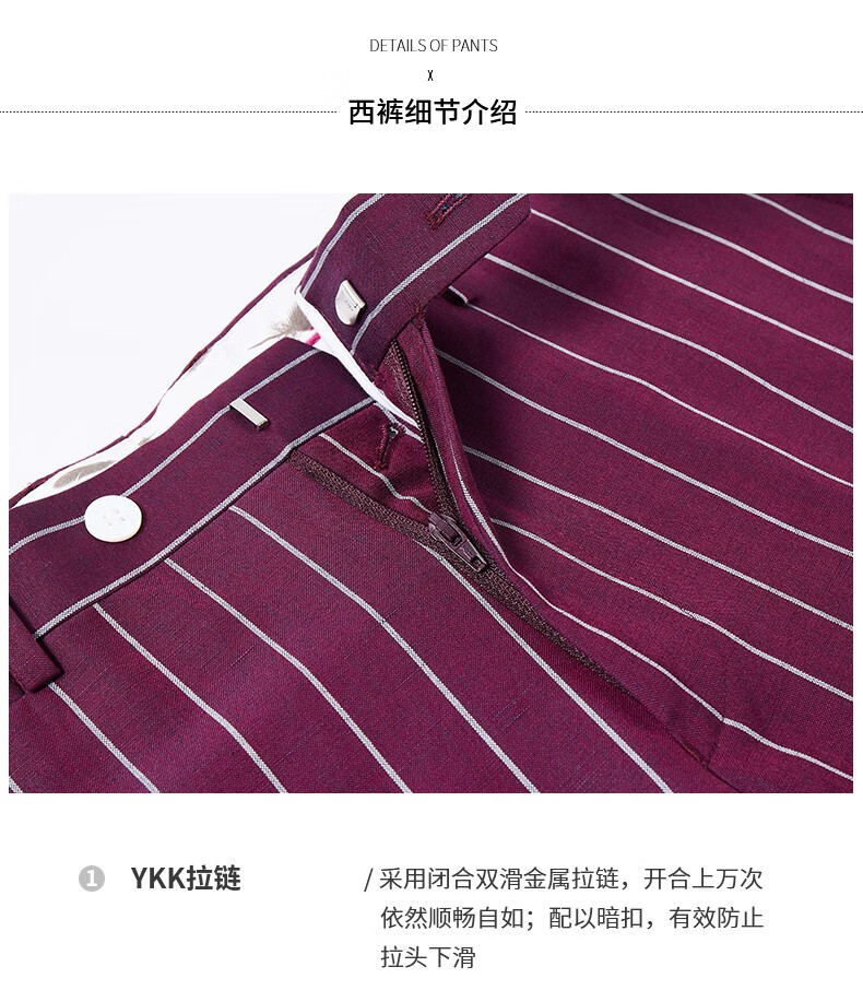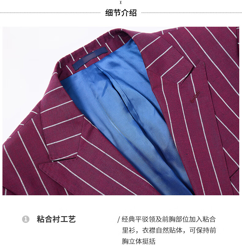Jijia autumn and winter fashion suit two-piece casual men's striped VBC wool suit jacket rose red 175/96A suit + trousers