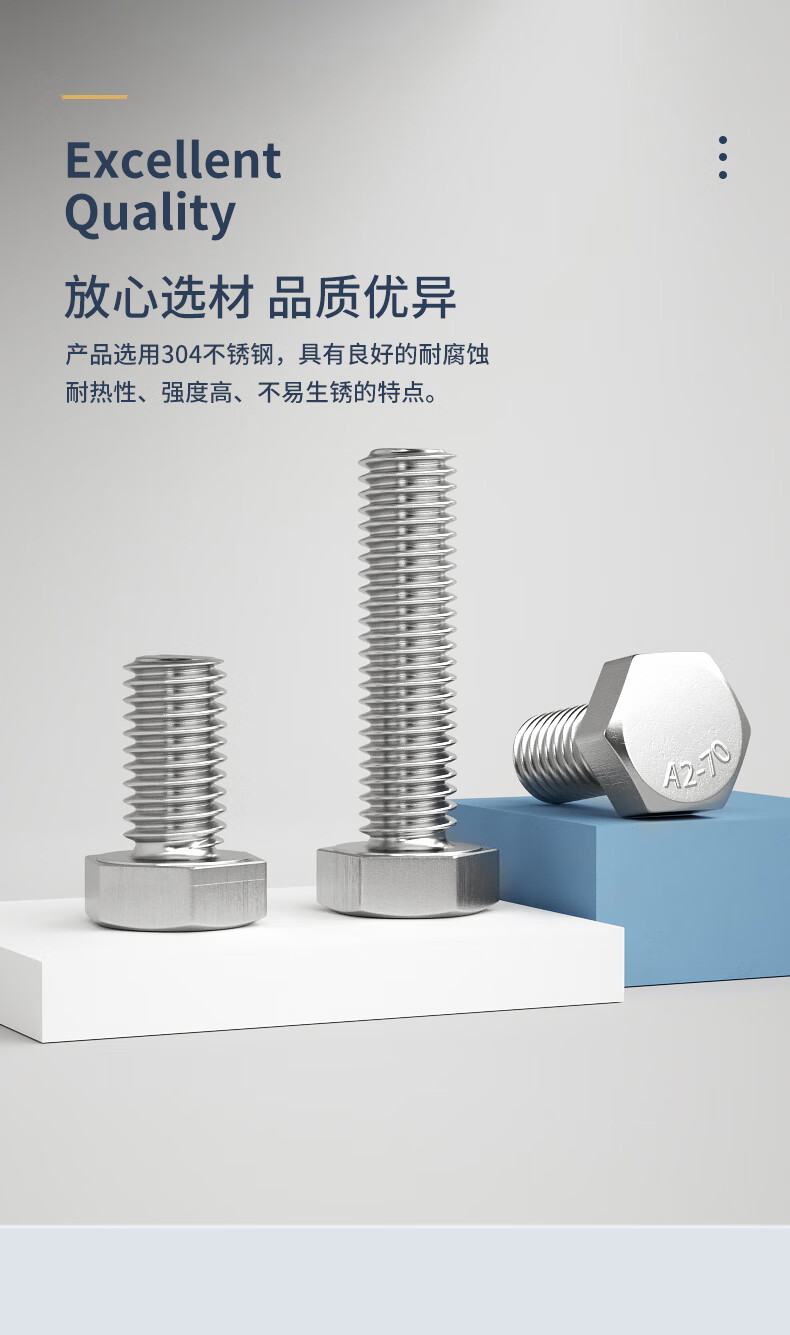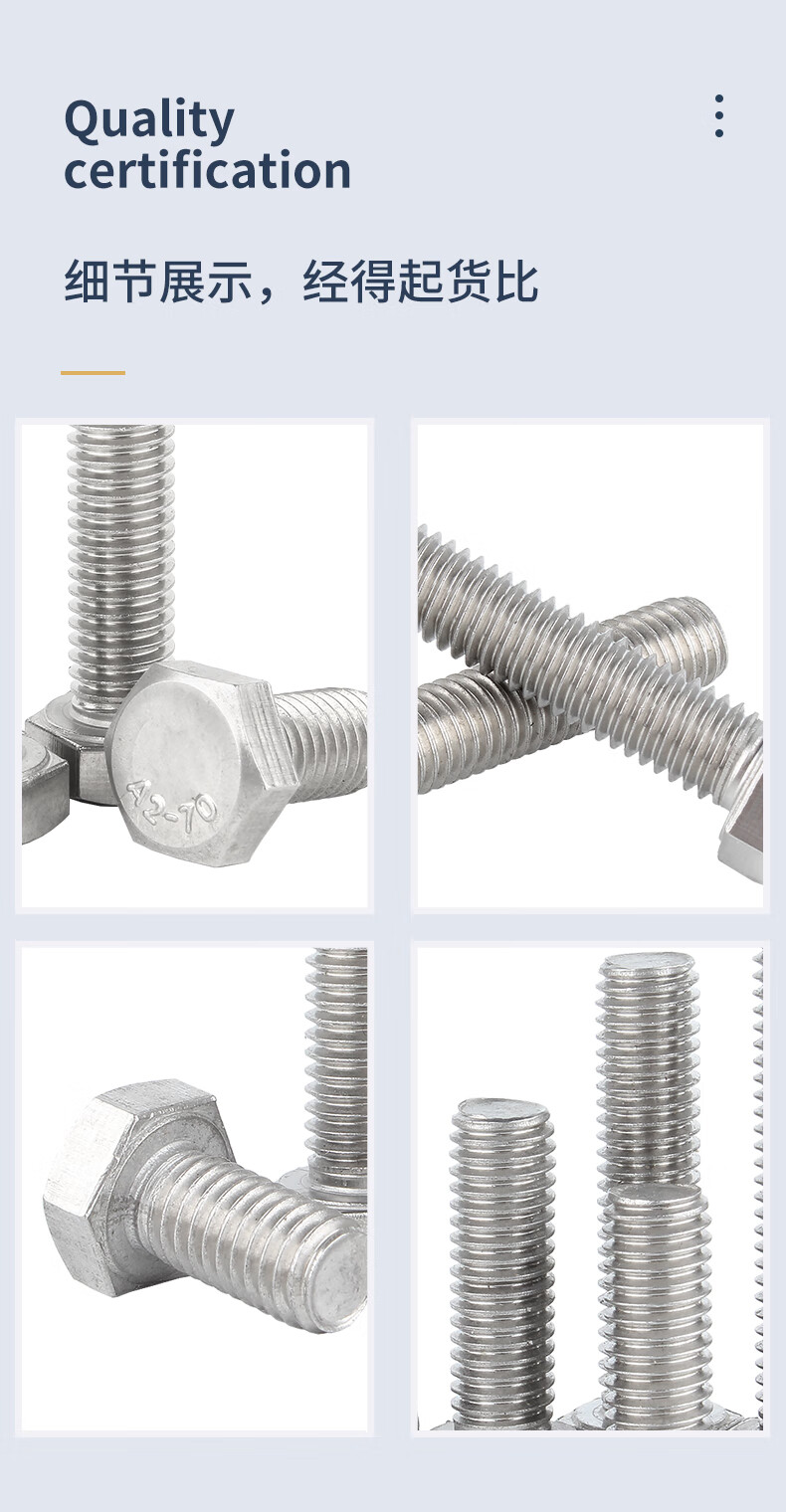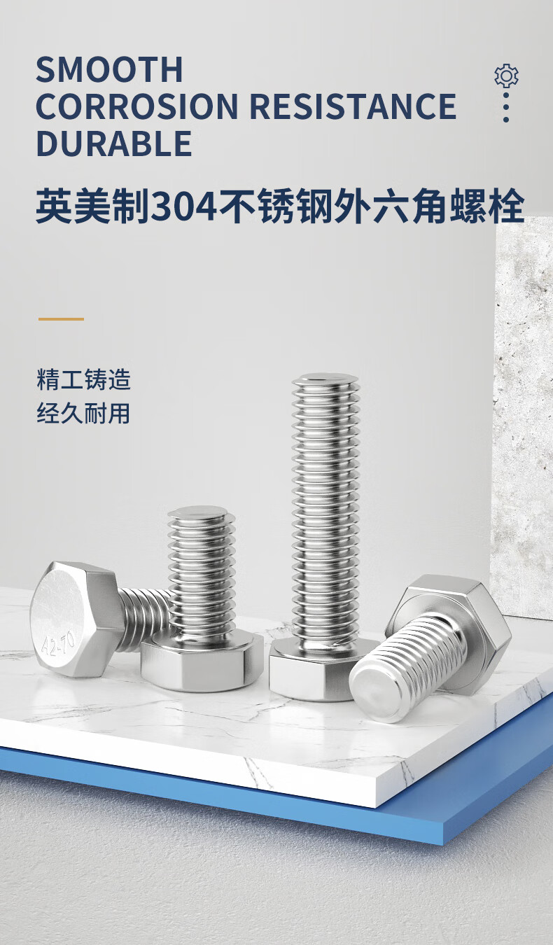 Guwanji 304 stainless steel external hexagonal screws, coarse thread UNC inch bolts, fine thread American screw fasteners, 1/2-13x1-1/2 2 pieces