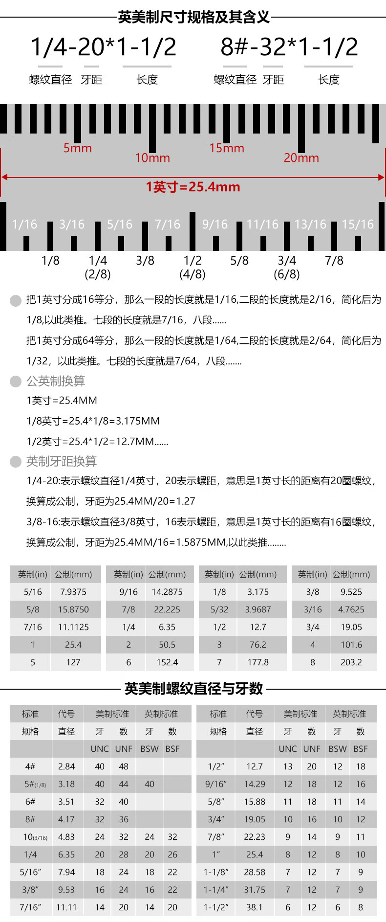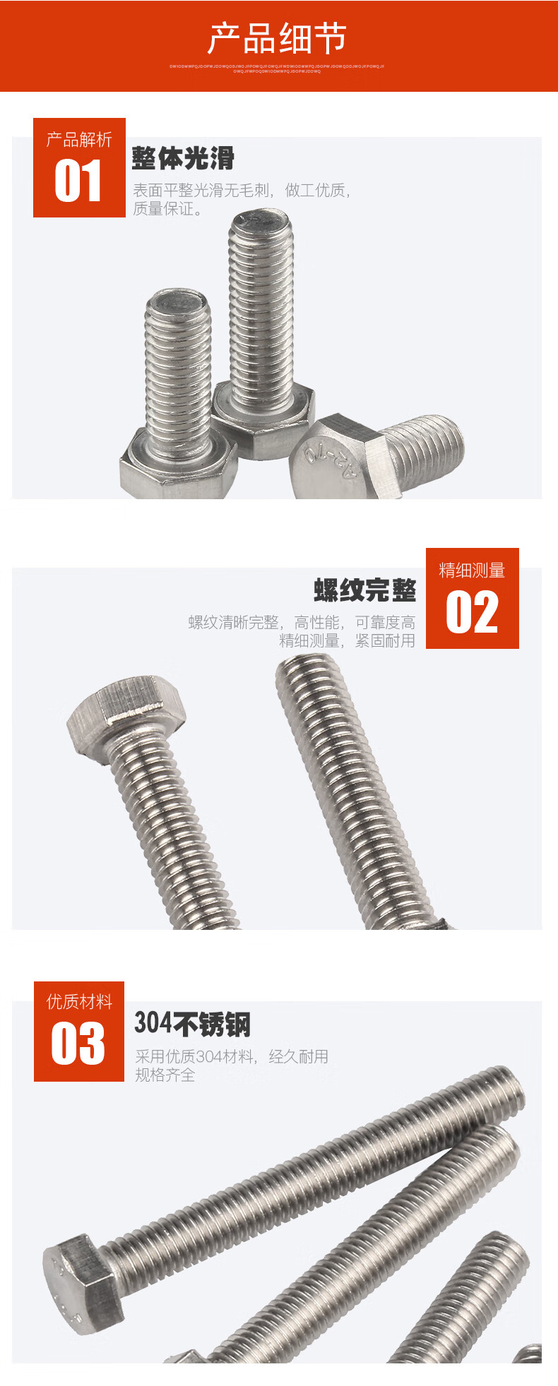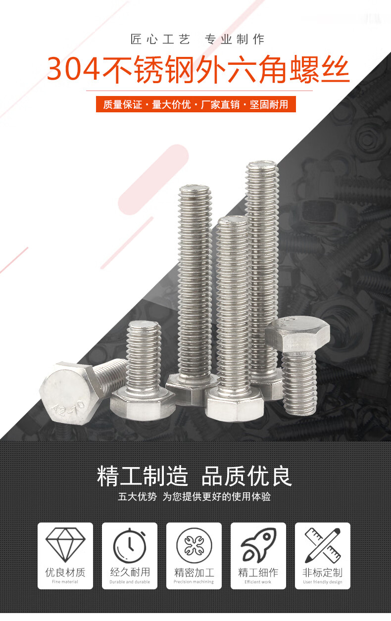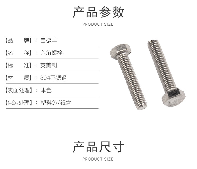 Baodefeng 304 stainless steel external hexagonal screws, coarse thread UNC inch bolts, fine thread American screw fasteners, 1/4-28x1/2 10 pieces