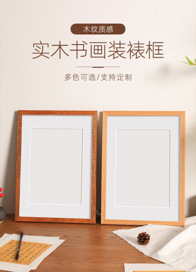 Senmiao solid wood a4 photo frame table blank calligraphy French painting frame wall hanging 4k wooden frame 8k frame can be customized and self-assembled Teak color-selected solid wood can be customized 30-inch wall hanging-can hold 50.2*75.2cm