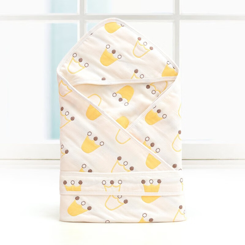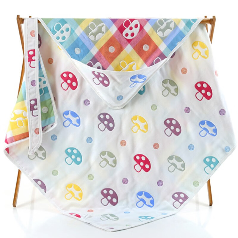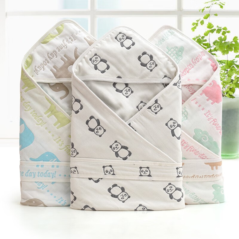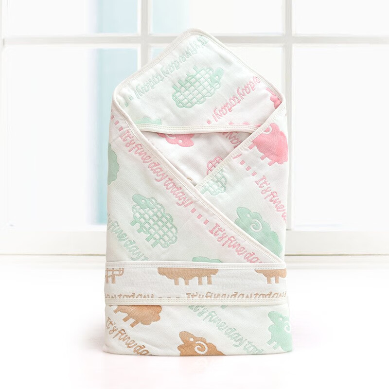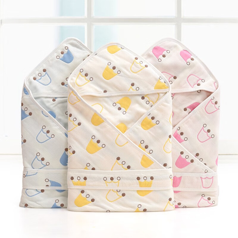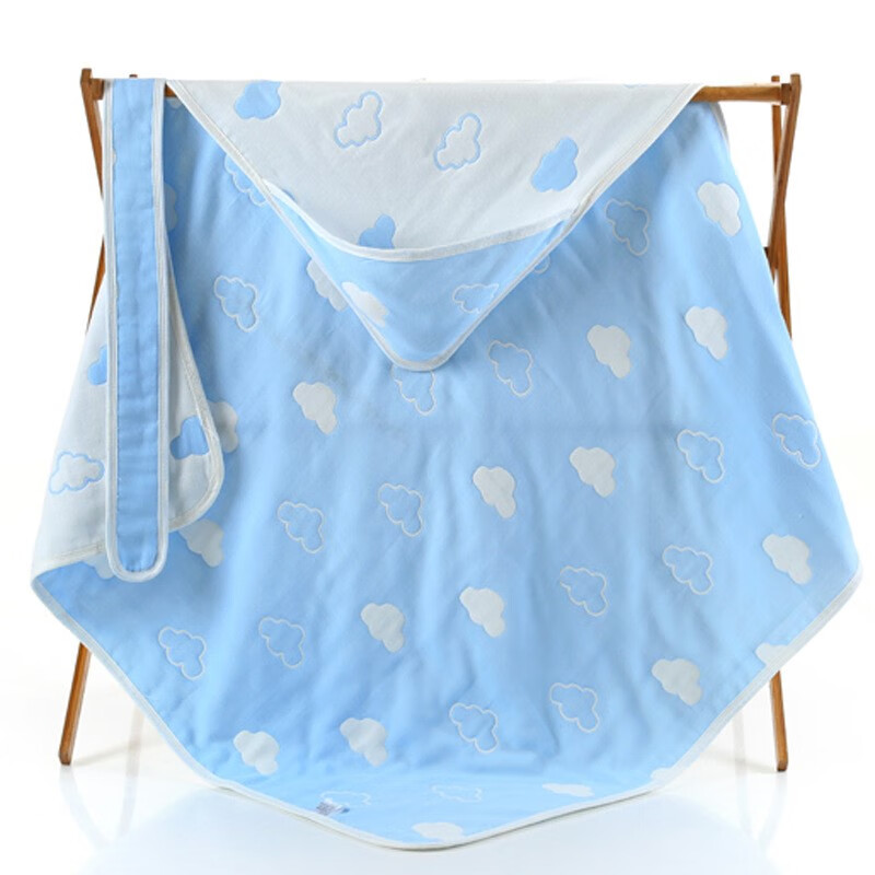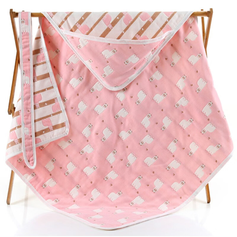Stella six-layer pure cotton gauze quilt newborn delivery room single swaddle baby blanket baby blanket blanket four seasons spring and autumn Caiyun pink 110x110cm (without hood)