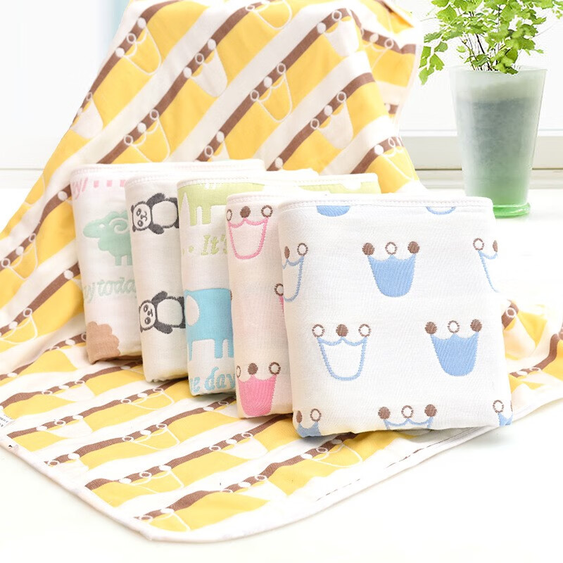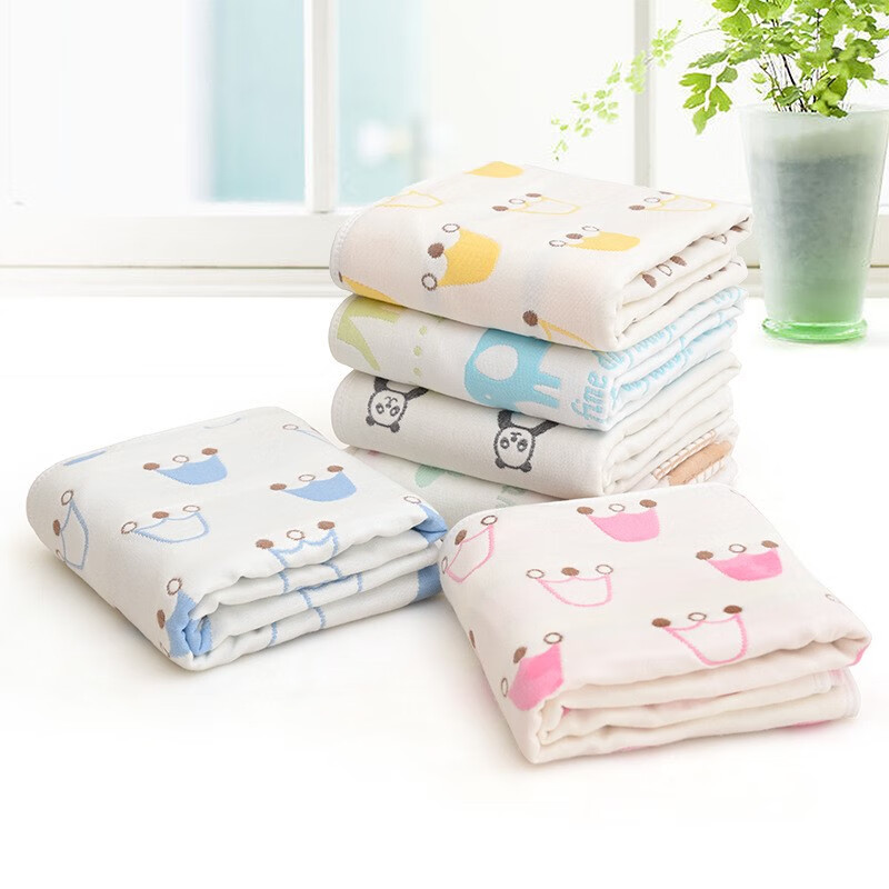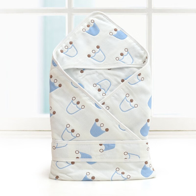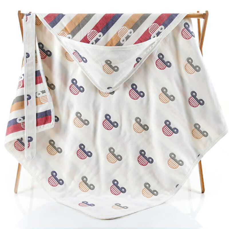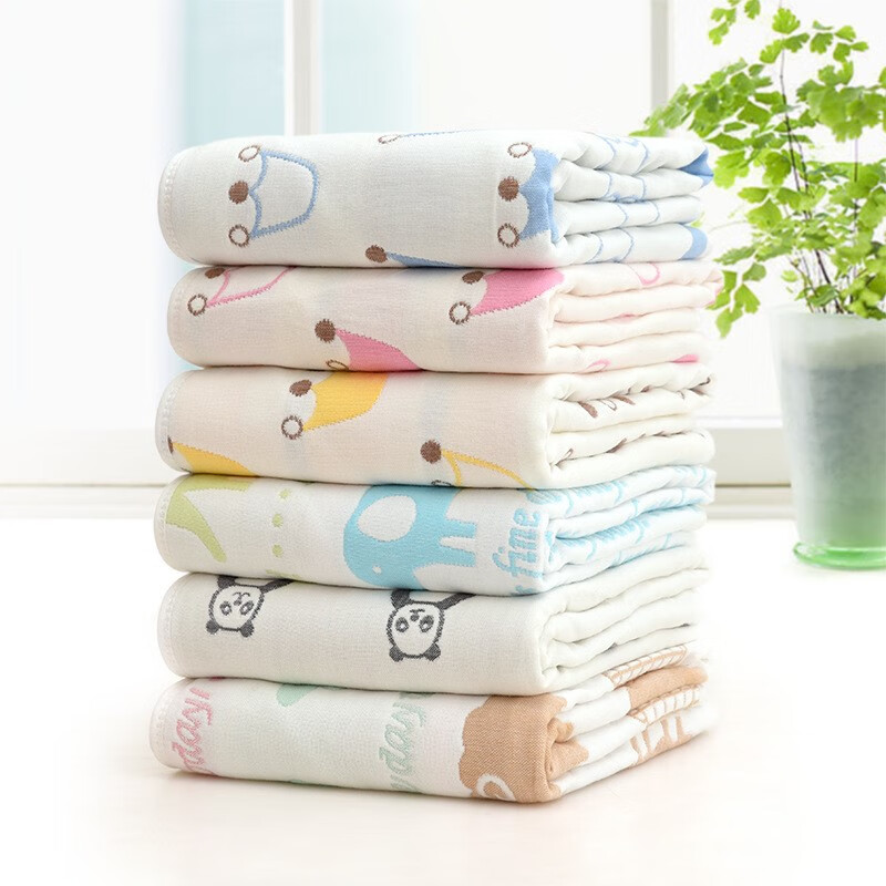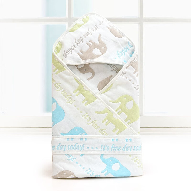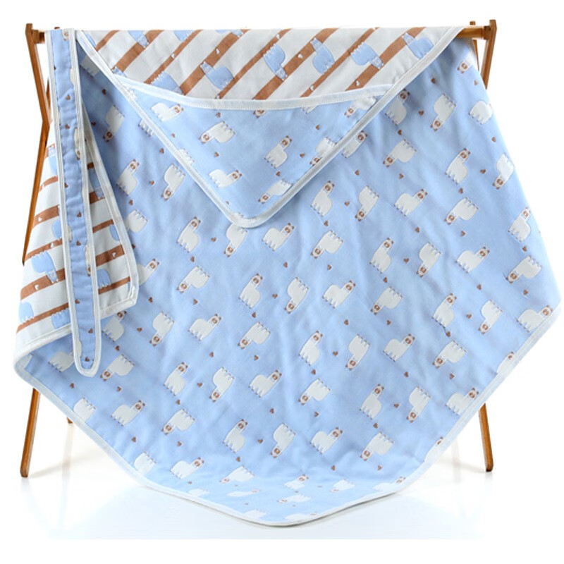 Stella six-layer pure cotton gauze quilt newborn delivery room single swaddle baby blanket baby blanket blanket four seasons spring and autumn Caiyun pink 110x110cm (without hood)