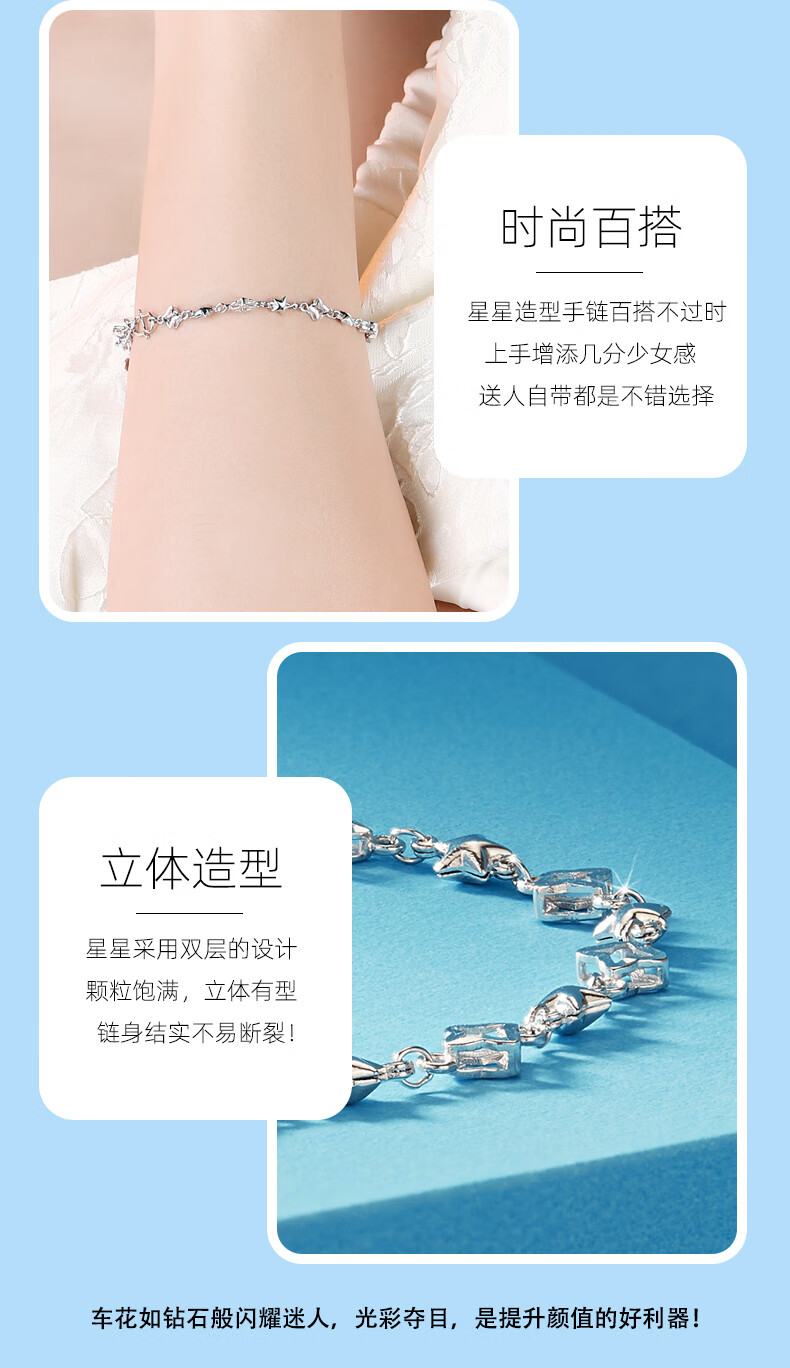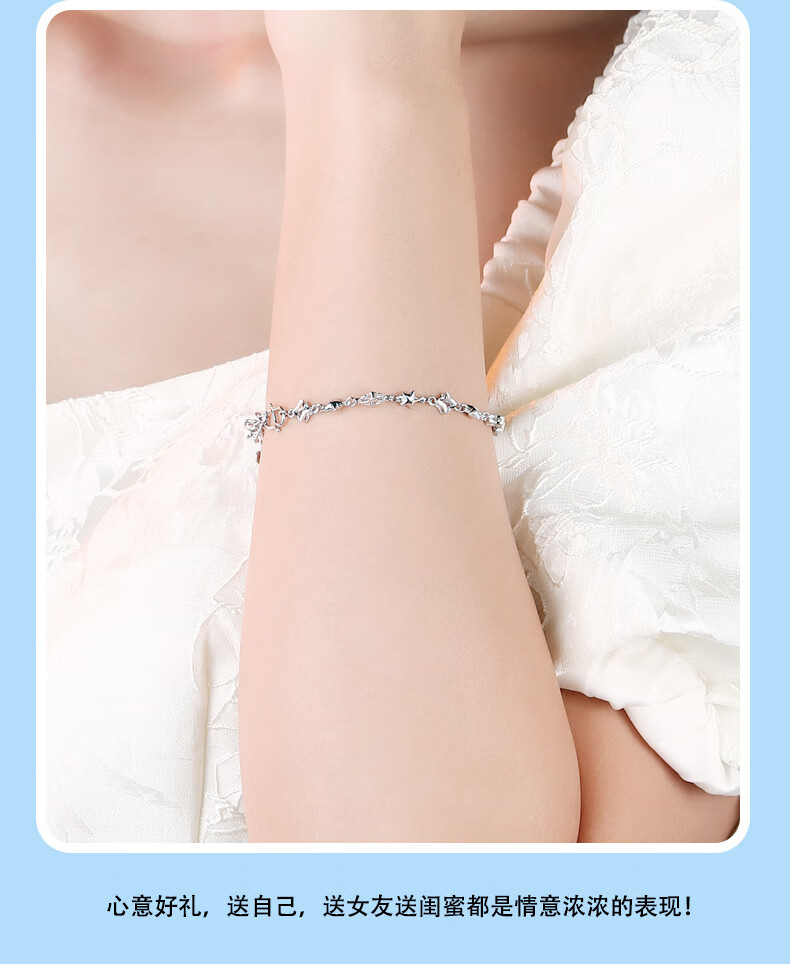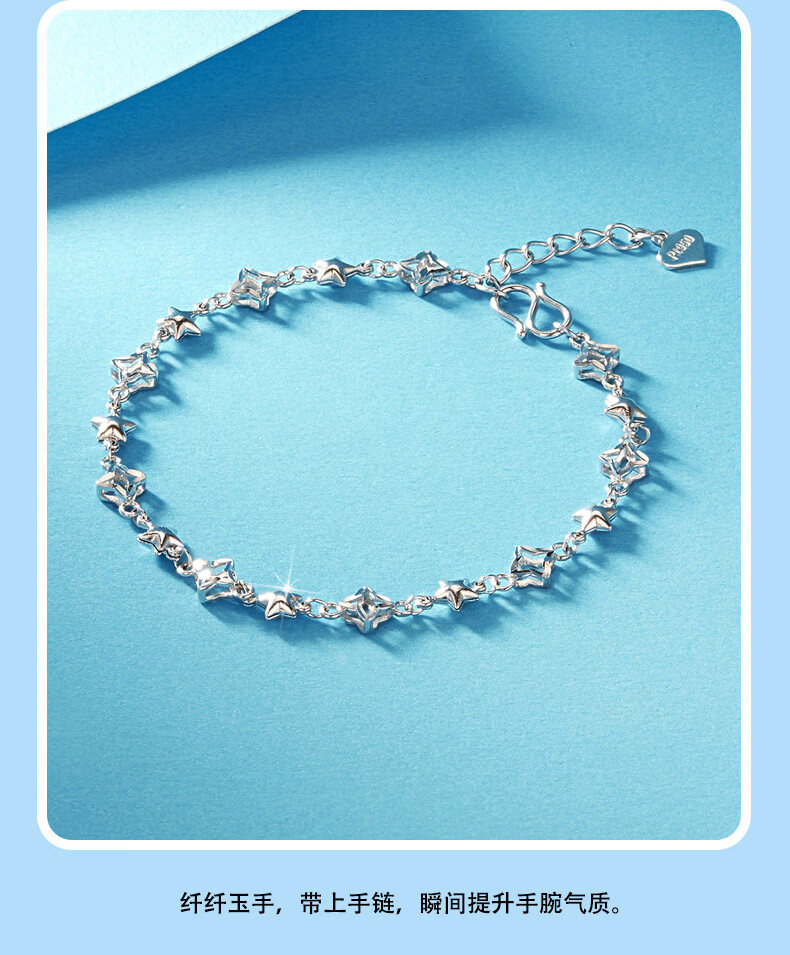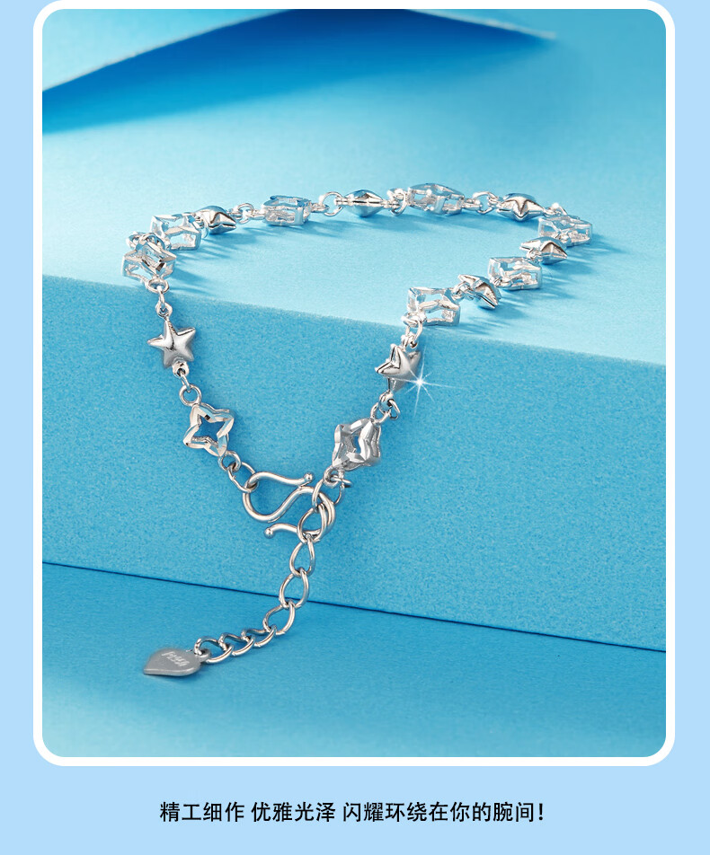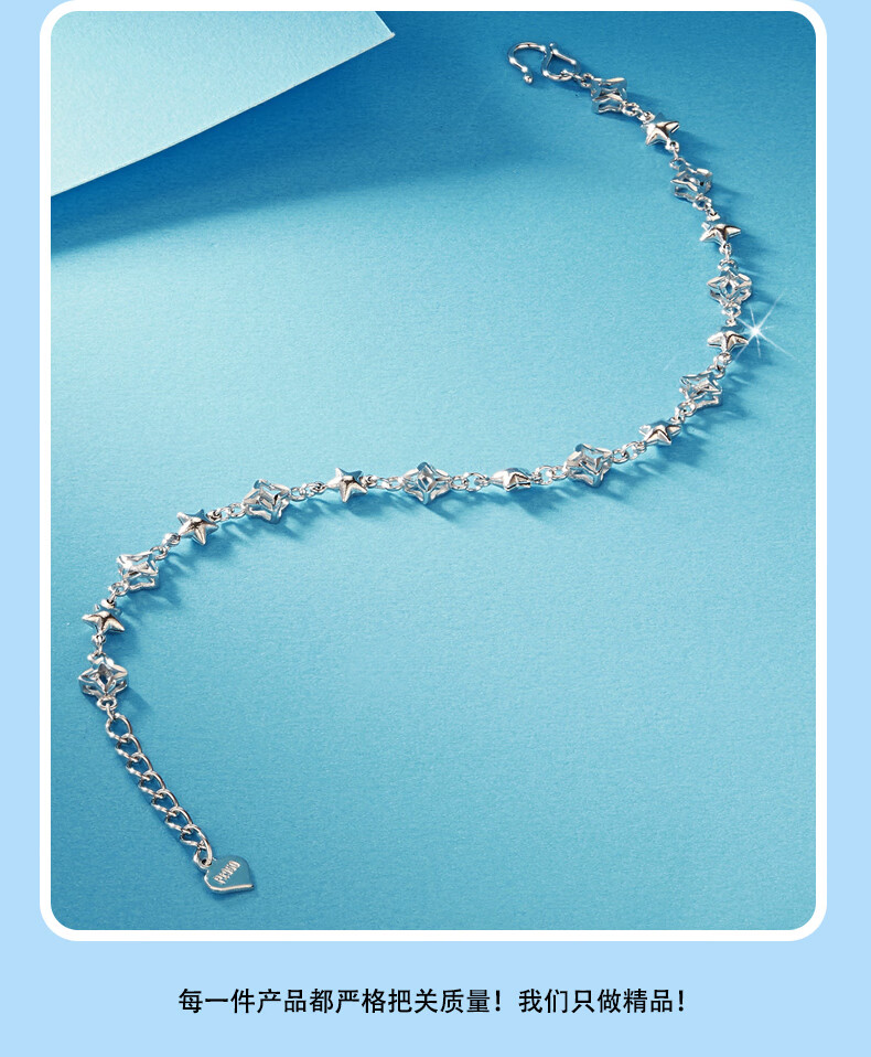 Yuan Shengfu's new PT950 small fresh star platinum bracelet, fashionable platinum hand jewelry for women, 4.63 grams, length 15-17cm adjustable