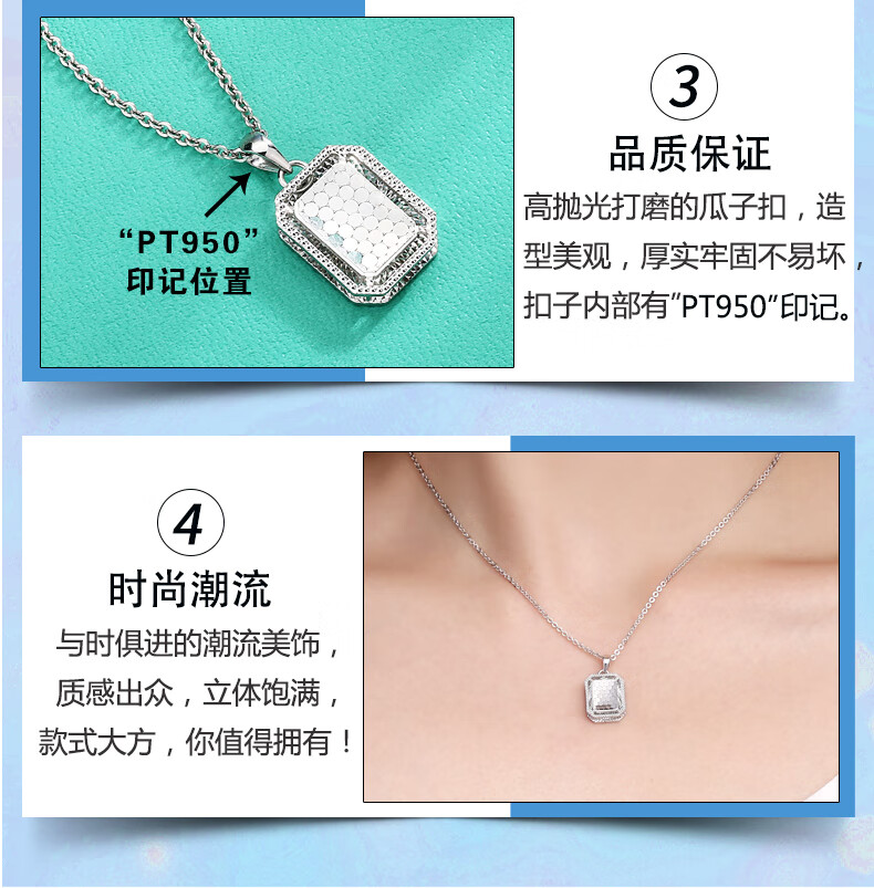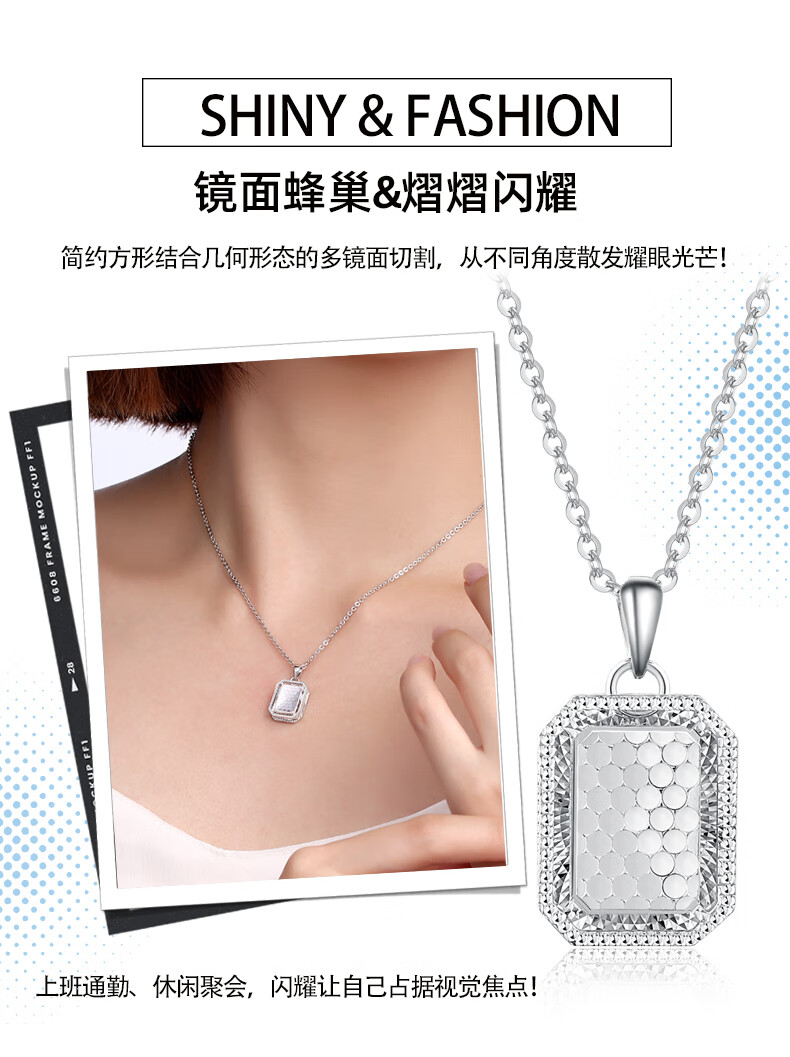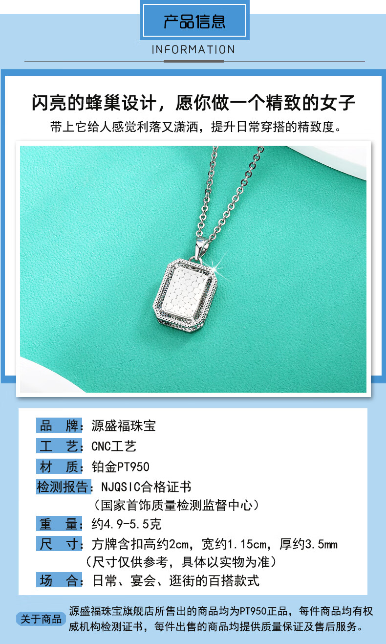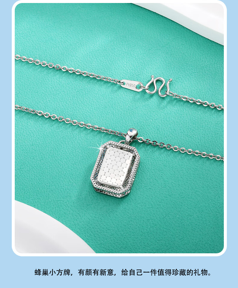 Yuan Shengfu's new PT950 fashionable honeycomb square brand platinum pendant, sparkling platinum pendant, versatile style, 4.69 grams