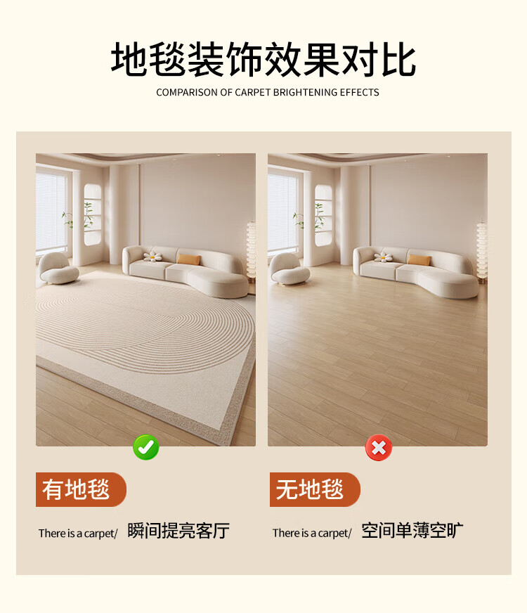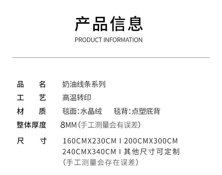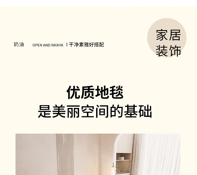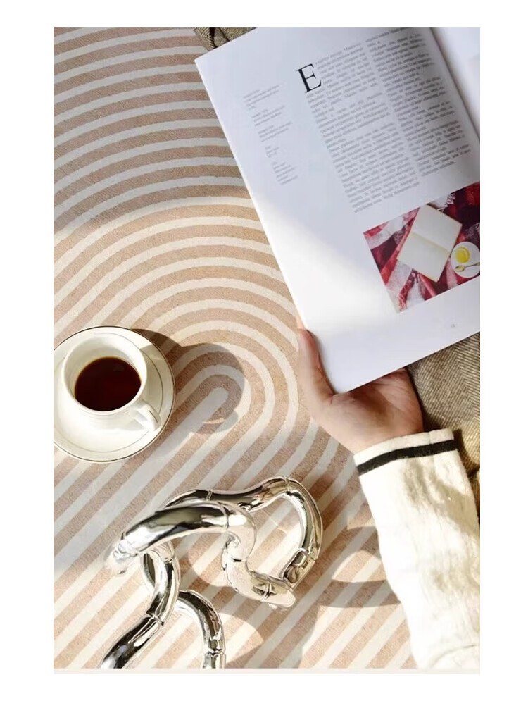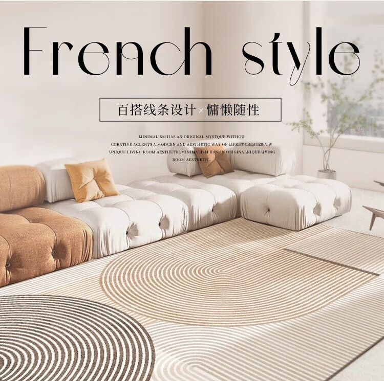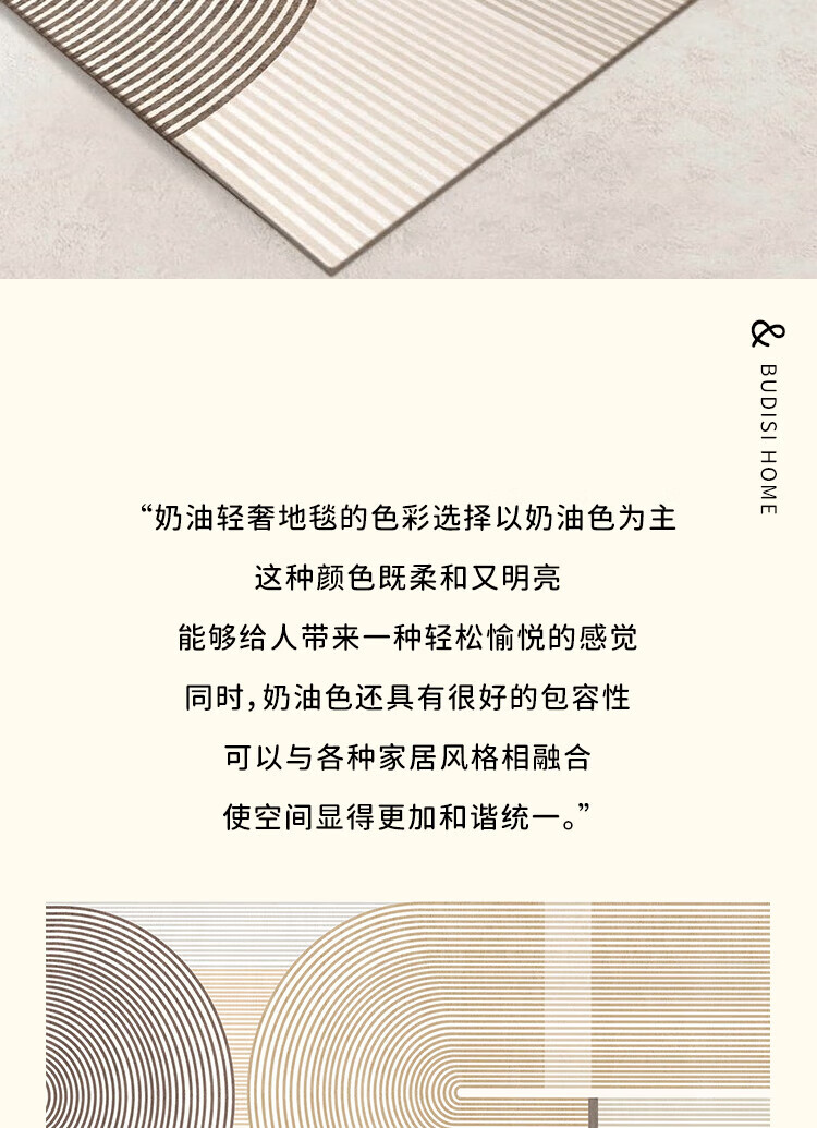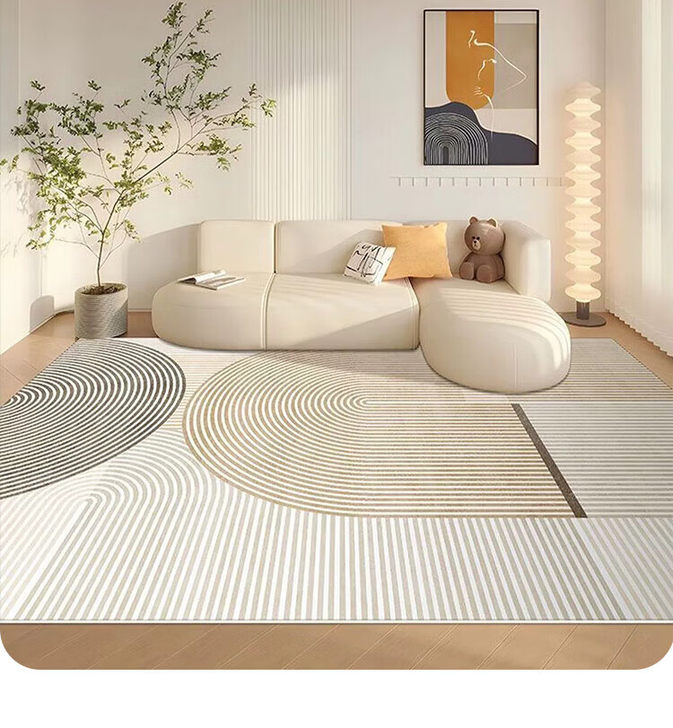 Budis carpet living room carpet bedroom coffee table sofa blanket can be customized Nordic simple modern full-cover thick anti-slip mat cream line popular hot style 200*300CM stain-resistant and anti-static