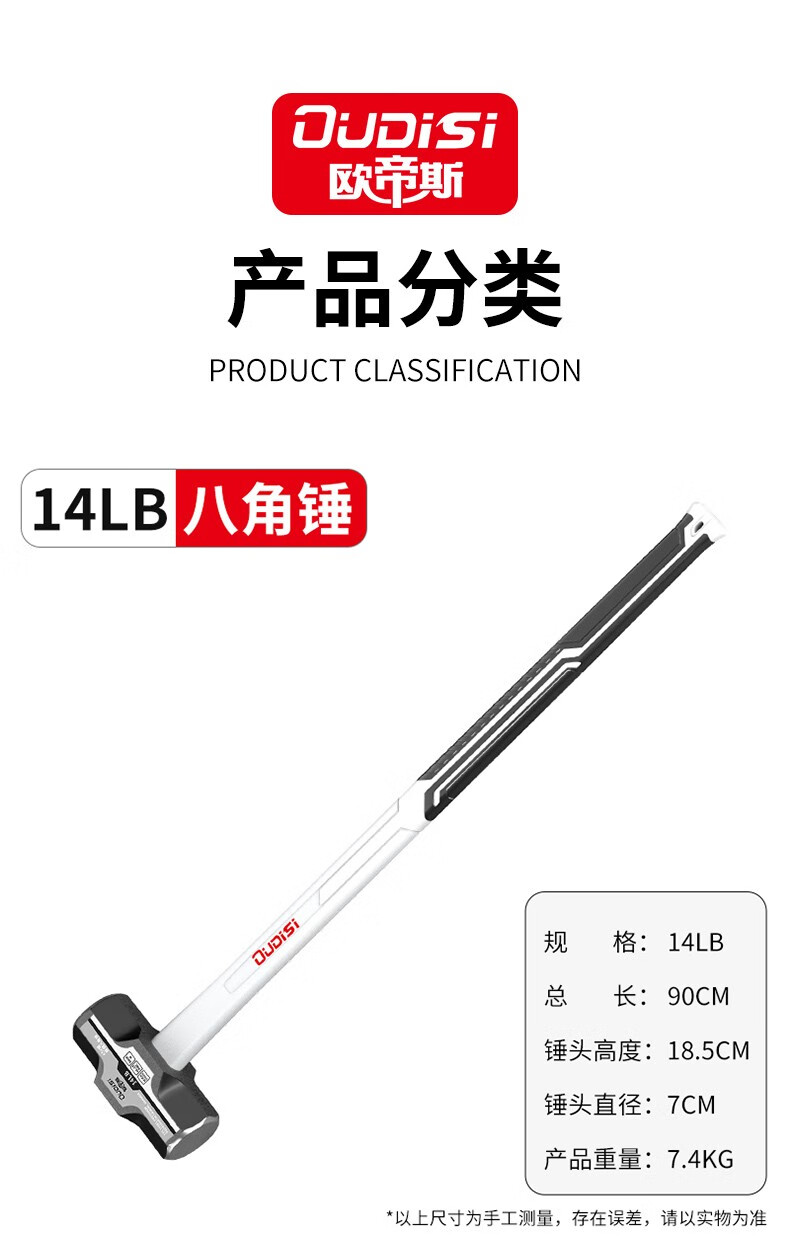 Otis hammer octagonal hammer hammer tool conjoined heavy-duty solid wall hammer hand hammer integrated wall demolition hammer 3-pound integrated octagonal hammer