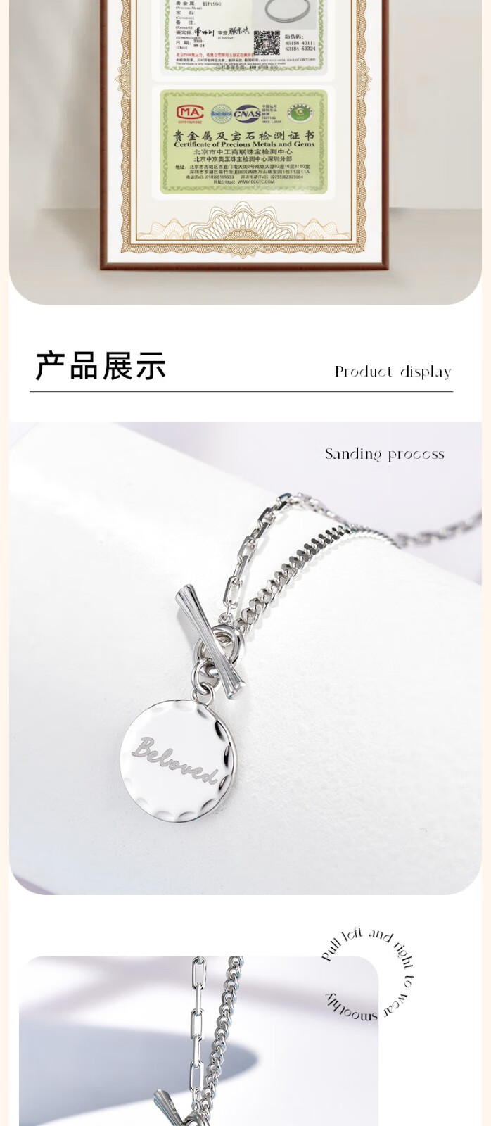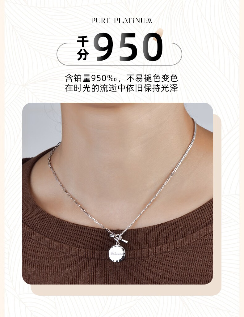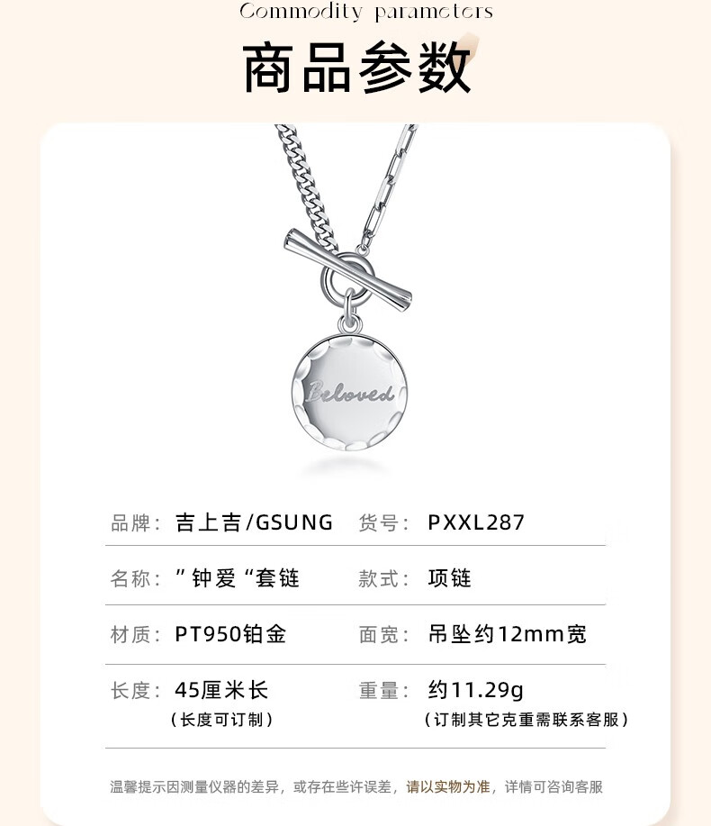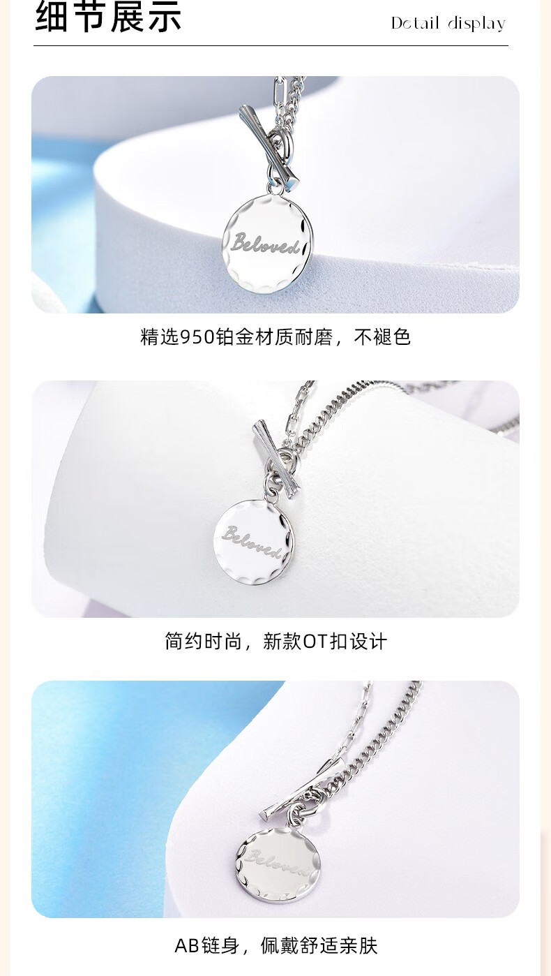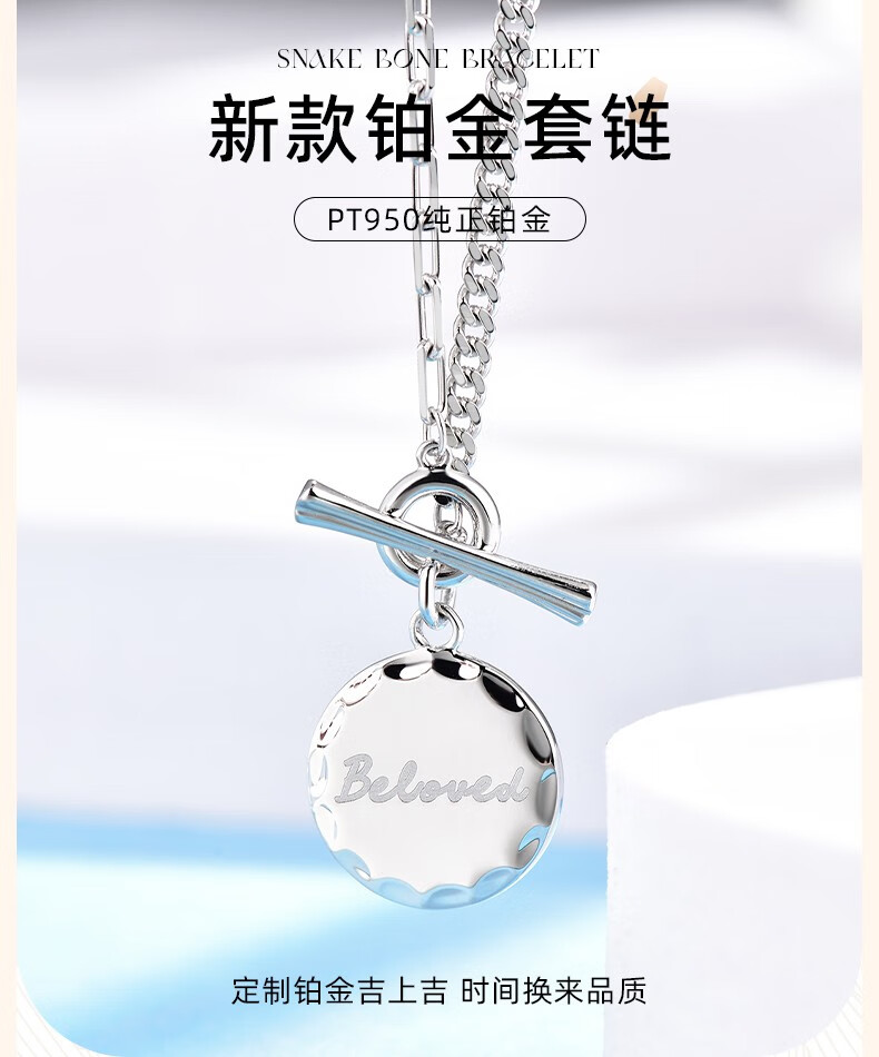 GsunG platinum women's necklace PT950 new round chain chain Beloved platinum OT buckle necklace AB chain body fashion PT950 necklace about 12 grams, 45 cm pre-order