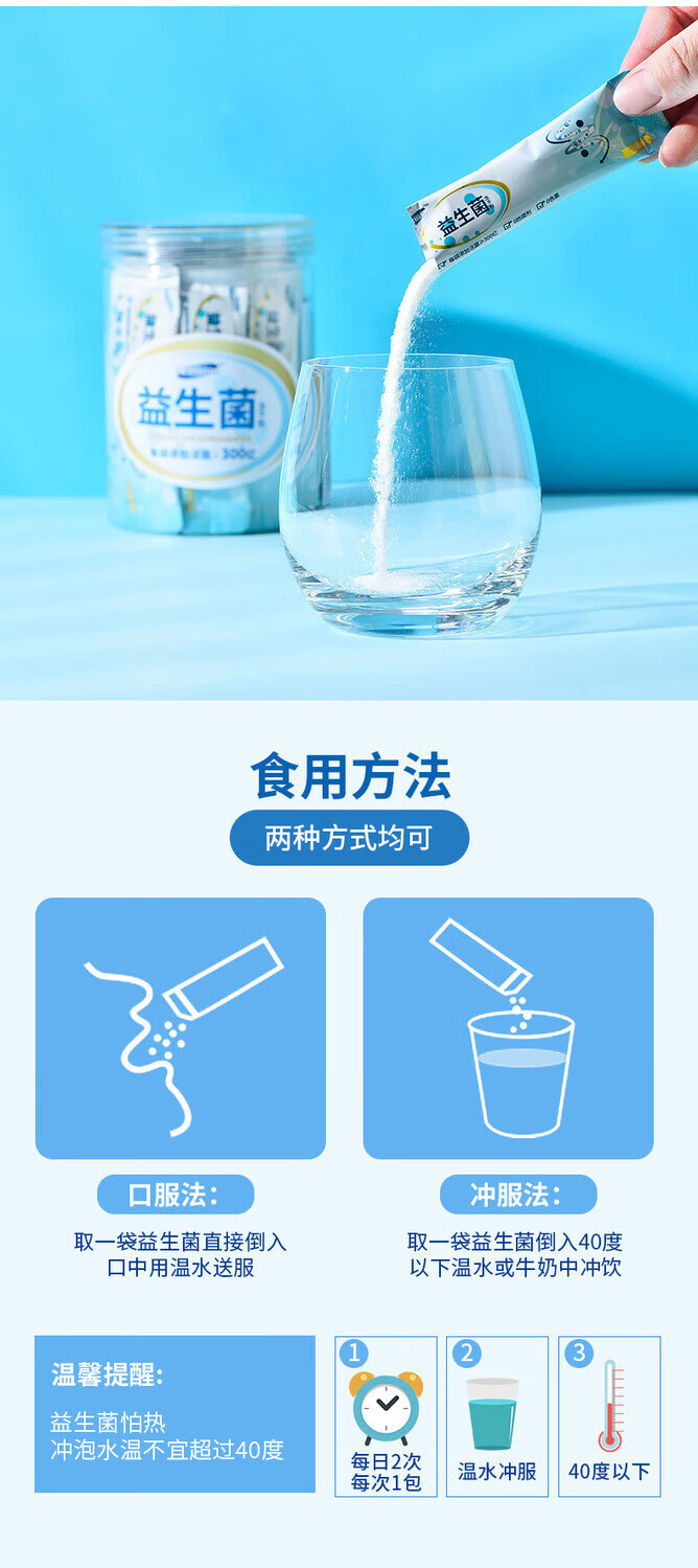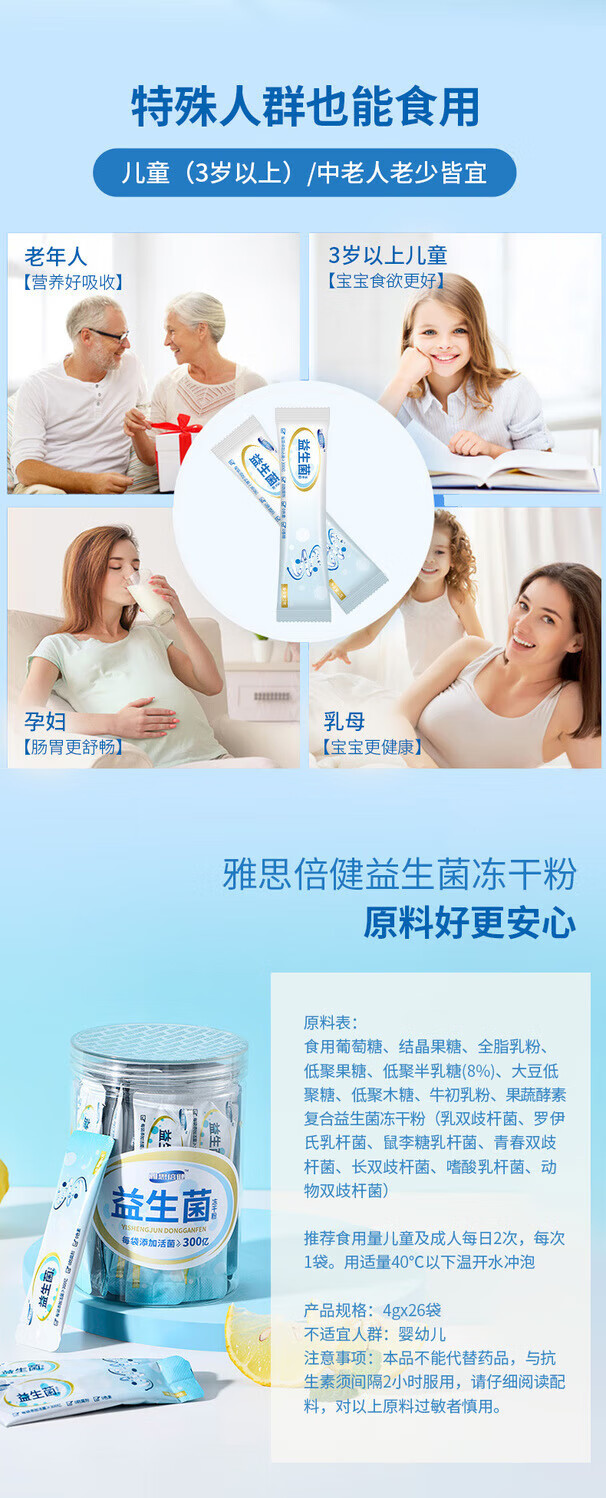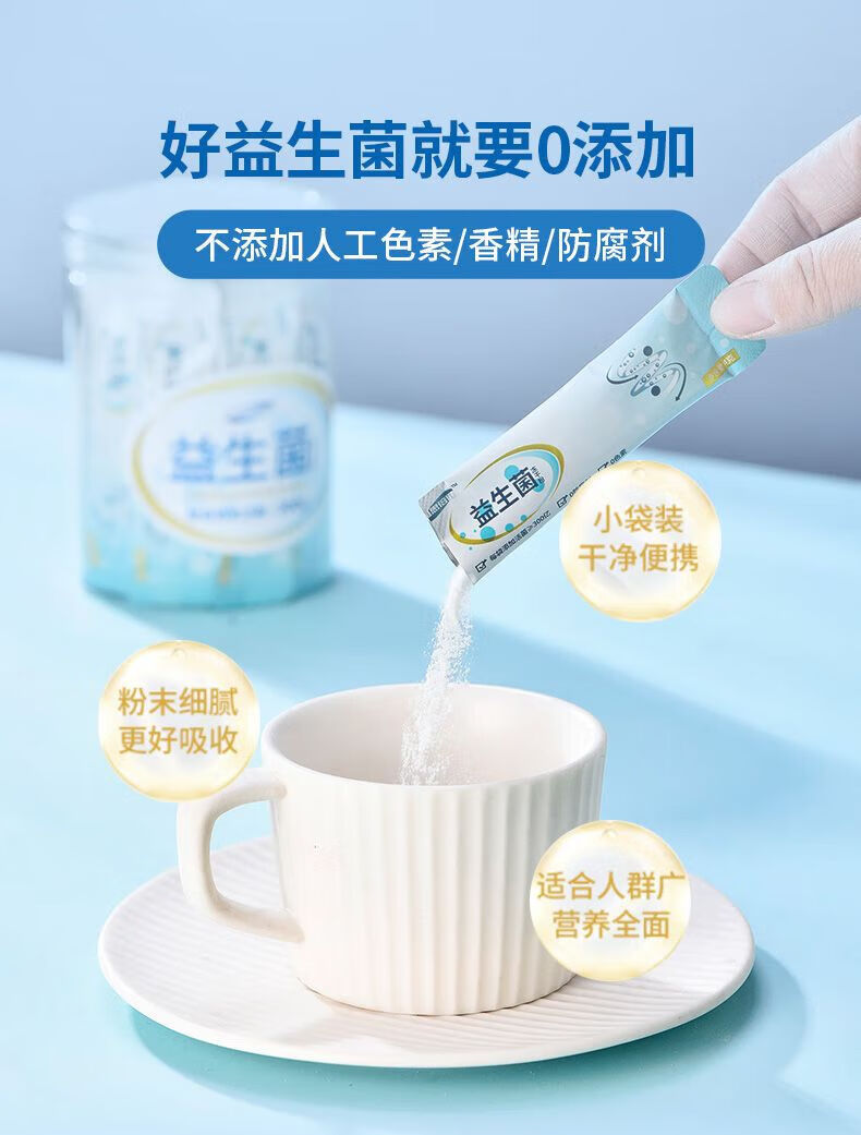Trillions of live bacteria protect the gastrointestinal tract probiotic freeze-dried powder for the whole family, adults, children, women and the elderly prebiotics Yidongle 5g* 99+1+5 boxes
