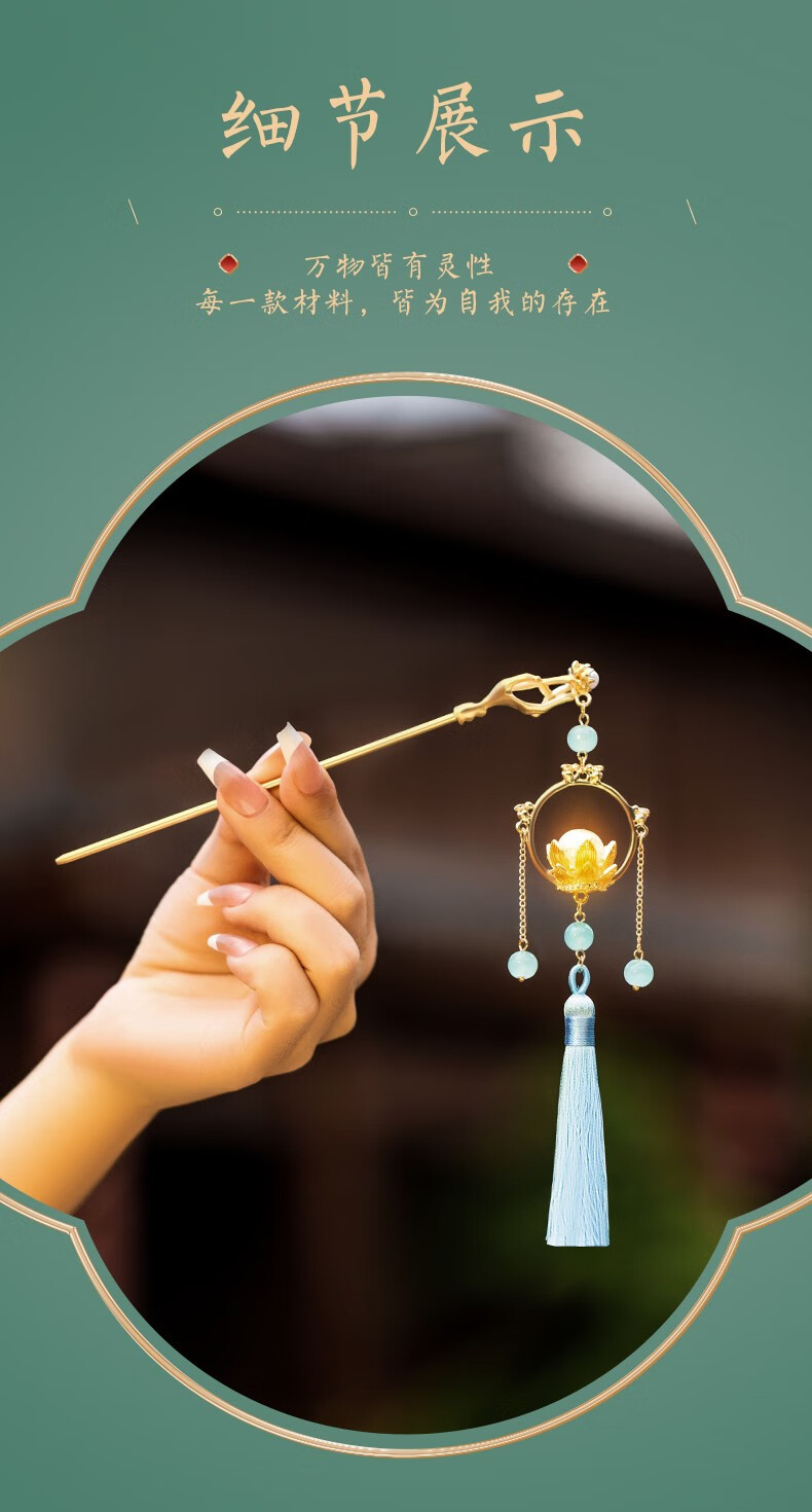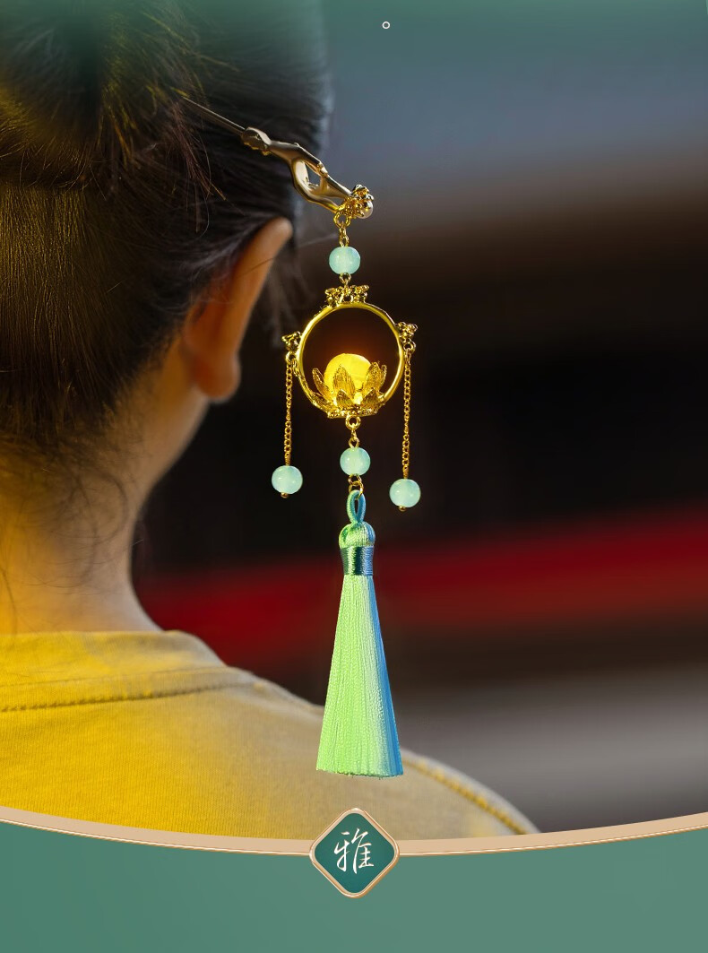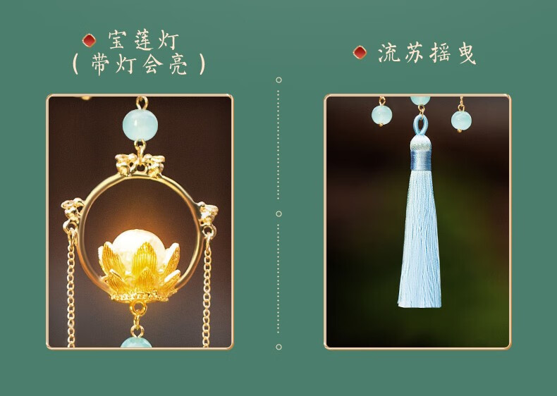 Two Worlds Huan Palace Lantern Luminous Hairpin Girl Ancient Style New Chinese Style Tassel Step Shaking Hairpin Plate Hair Accessory Hanfu Cheongsam Halloween Hairpin + Hairpin Box