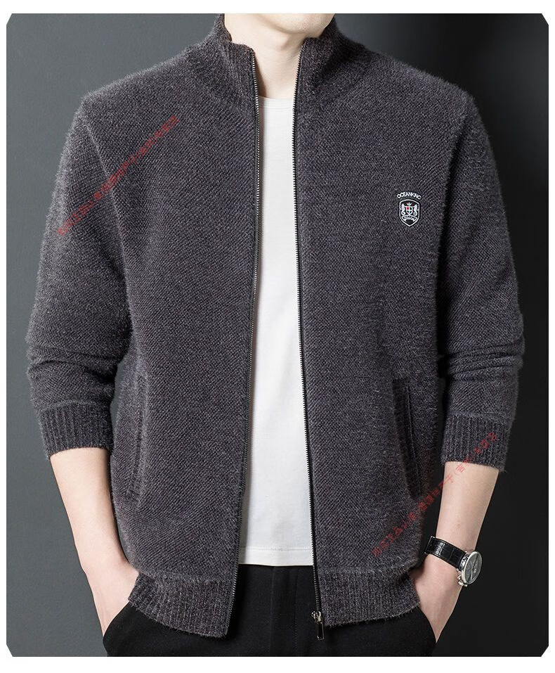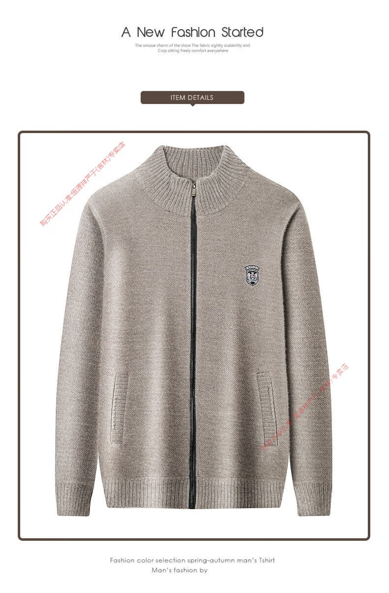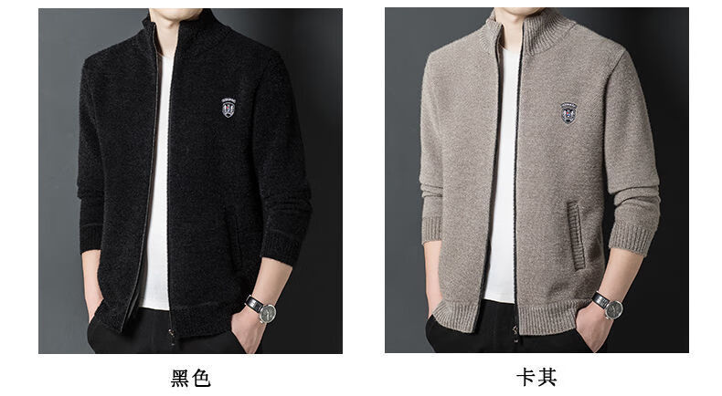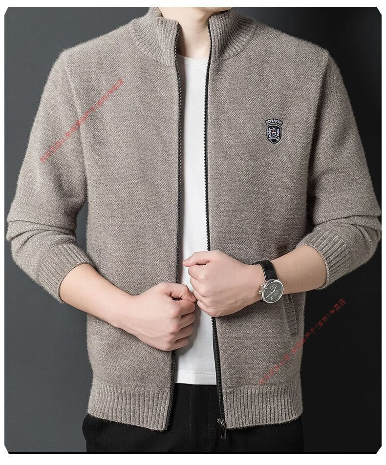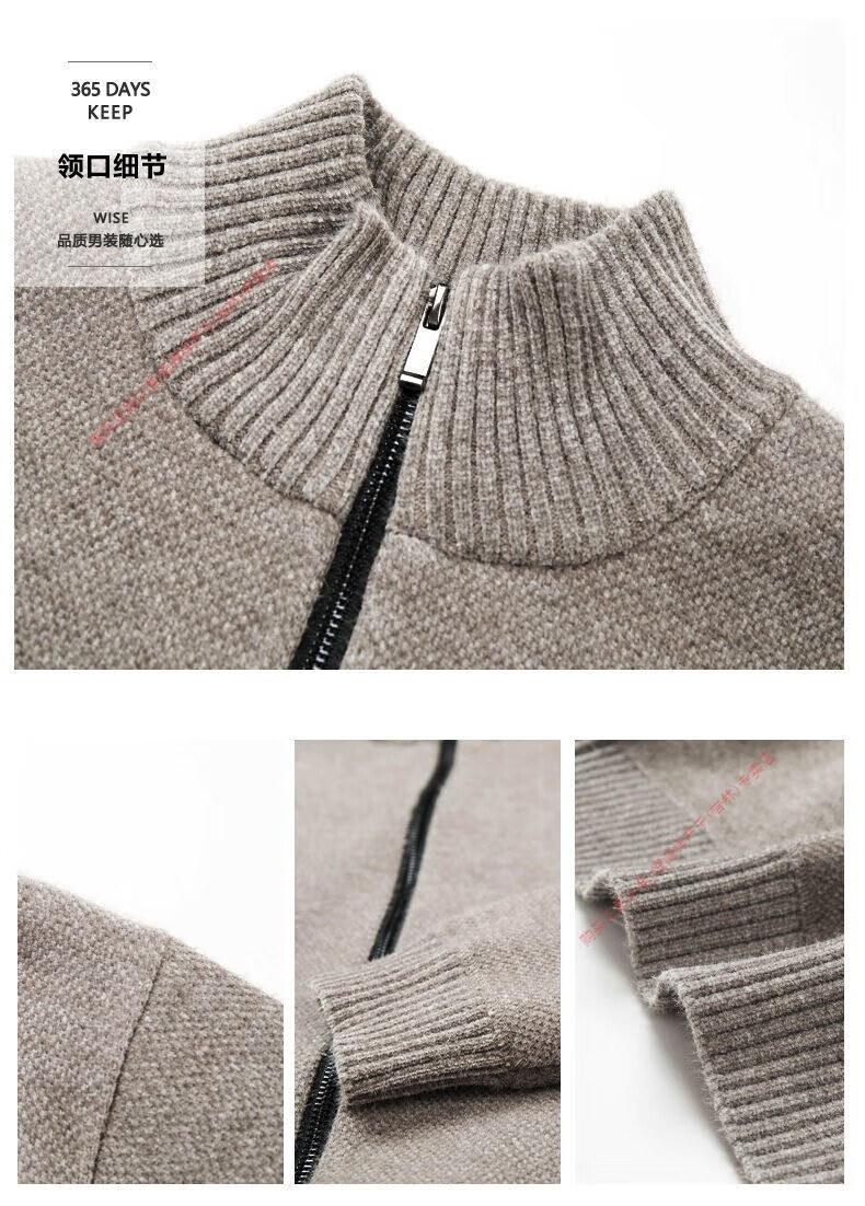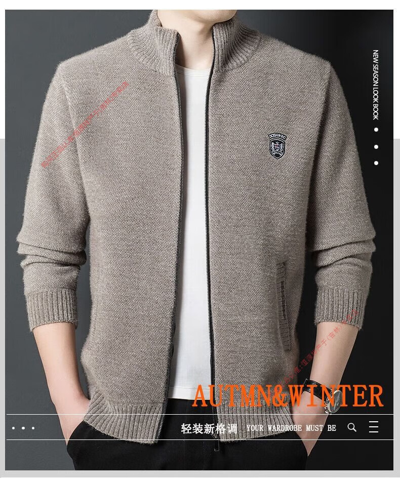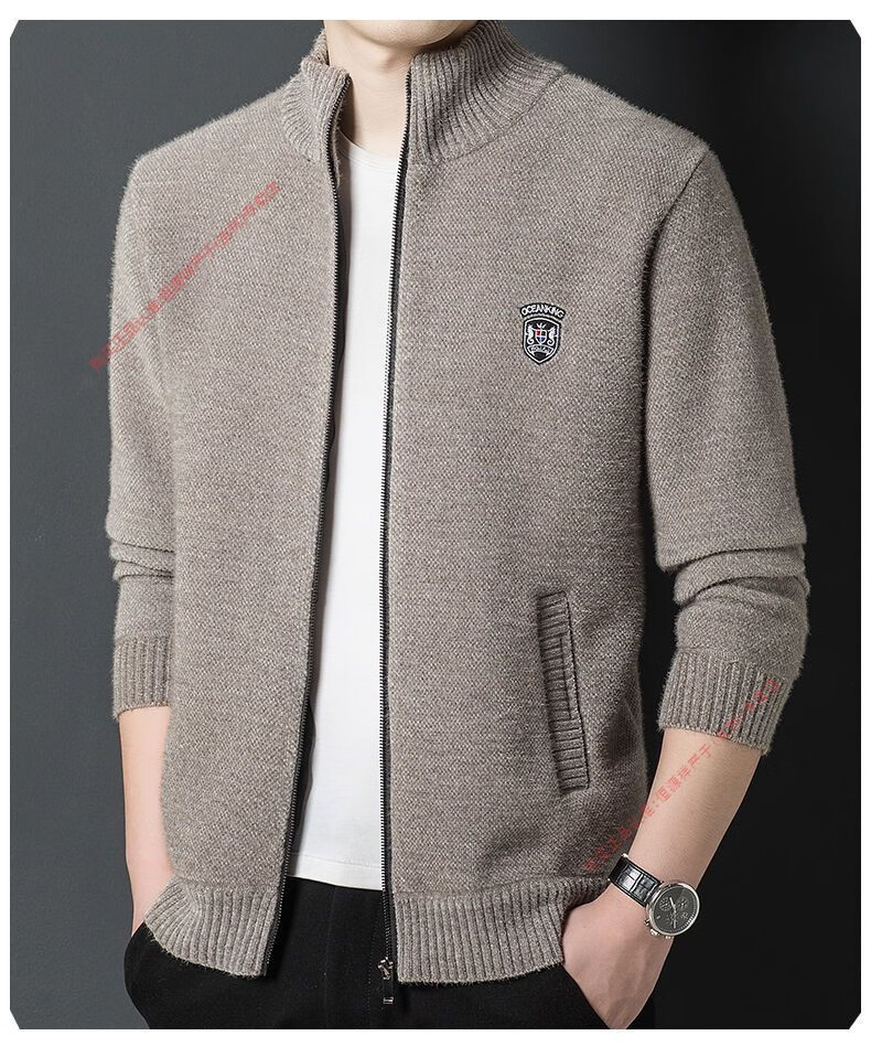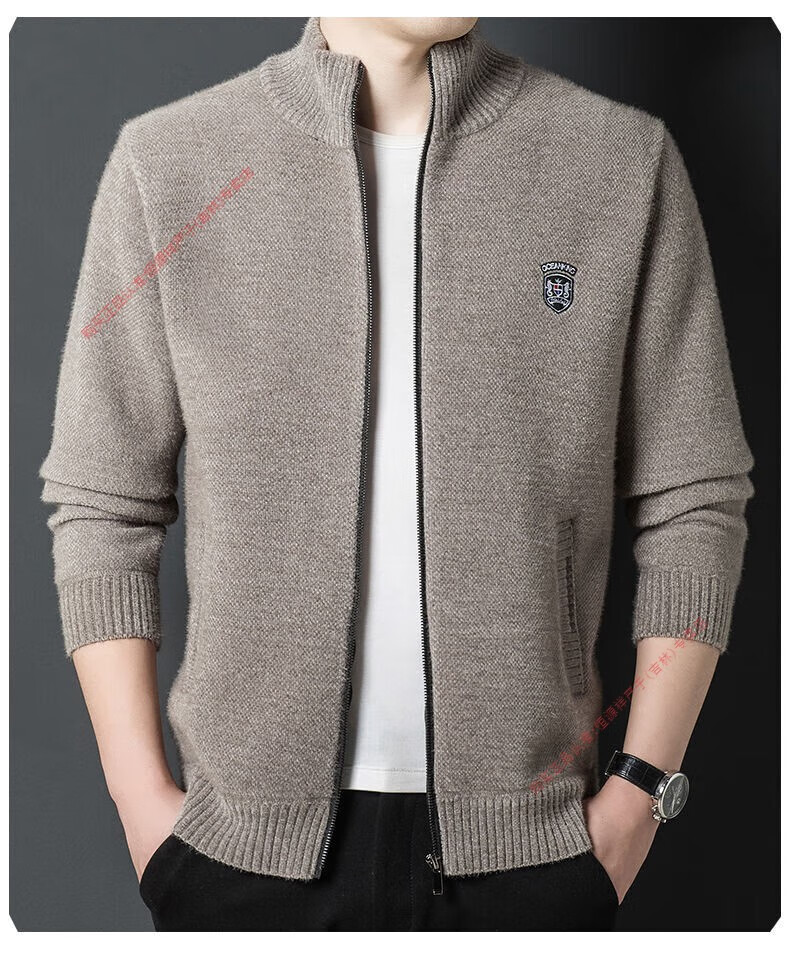 Hengyuan Xiang spring and autumn men's knitted cardigan stand collar men's jacket zipper sweater loose solid color sweater beige M 165/84A recommended 120Jin Jin equal to within 0.5 kg