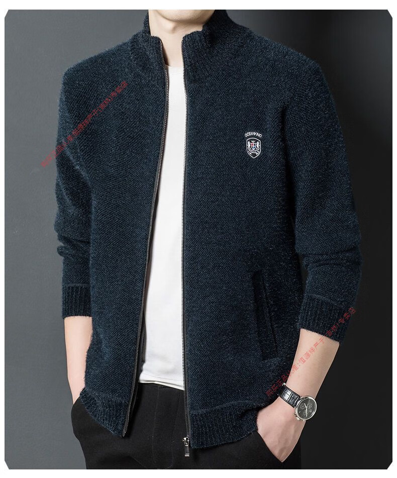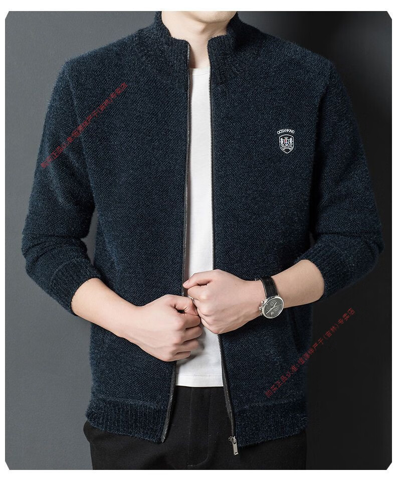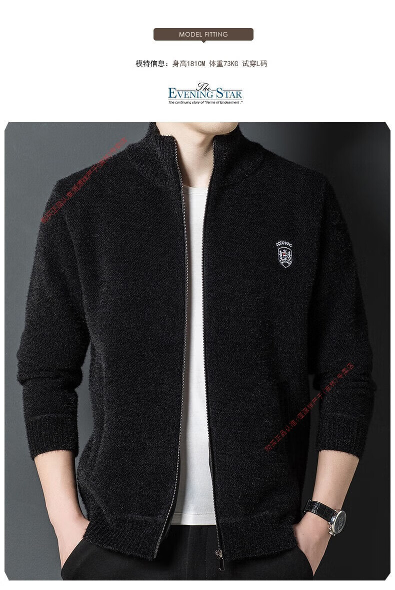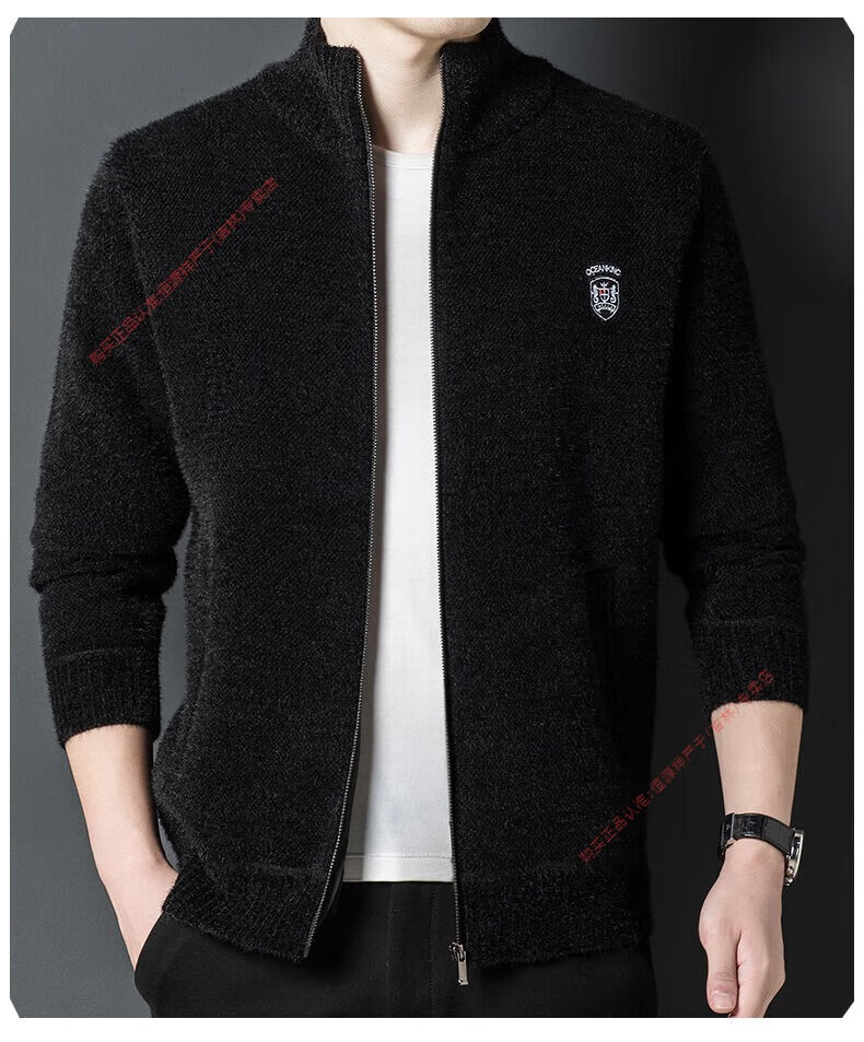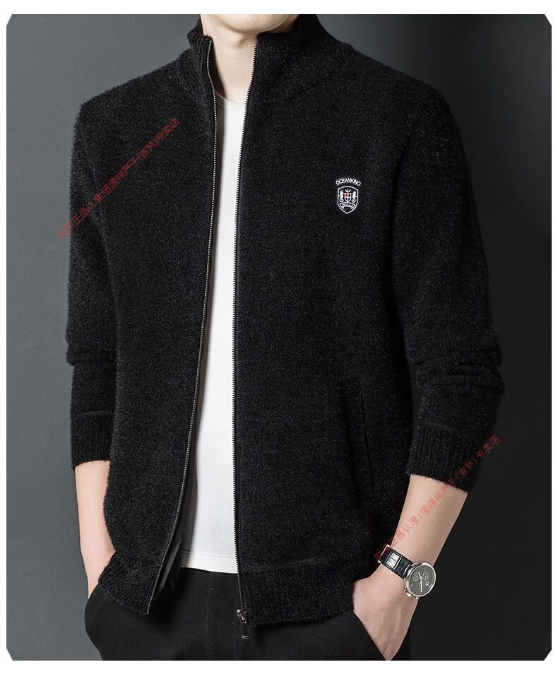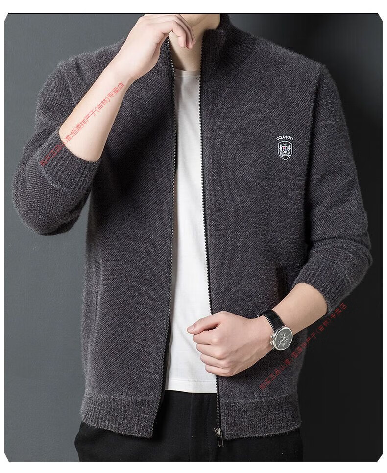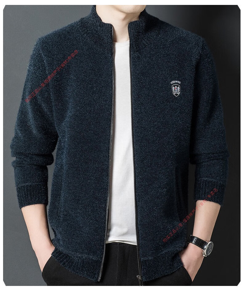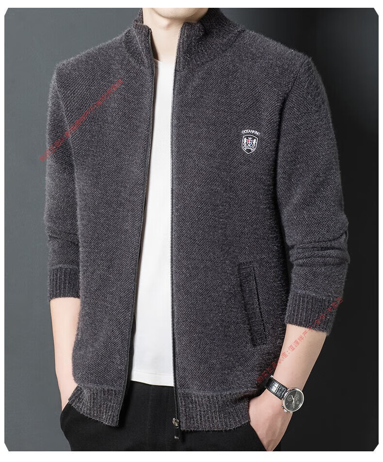 Hengyuan Xiang spring and autumn men's knitted cardigan stand collar men's jacket zipper sweater loose solid color sweater beige M 165/84A recommended 120Jin Jin equal to within 0.5 kg
