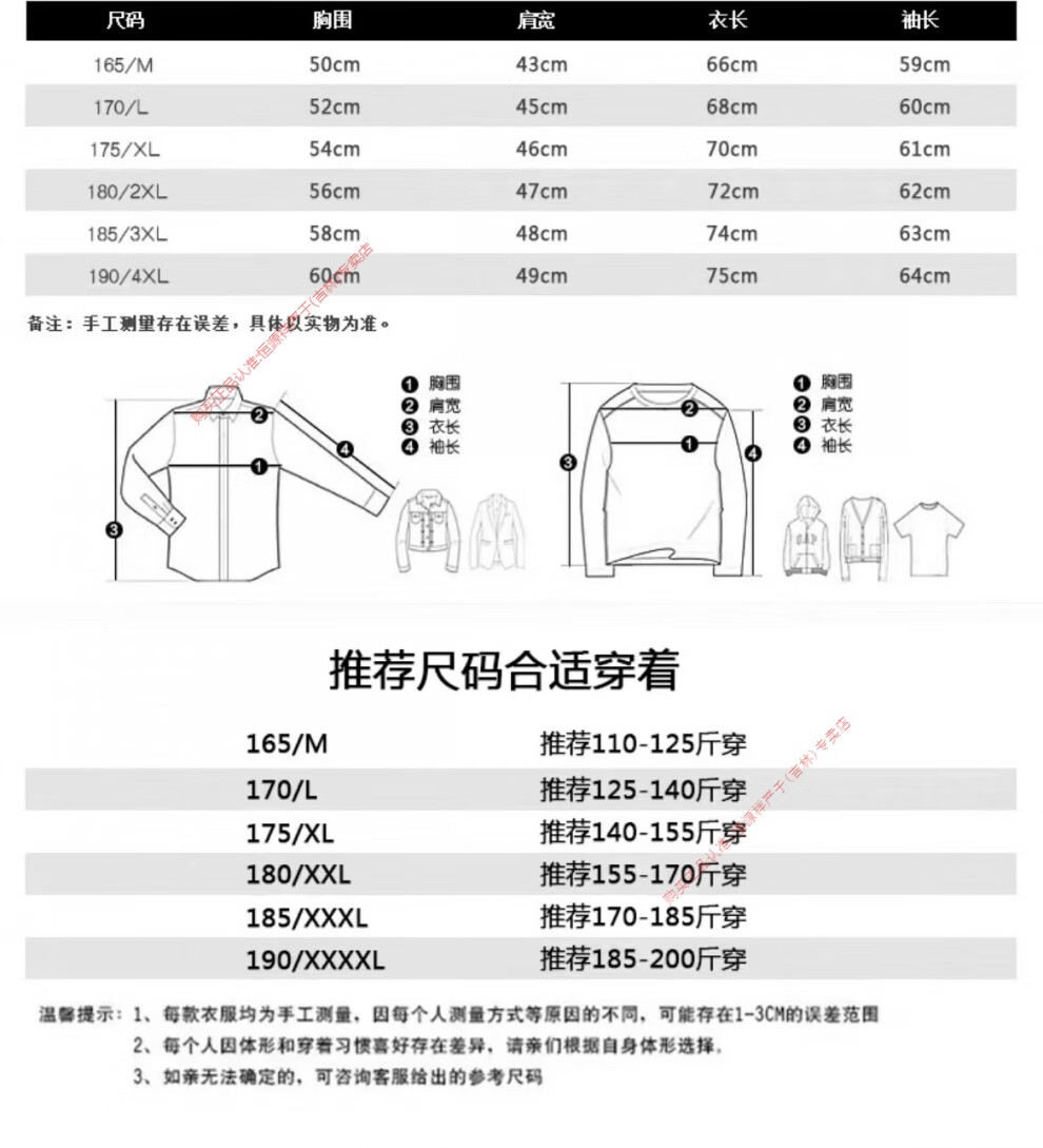 China (cm) 165 / 88-90 170 / 96-98 175 / 108-110 180 / 118-122 185 / 126-130