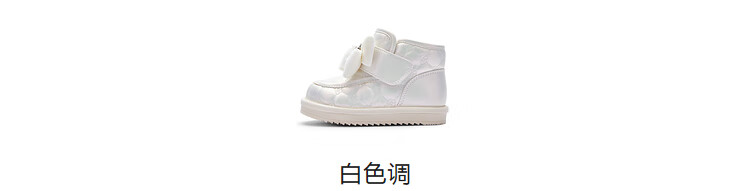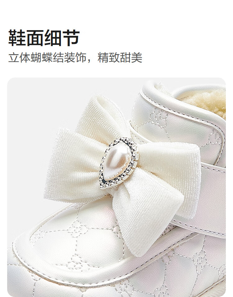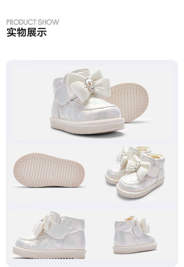 Balabala children's shoes children's boots girls winter baby cotton boots plus velvet thickening snow boots bow fashion warm and non-slip white tone 00311 21 size