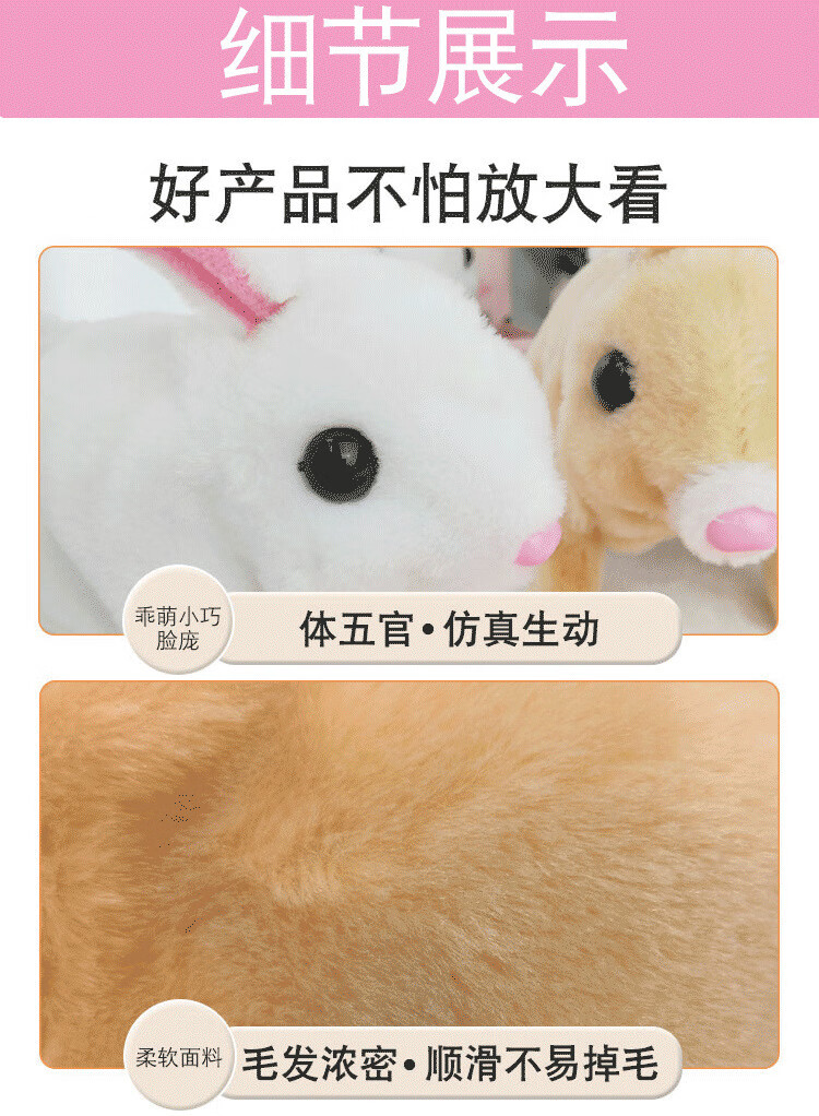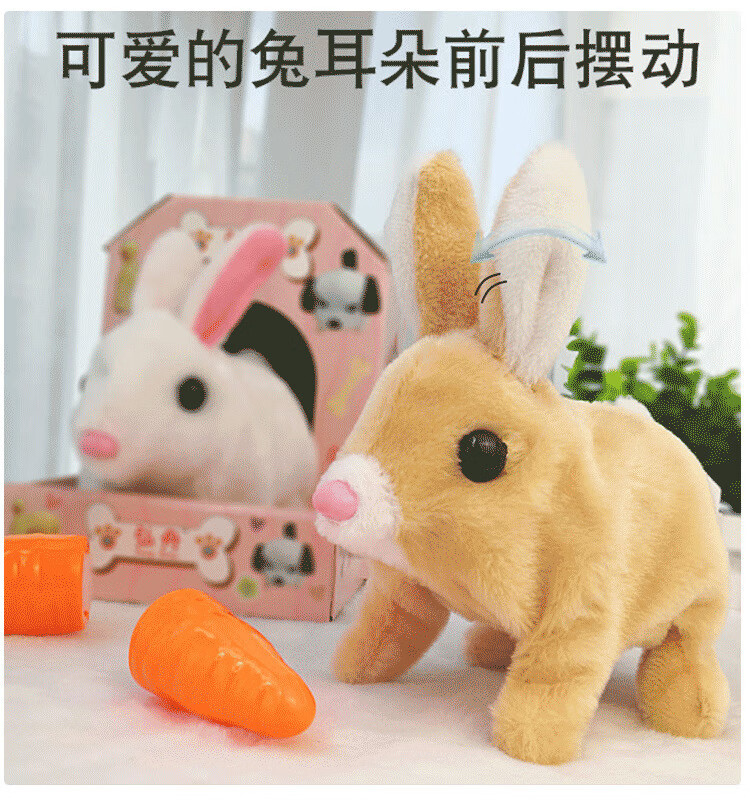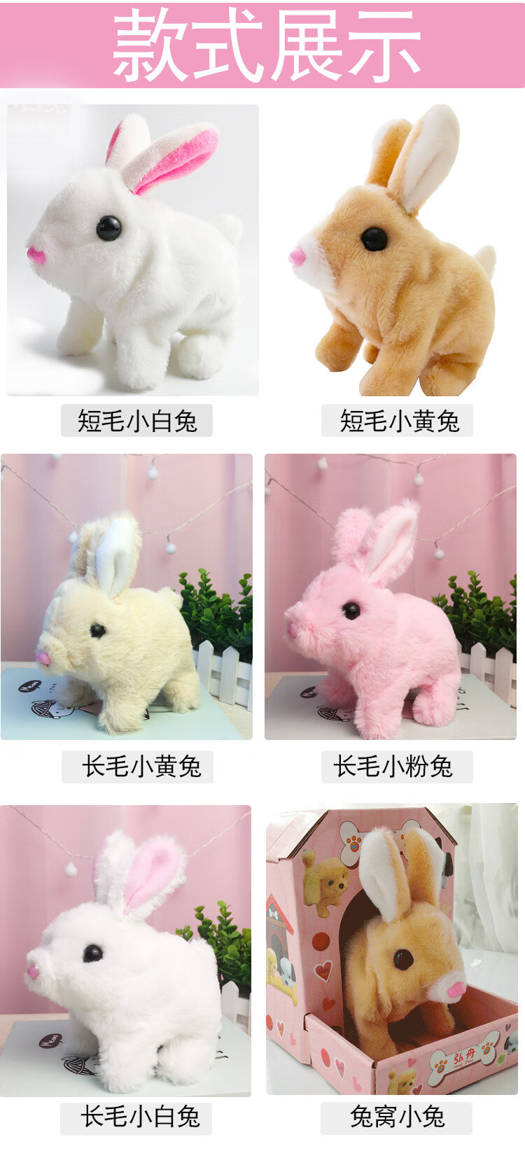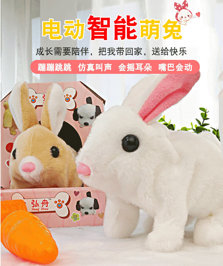 TKHE electric plush toy bunny can bark and jump electric plush bunny can bark plush toy to play house short-haired rabbit white