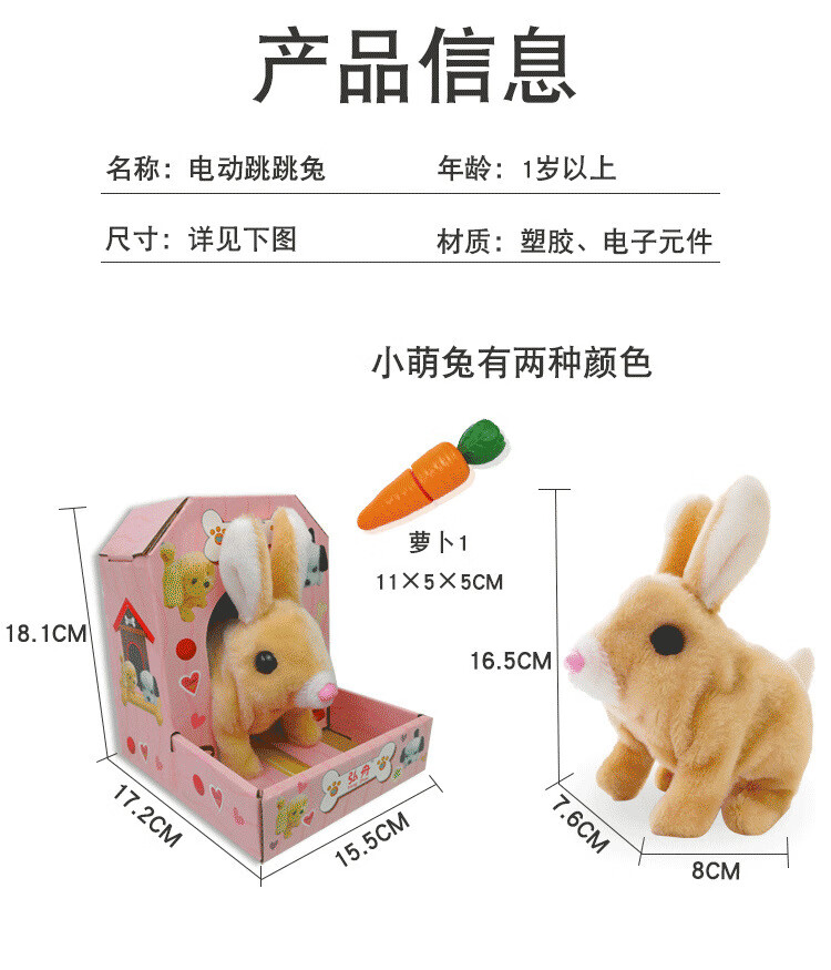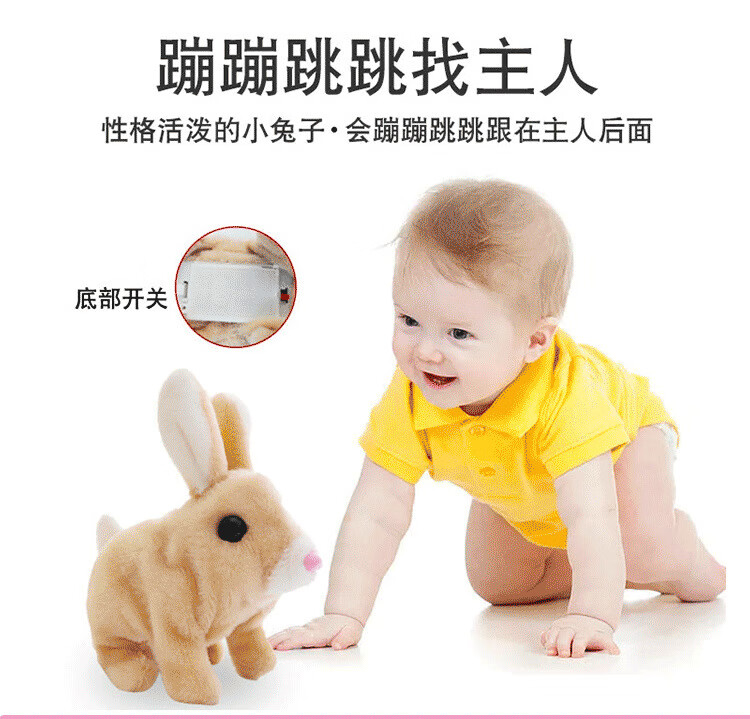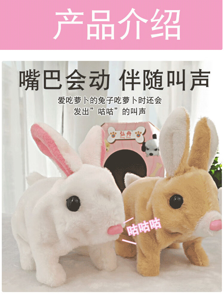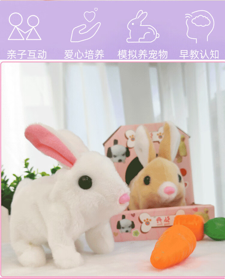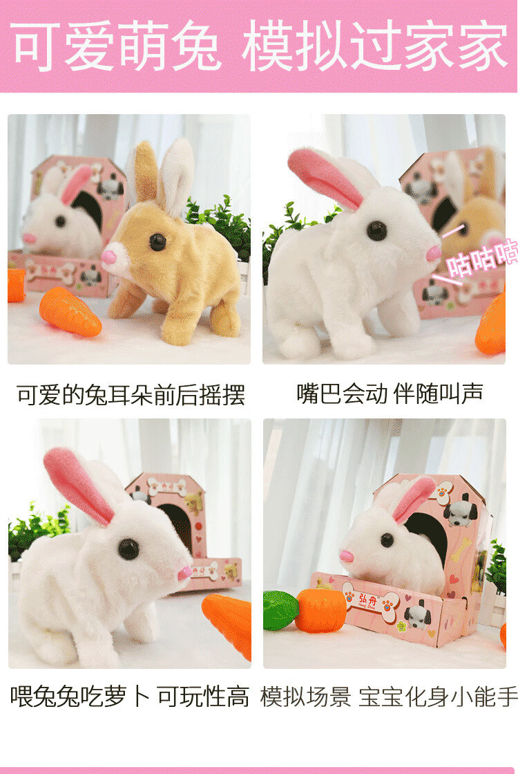 TKHE electric plush toy bunny can bark and jump electric plush bunny can bark plush toy to play house short-haired rabbit white
