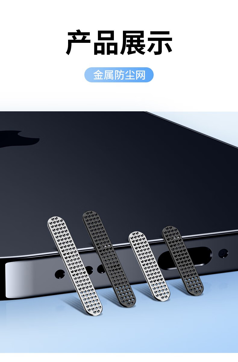 Mu Nian is suitable for Apple 15 dustproof net, iphone15promax mobile phone speaker dustproof plug 15pro charging port metal, Apple 15 silver (long + short) 4 pieces each