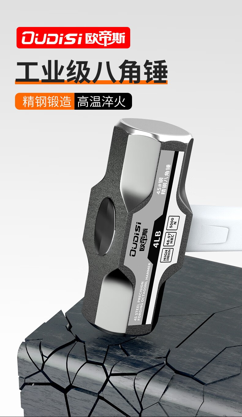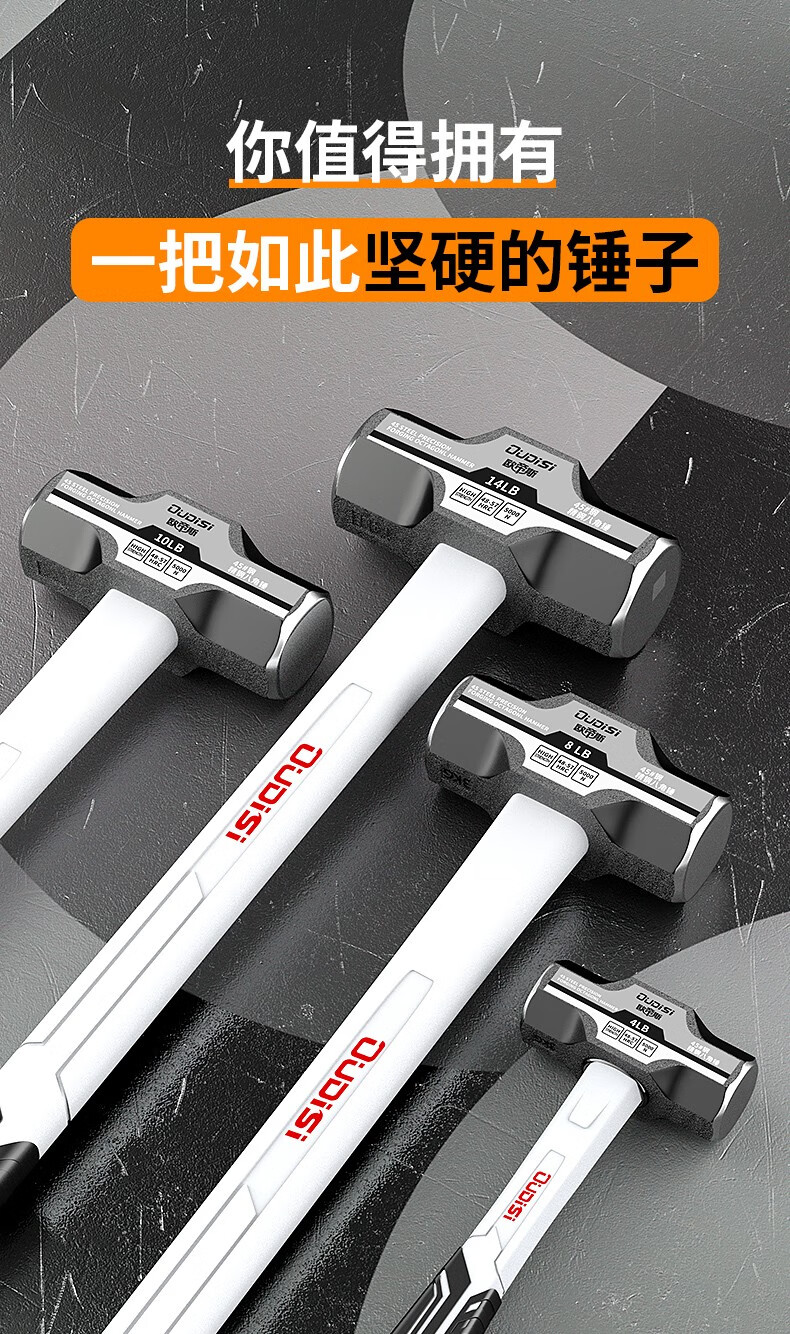 Otis octagonal hammer one-piece construction site heavy-duty wall-breaking sledge hammer soft-handled hammer solid hammer hand hammer tool 14-pound heavy-duty octagonal hammer