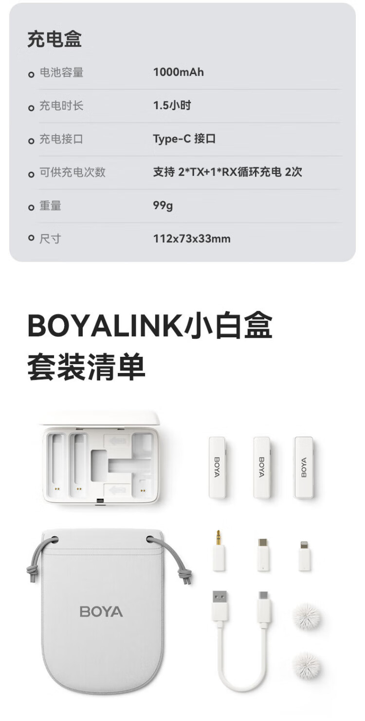 BOYA BOYALINK wireless lavalier microphone one-to-two Little Bee mobile phone live broadcast short video recording noise reduction microphone Boya LINK small black box Apple universal link2 with warehouse one-to-two