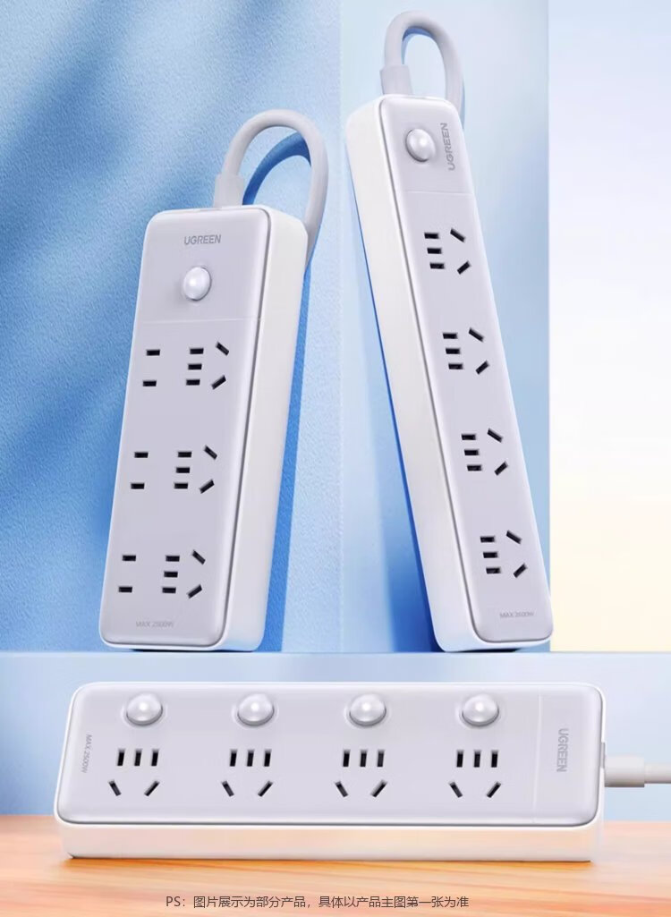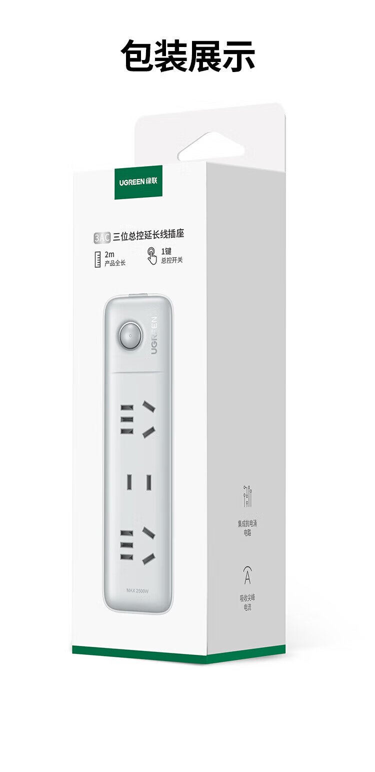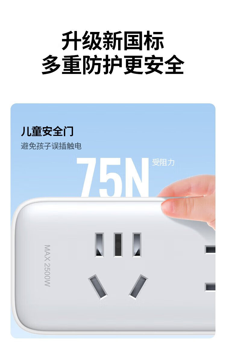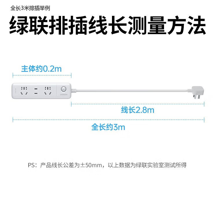 Green Alliance plug-in strip/socket board/row plug/desktop socket expansion new national standard plug-in board large spacing hole spacing wiring board dormitory household five-hole wire with switch 3-position master control combination, total length 0.5 meters