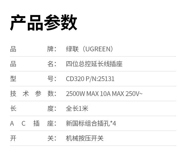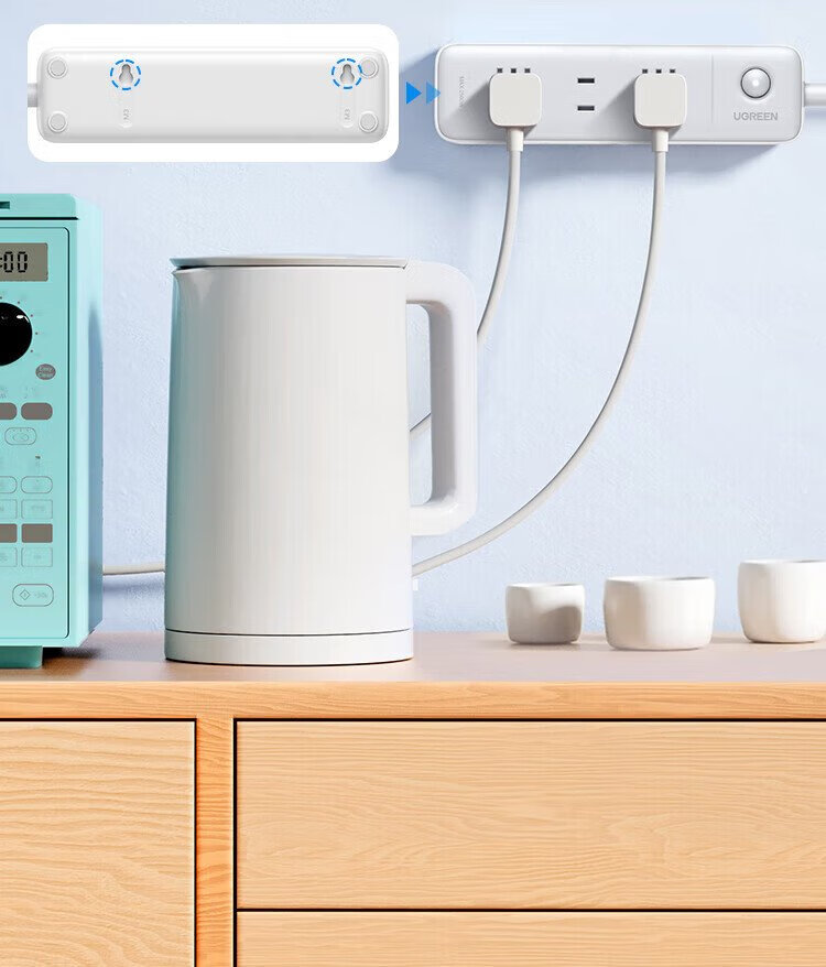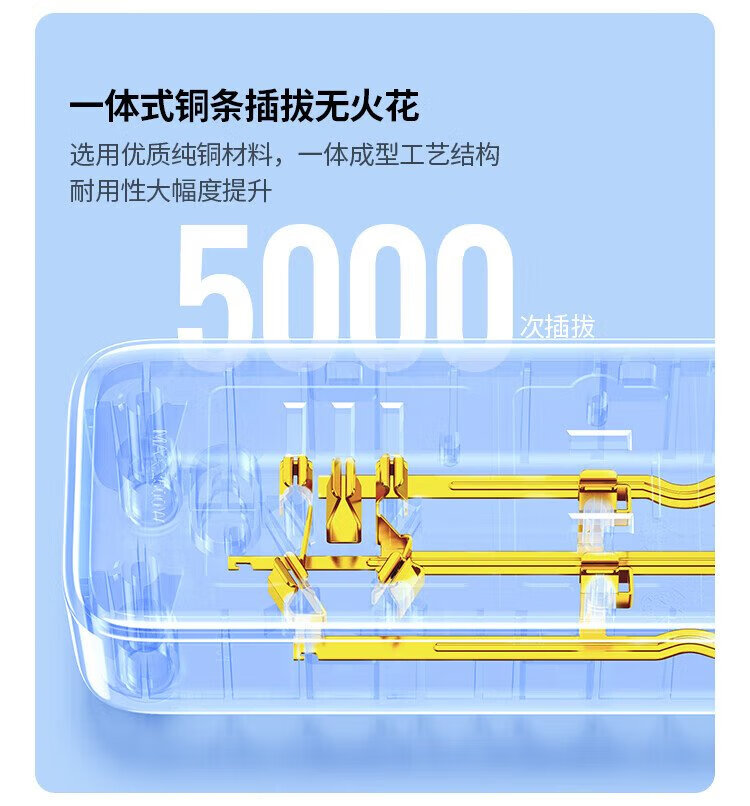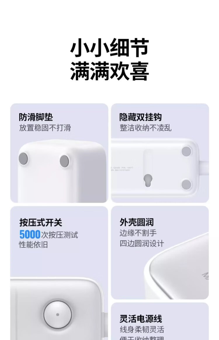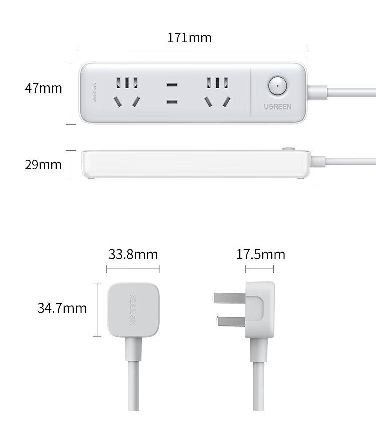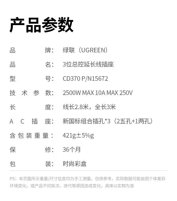 Green Alliance plug-in strip/socket board/row plug/desktop socket expansion new national standard plug-in board large spacing hole spacing wiring board dormitory household five-hole wire with switch 3-position master control combination, total length 0.5 meters