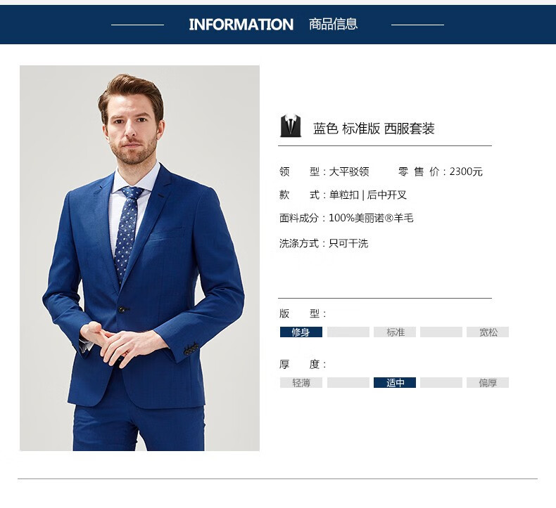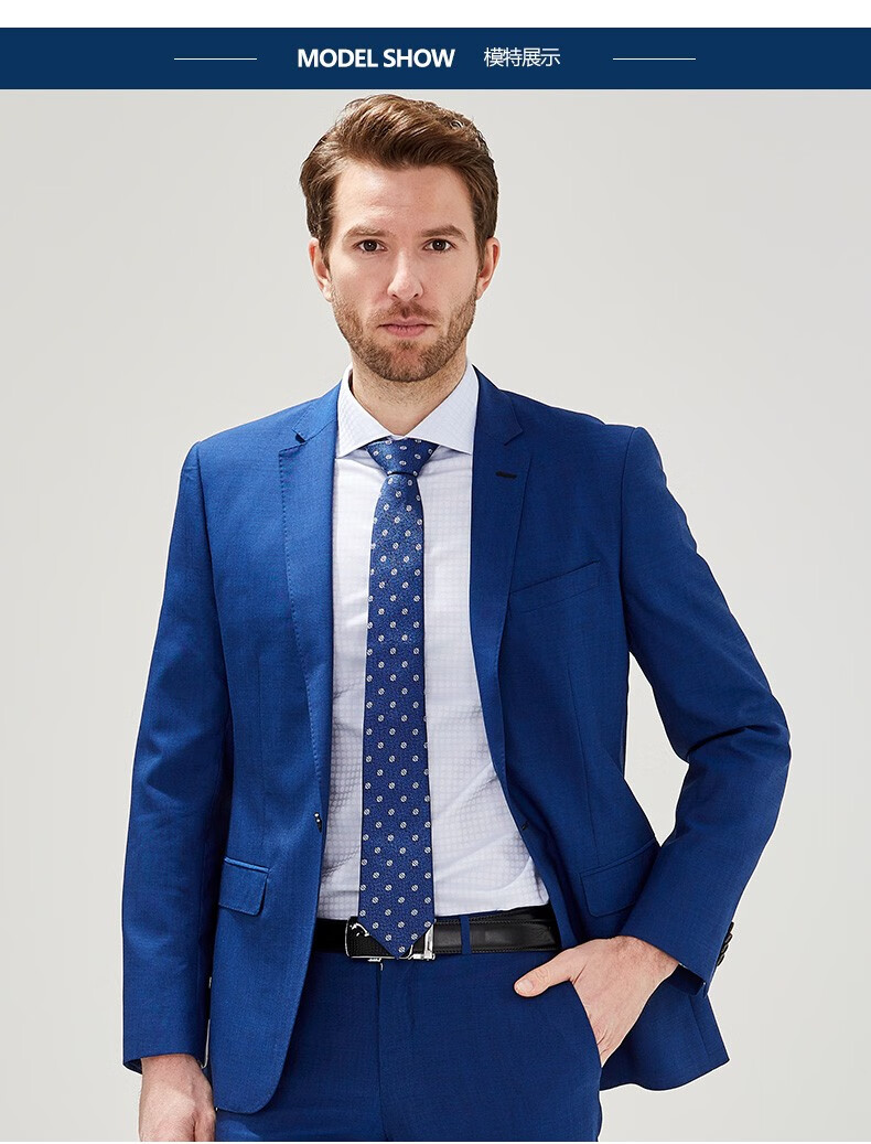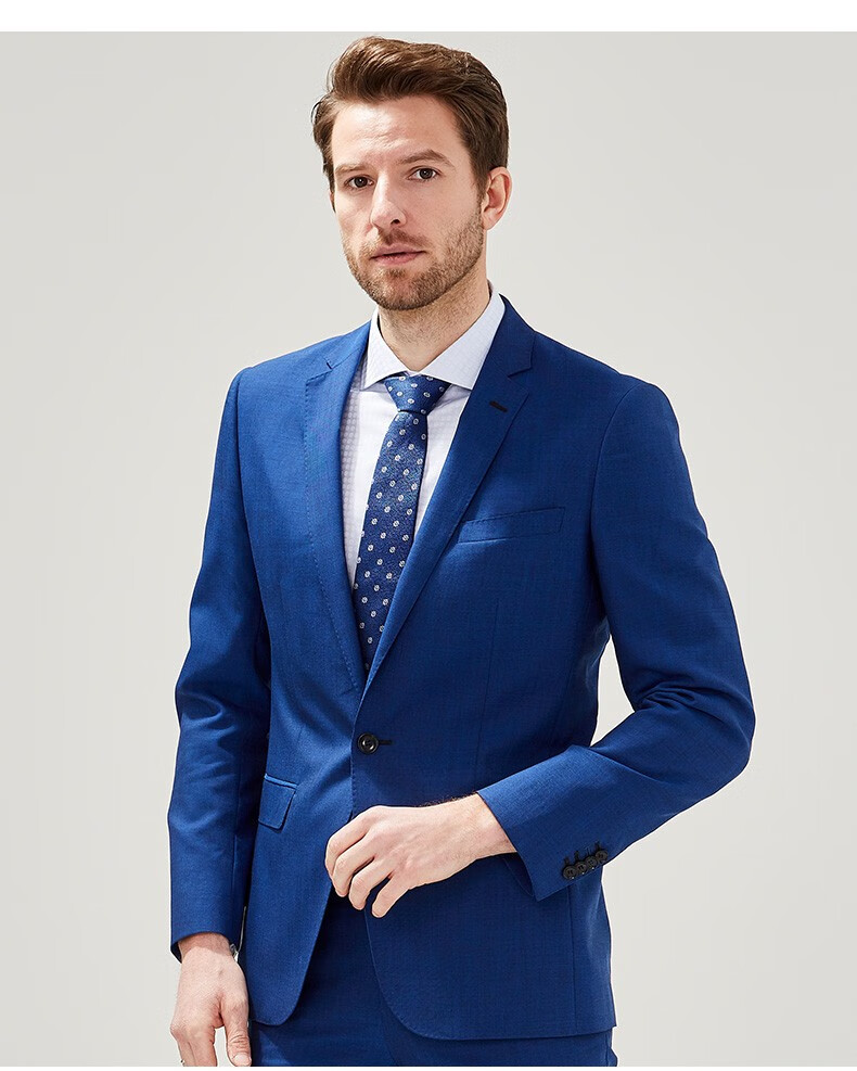 Jijia pure wool men's suit top Slim business casual professional solid color suit wool blue openable cufflinks 175A suit top