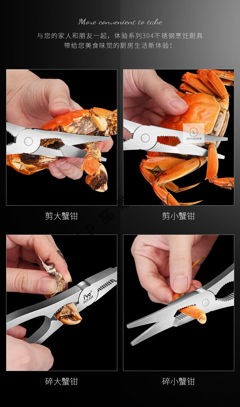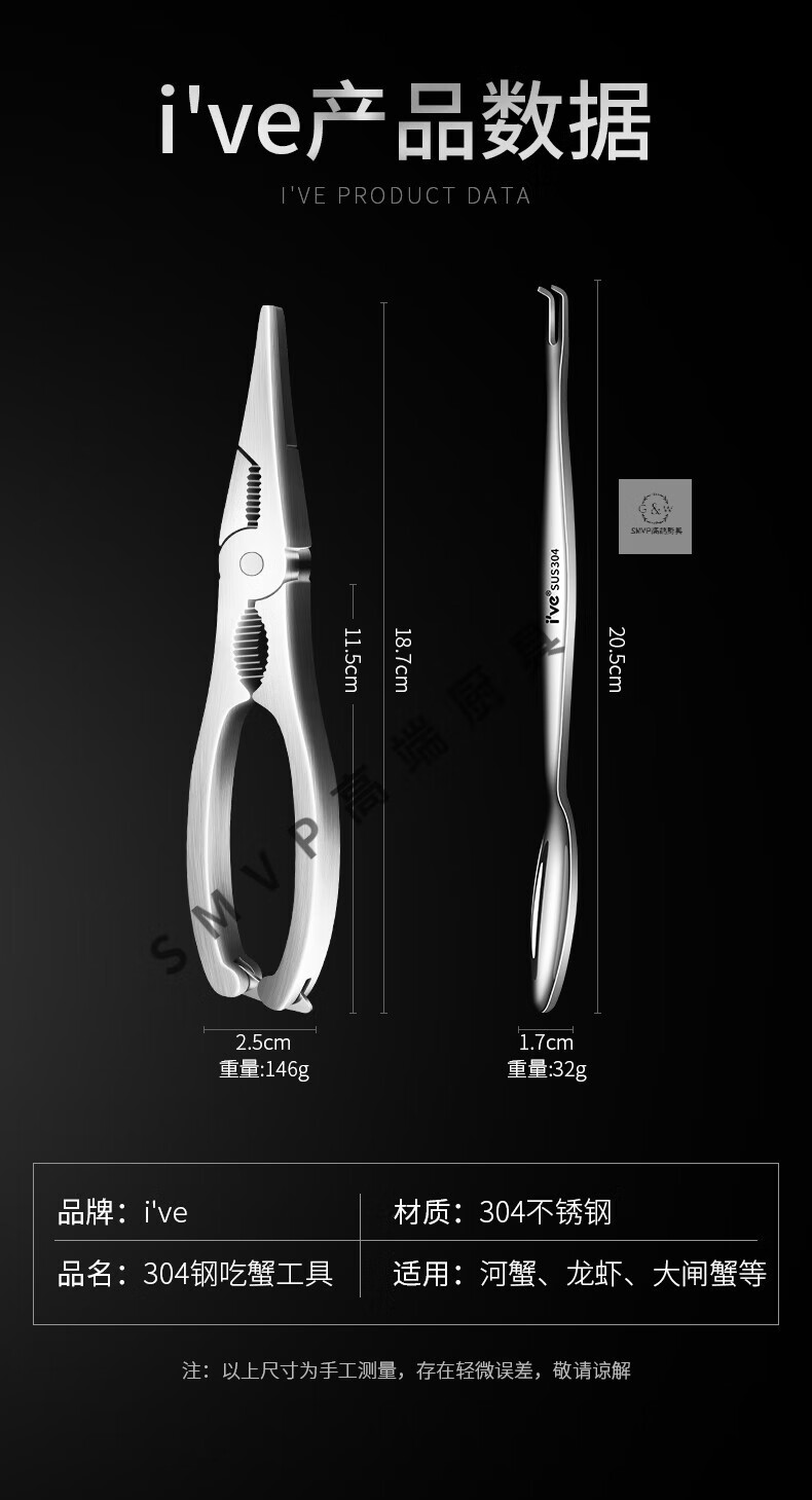 SMVP German ive 304 stainless steel crab claw clip household eight-piece hairy crab eating tool crab eating artifact set 304 stainless steel crab claw