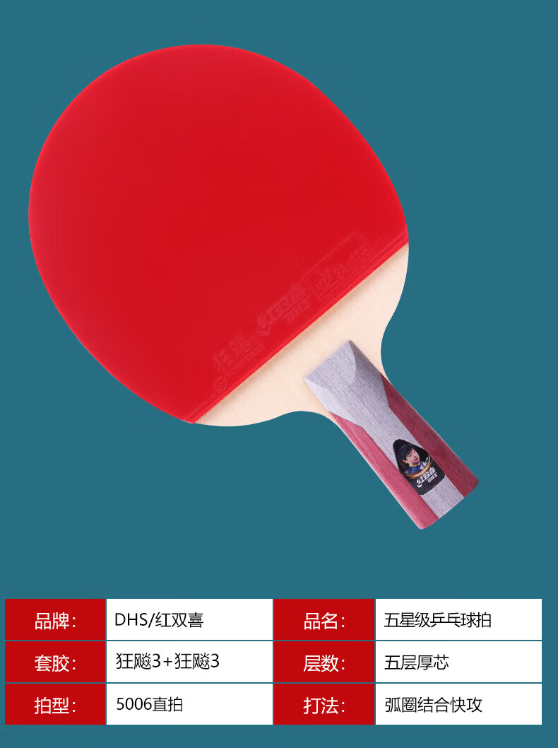 Red Double Happiness table tennis racket five-star 2-pack 5-star straight and horizontal all-round table tennis racket pair five-star 1 straight and 1 horizontal including ball + racket case