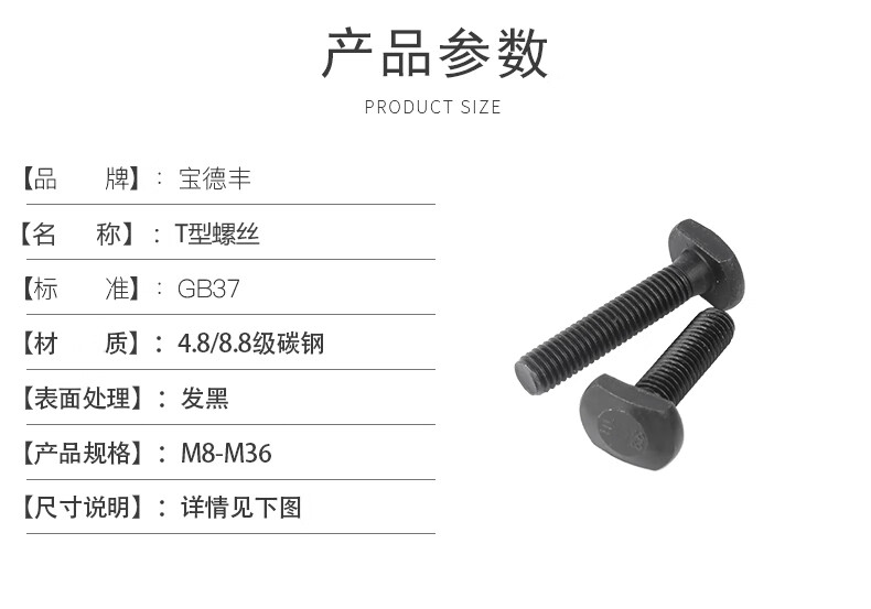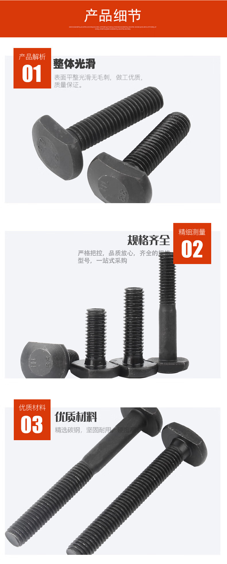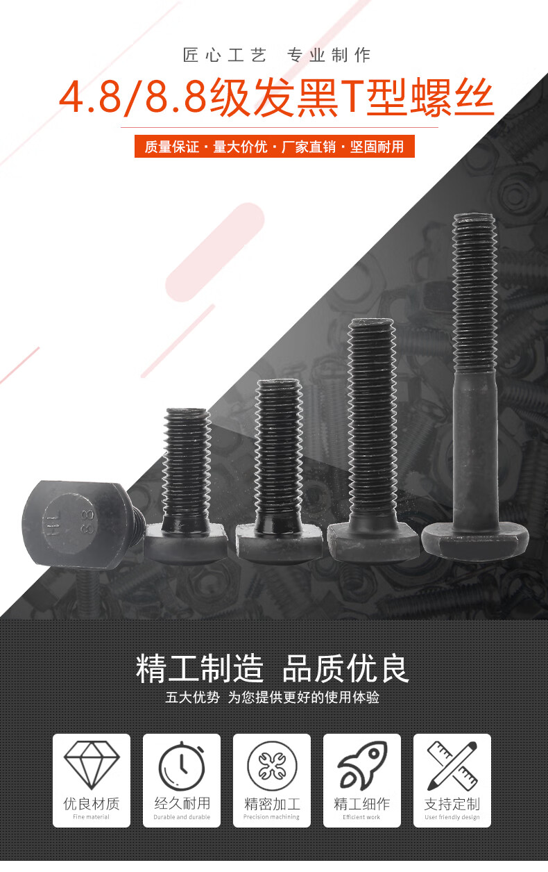 Baodefeng T-type screws 8.8 grade GB37 pressure plate screws high-strength black T-shaped slot bolt mold screws M8x35 full teeth (10 pieces)