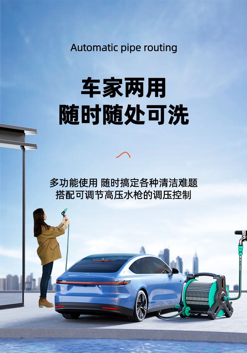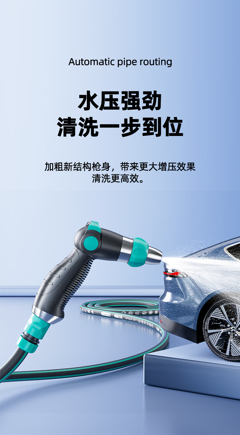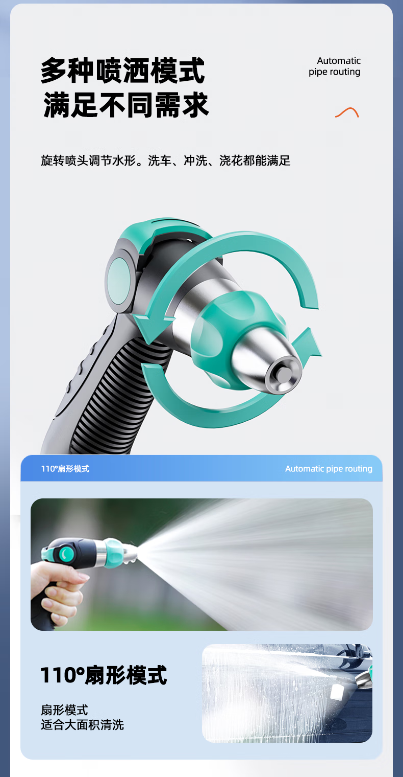 Andeke car wash high-pressure water gun high-pressure flushing flower watering hose hose car brushing water gun non-knot household tap water washing floor automatic pipe drain 25 meters set-metal high-pressure water gun