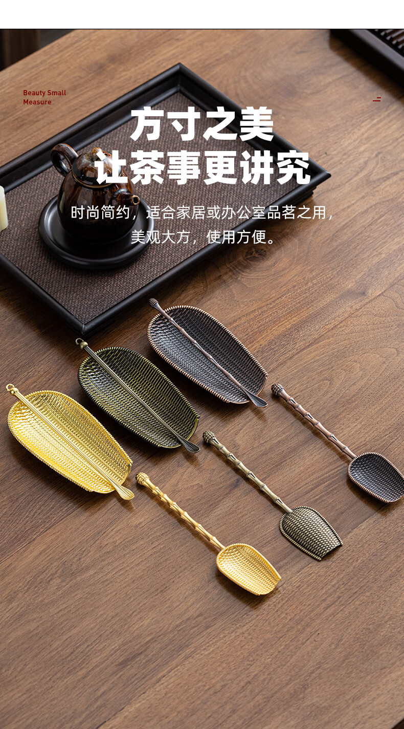 Yuan Tao Kiln Tea Tea Ceremony Accessories Tea Lotus Creative Braided Tea Spoon Tea Paddle Tea Spoon Alloy Kung Fu Tea Set Tea Ceremony Accessories Tea Appreciation Dustpan Tea Spoon - Gold