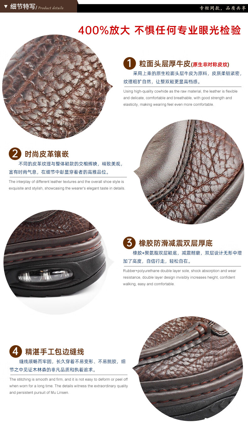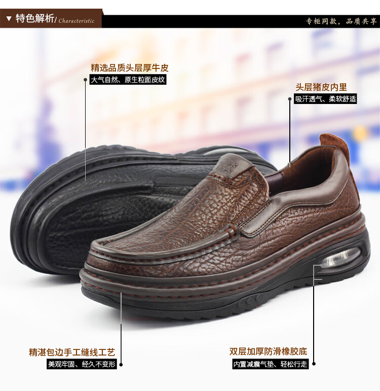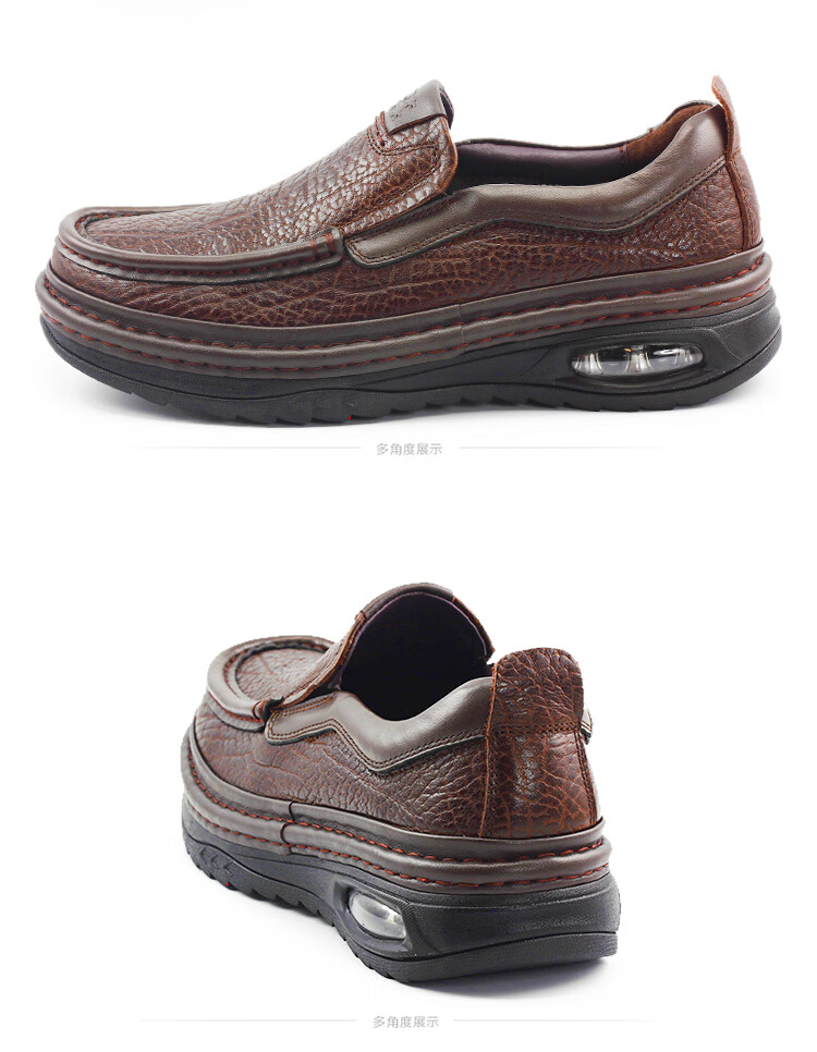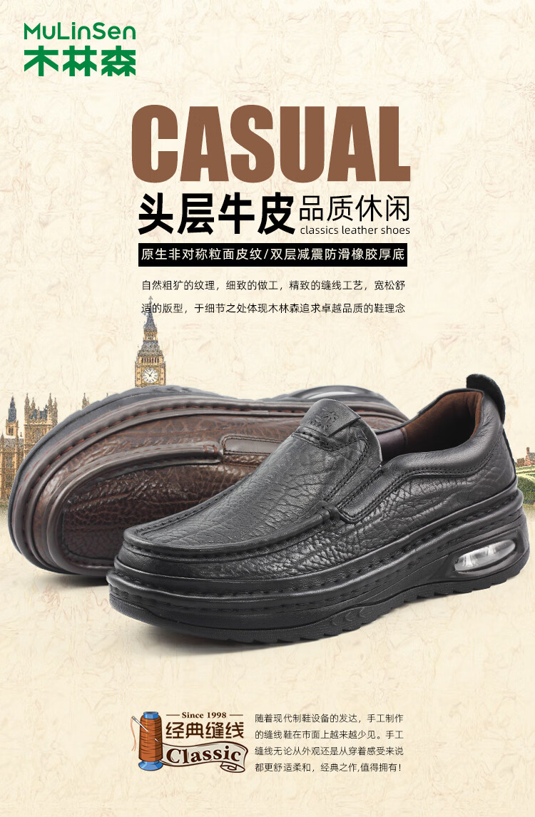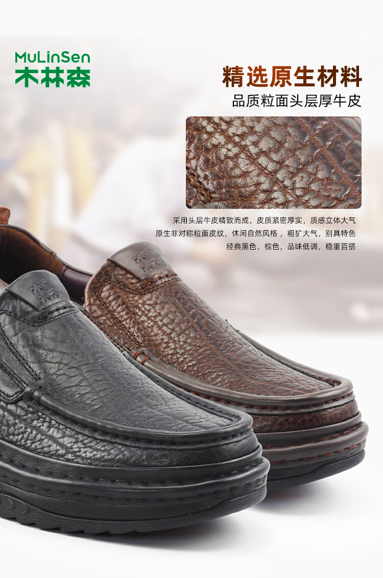 Mulinsen high-end business casual men's toe-layer cowhide loose slip-on thick-soled leather shoes for men new shock-absorbing and anti-slip model brown 39 (250mm) larger plate type