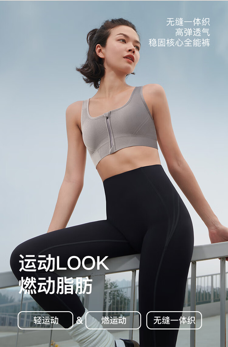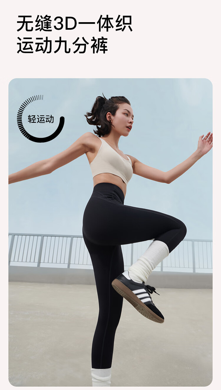 ubras无缝3D一体织运动裤九分裤高弹瑜伽打底裤百搭健身服 运动九分裤-黑色 XL