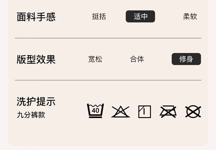 Outseam (cm) 99 cm 101.5 cm 104 cm 106.5 cm 109 cm