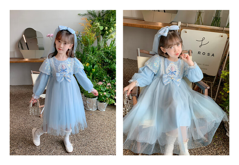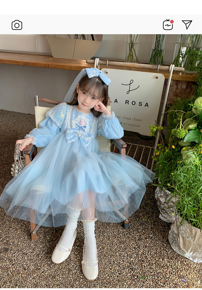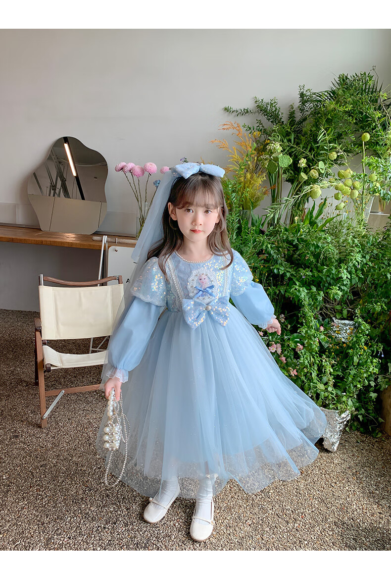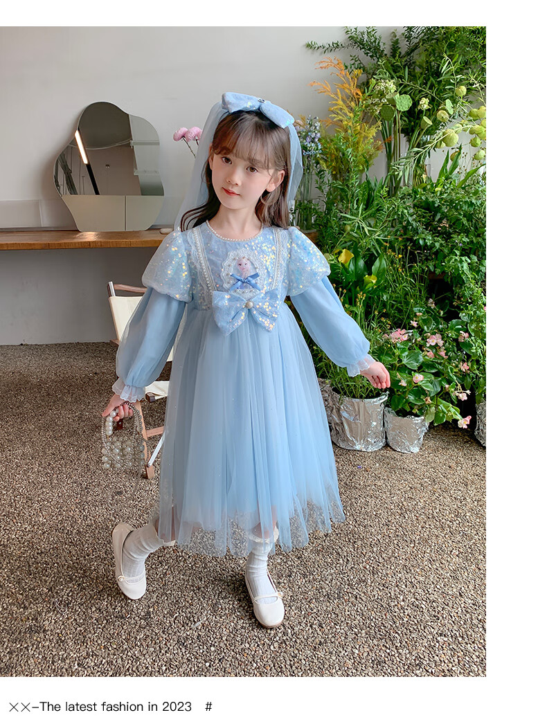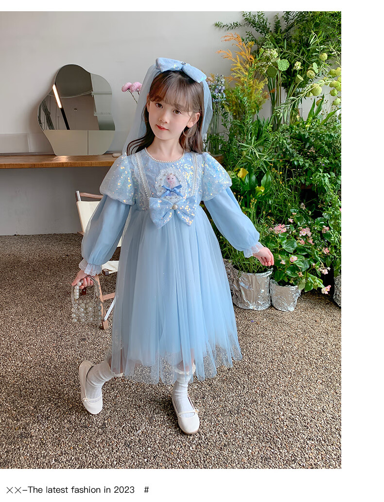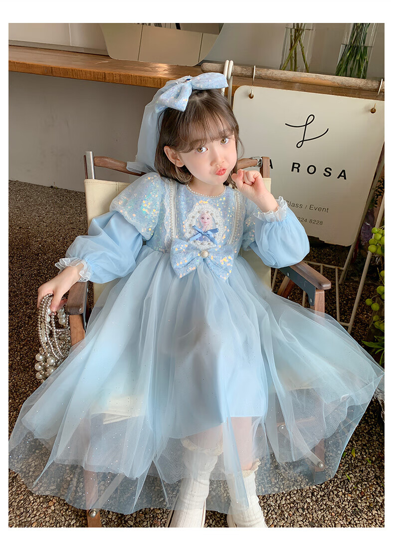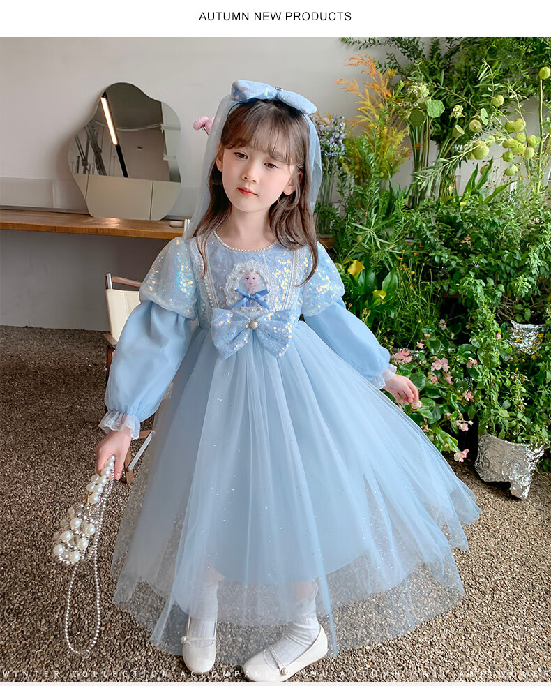 Annie Youer Elsa Princess Dress Girls Autumn Skirt 2025 Spring and Autumn New Frozen Girl Elsa Dress Autumn Blue 110