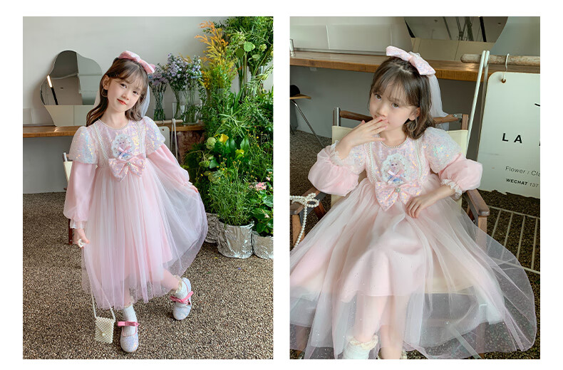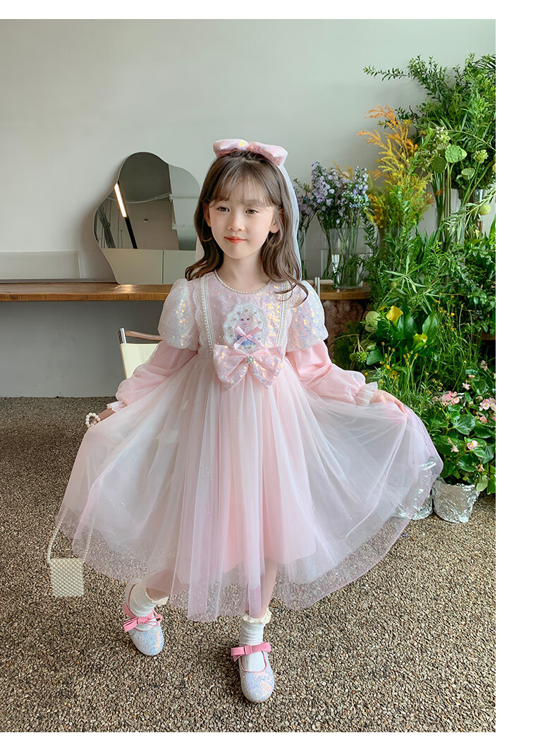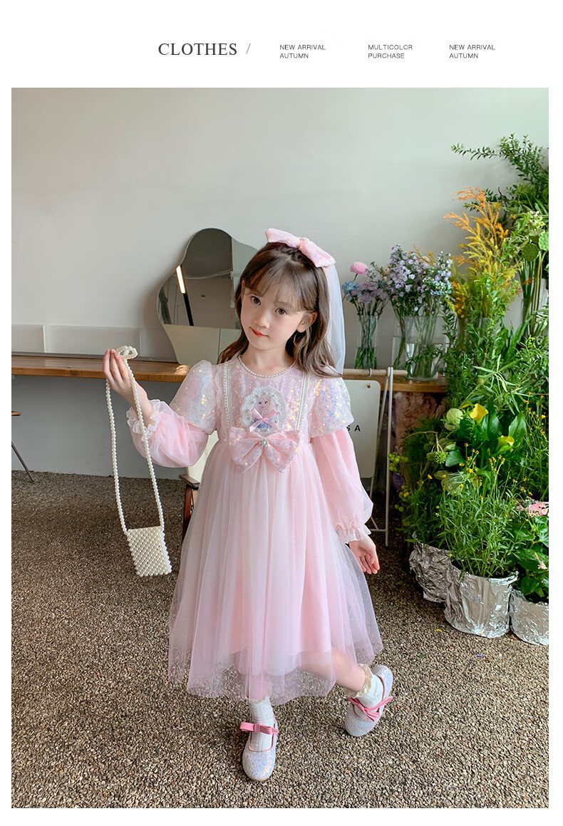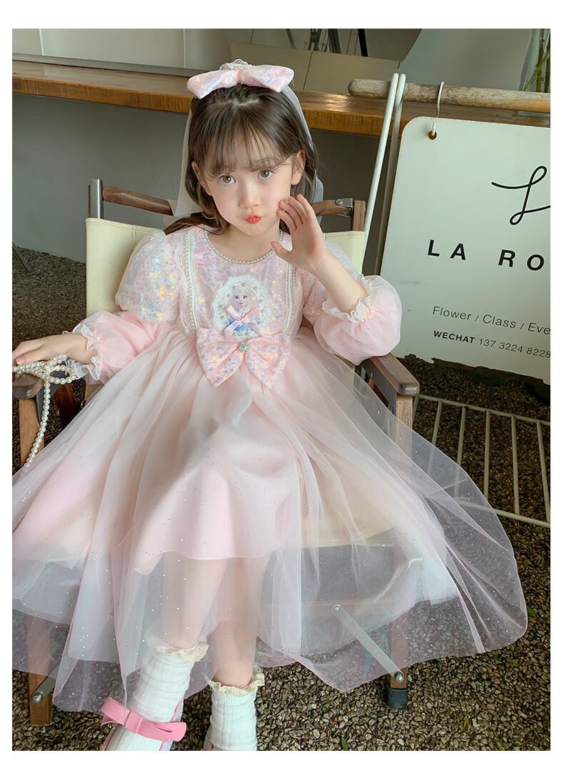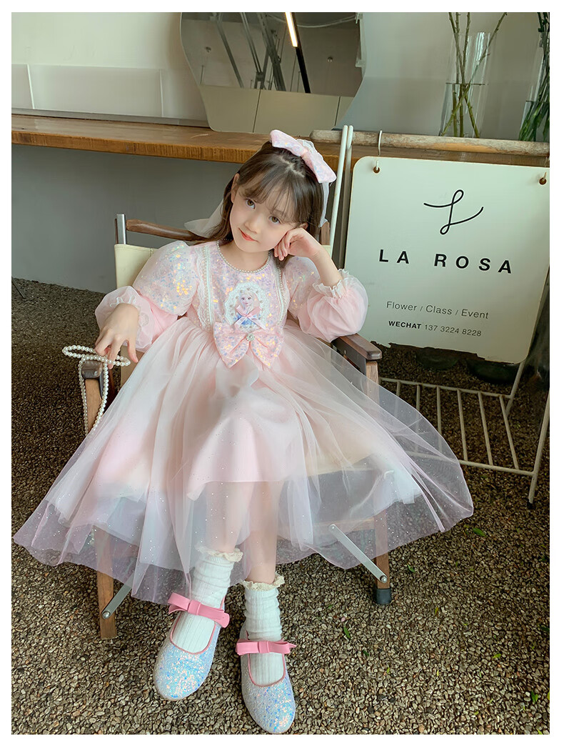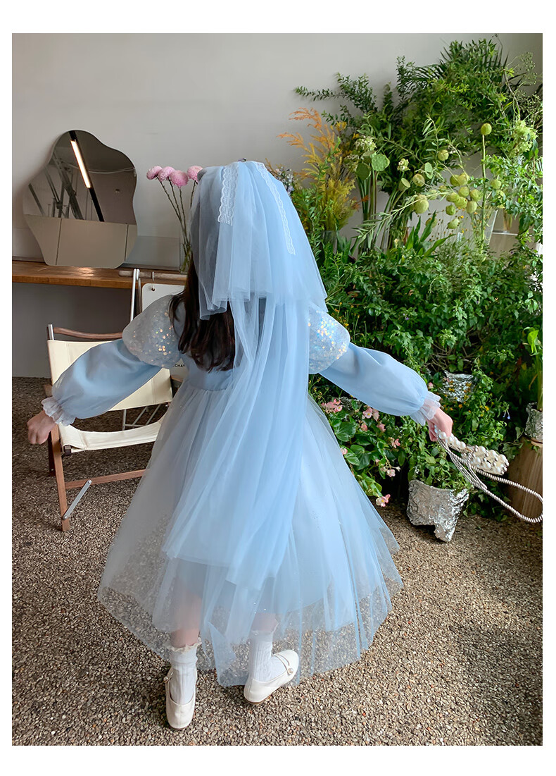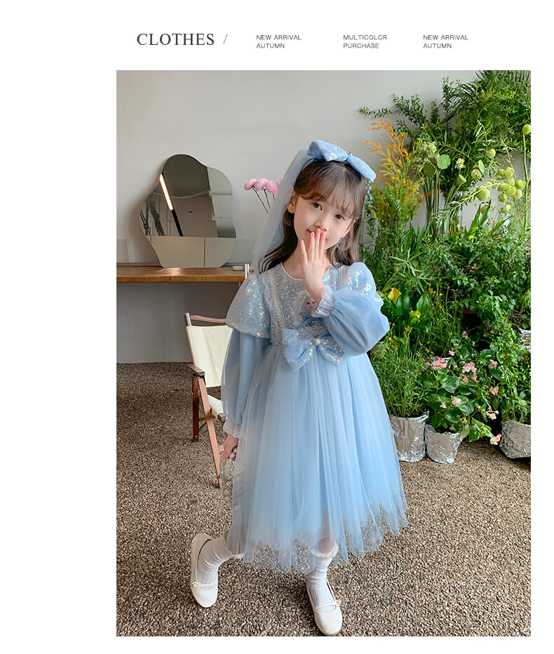 Annie Youer Elsa Princess Dress Girls Autumn Skirt 2025 Spring and Autumn New Frozen Girl Elsa Dress Autumn Blue 110