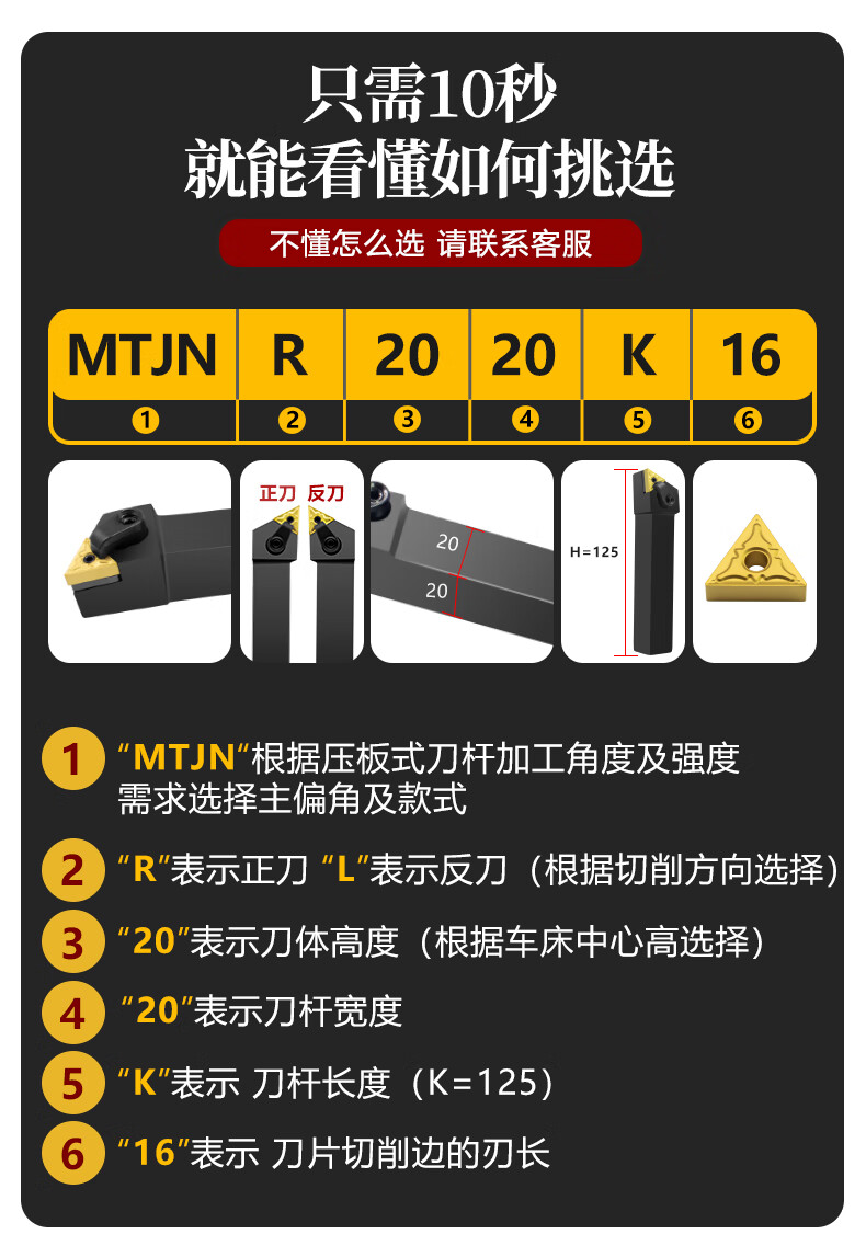 Cabos CNC tool holder outer circle 60 degrees 91 degrees 93 degrees turning tool holder end tool holder MTJNR/WTJNR/MTFNR carbide lathe tool MTJNR2525M16 straight tool (No. 1 tool holder)