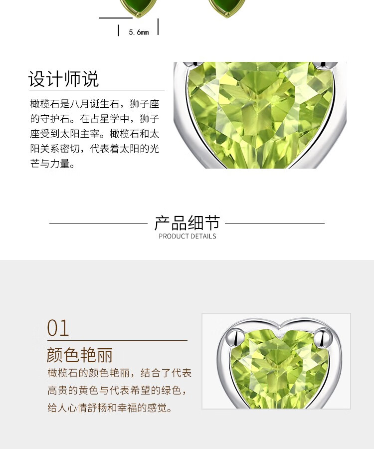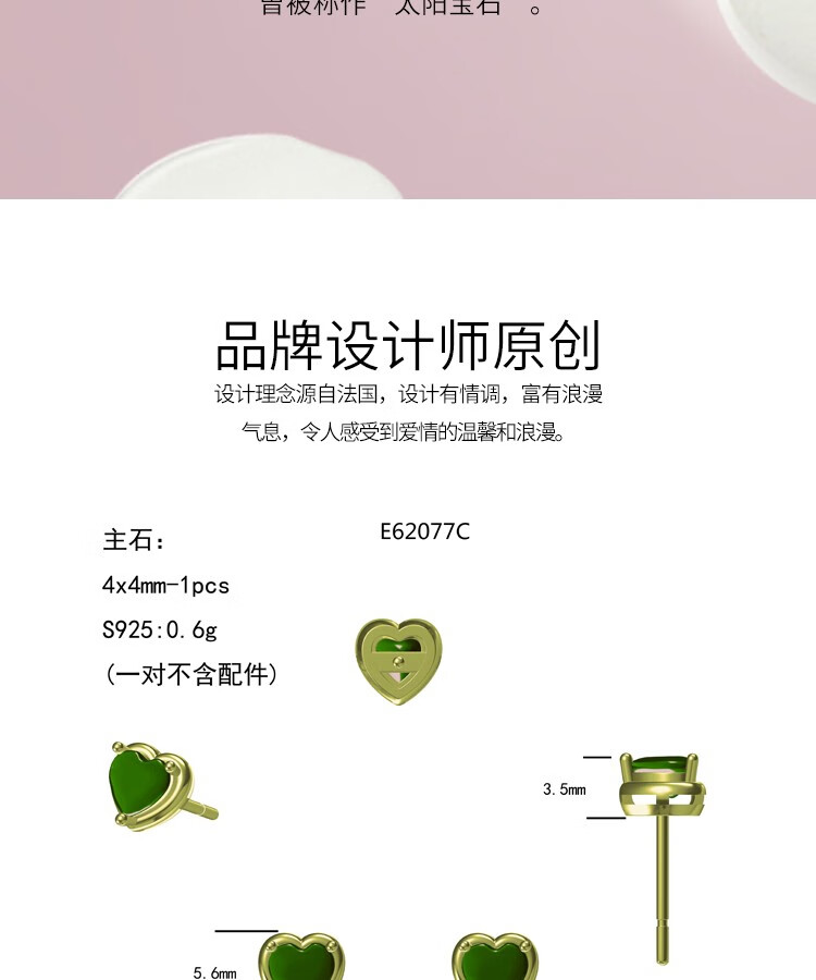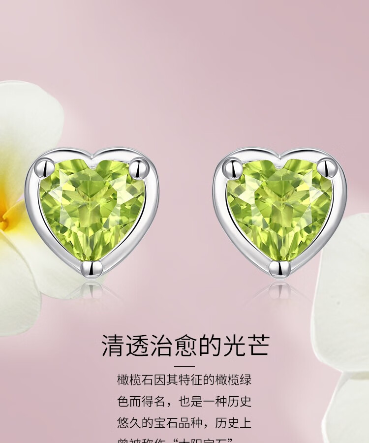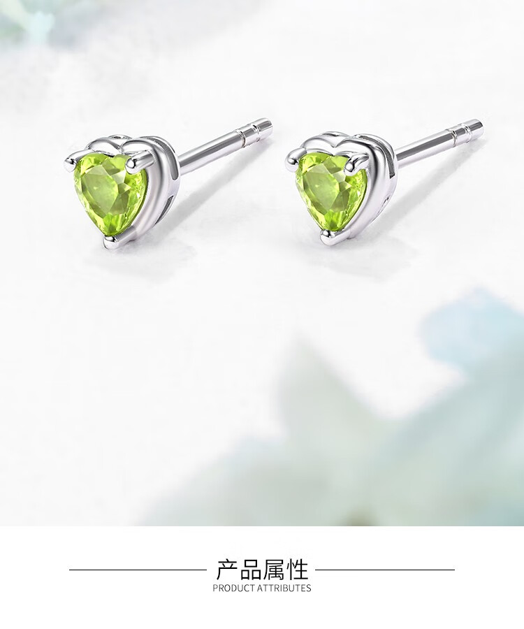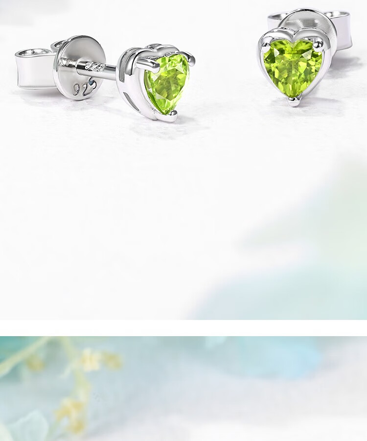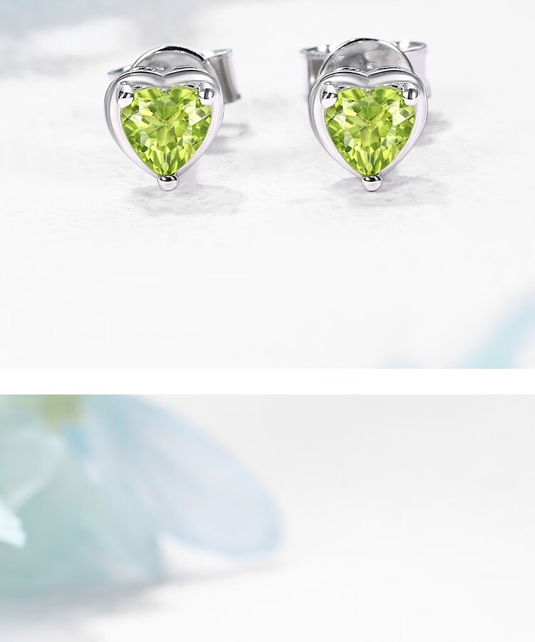 CAJJ Francois 0.53 carat peridot love earrings earrings, natural jewelry colored gems, 925 silver inlaid with gemstones, peridot heart-shaped earrings