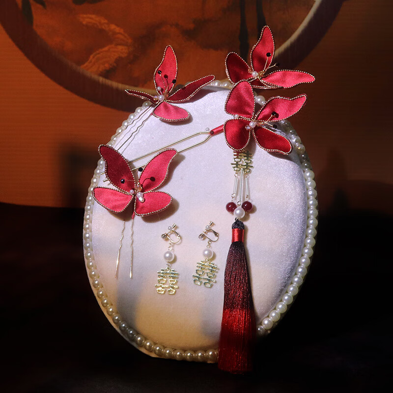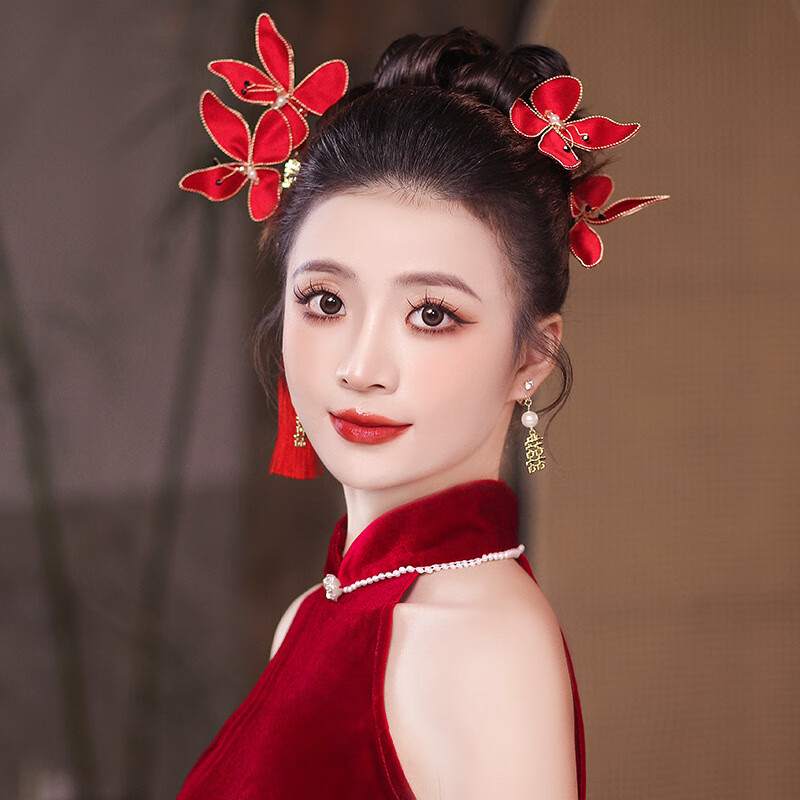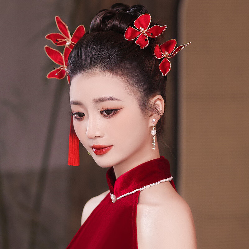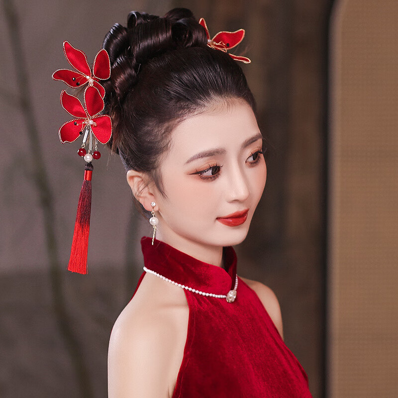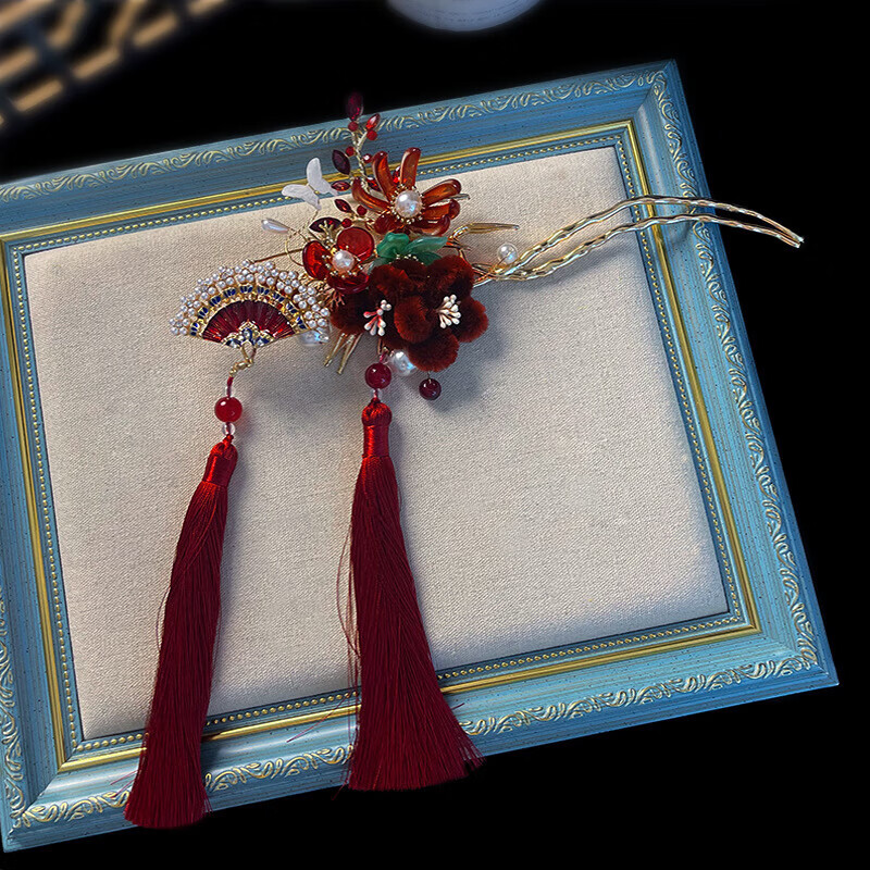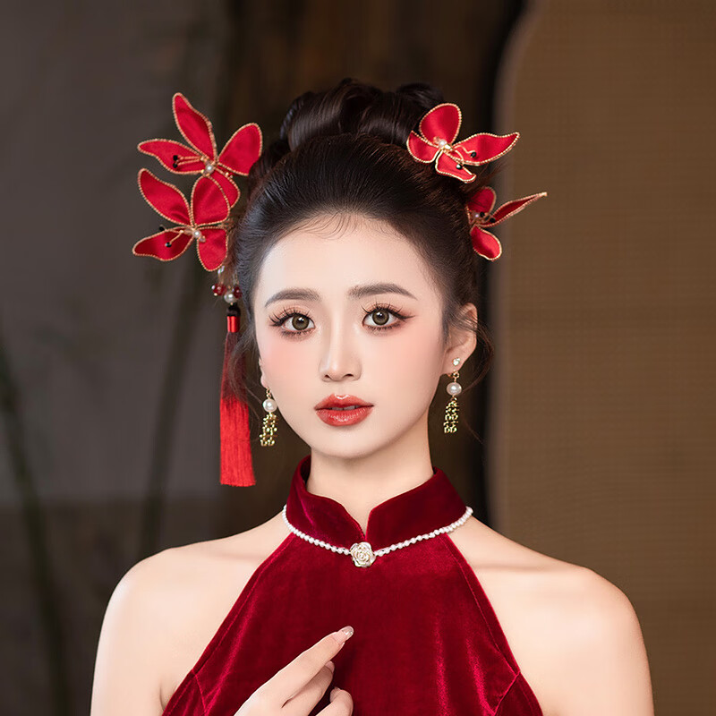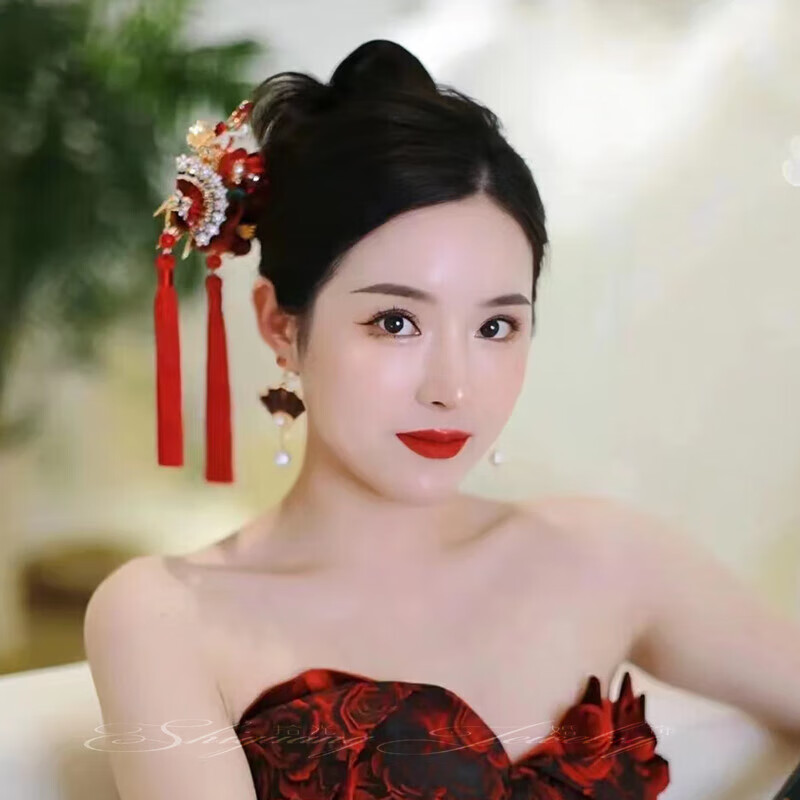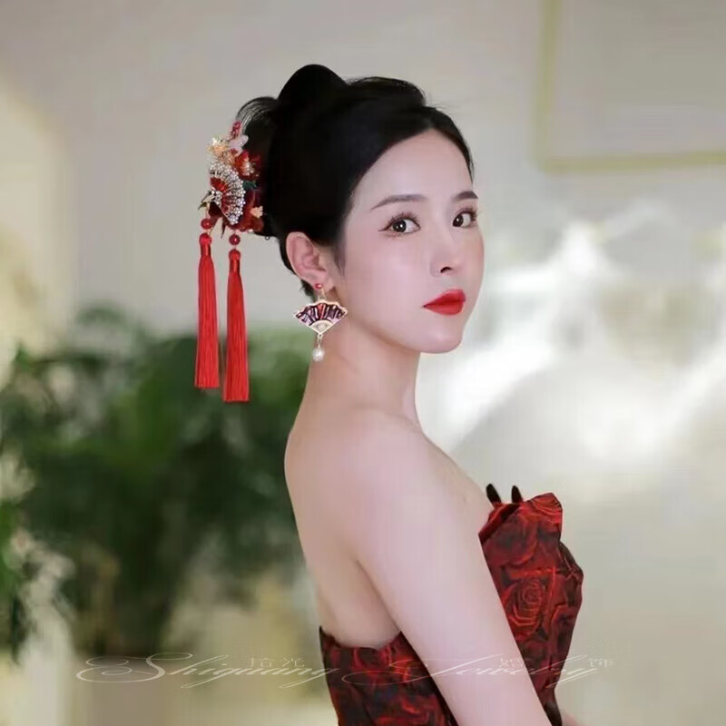 Ancient new Chinese style red tassel headdress bride Xiuhe suit temperament ancient style toasting suit hair accessories temperament style bridal headdress set