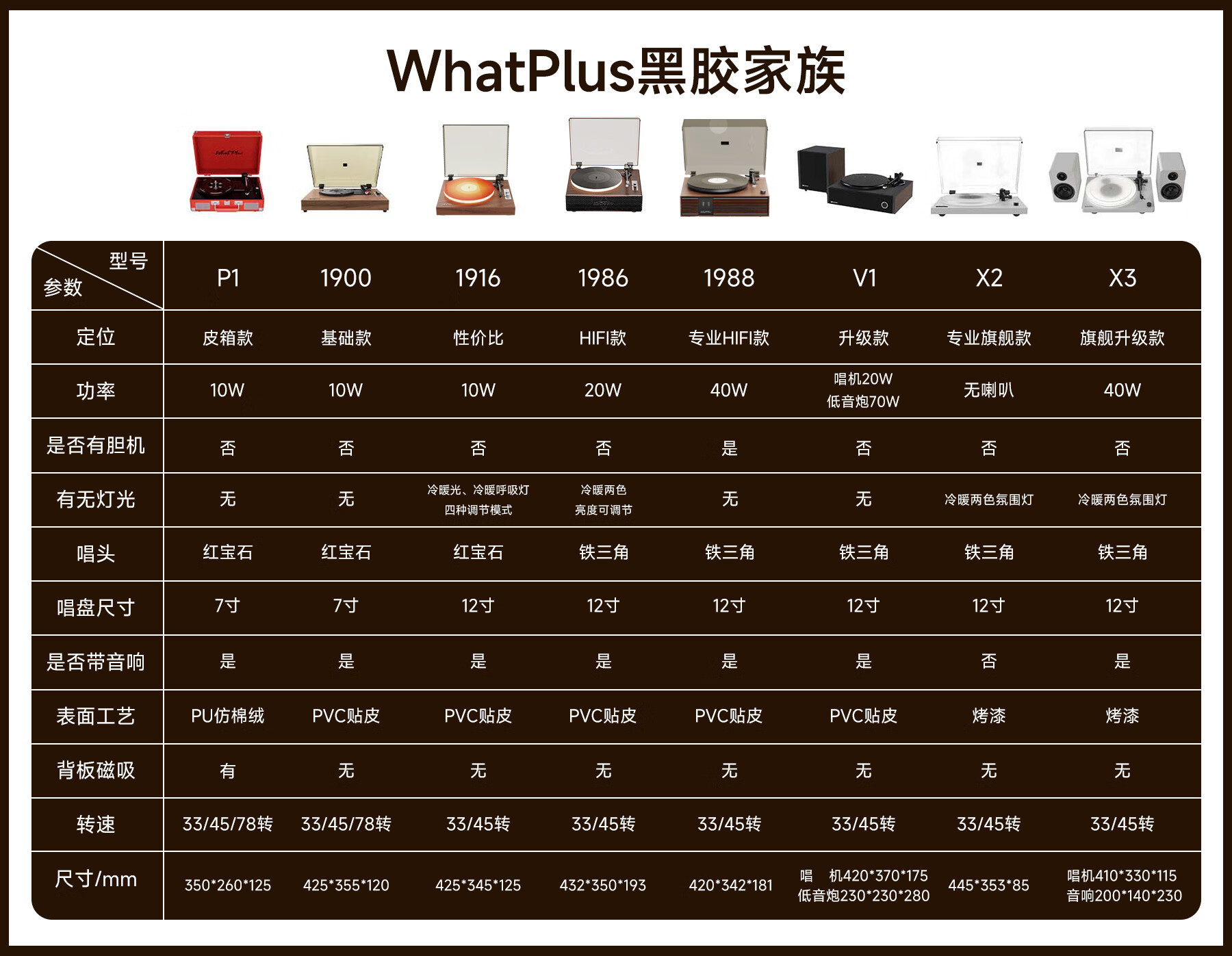 WHATPLUS From1900 vinyl record player retro Bluetooth audio integrated record player birthday gift high-end gramophone audio living room vinyl record player deep black