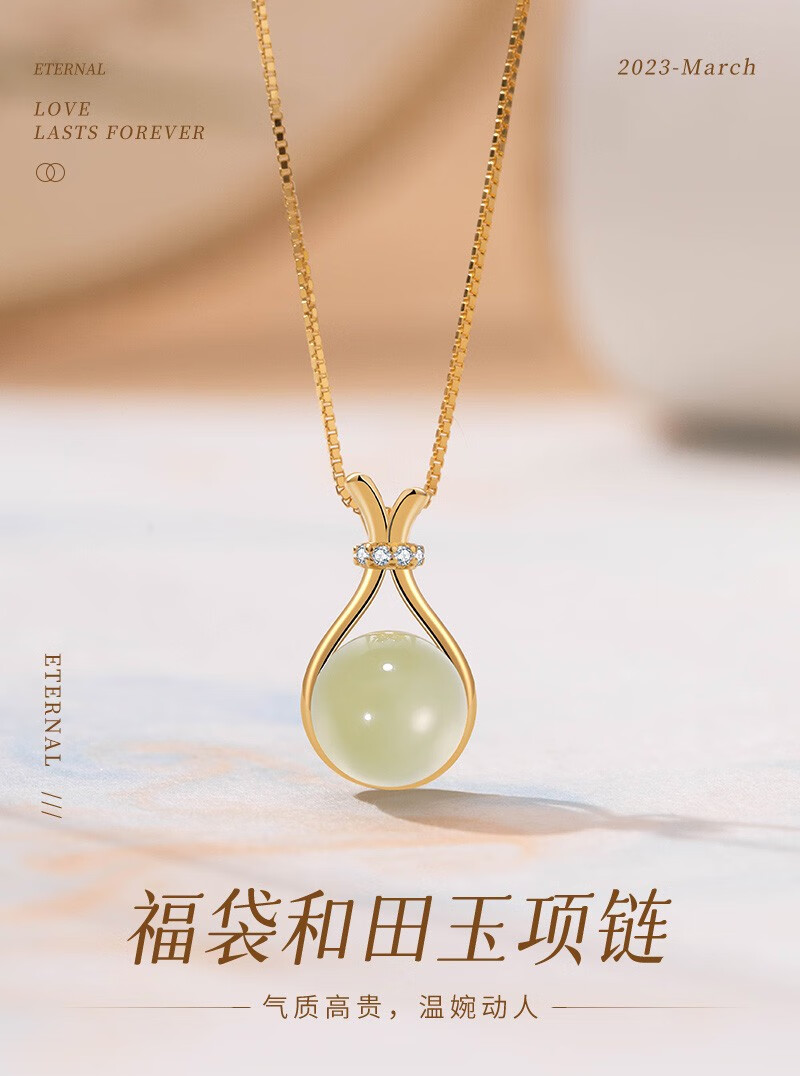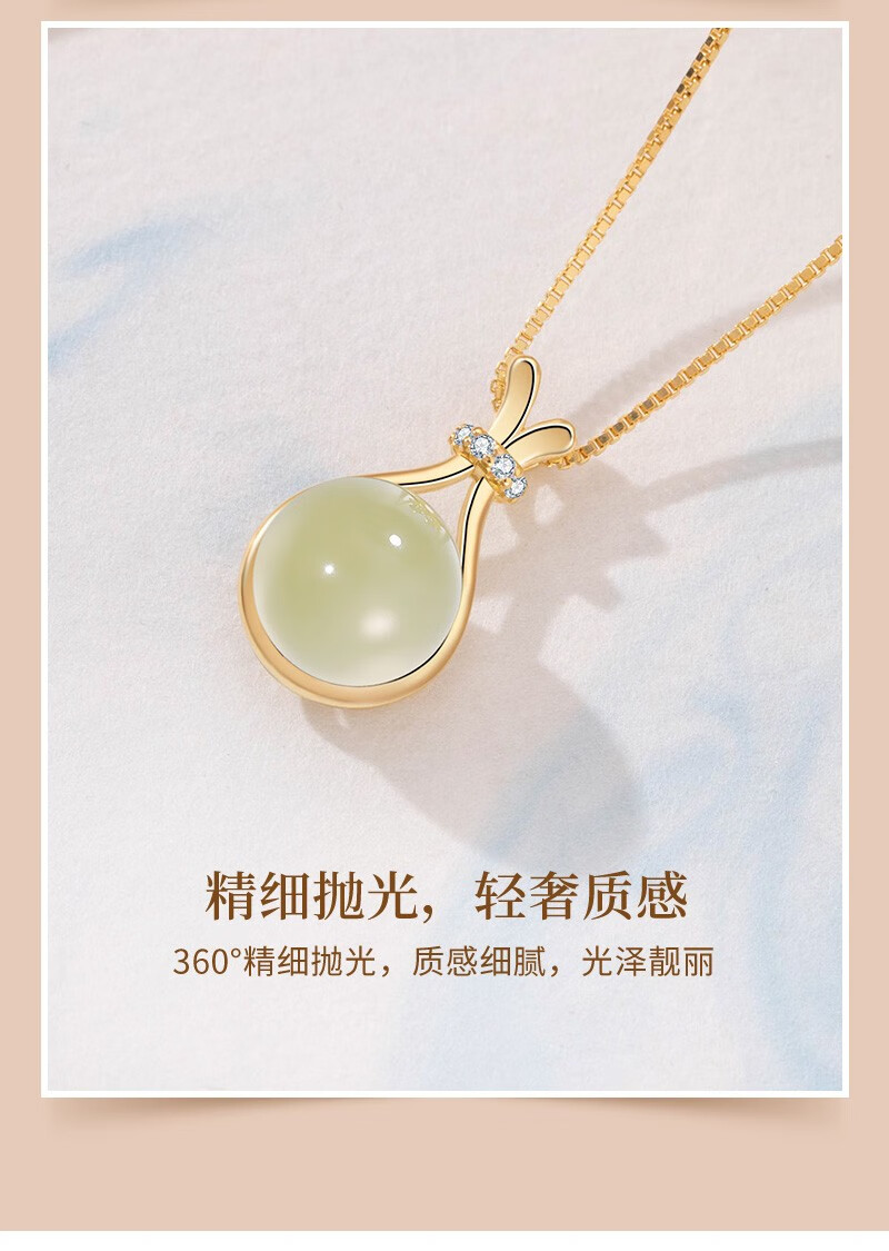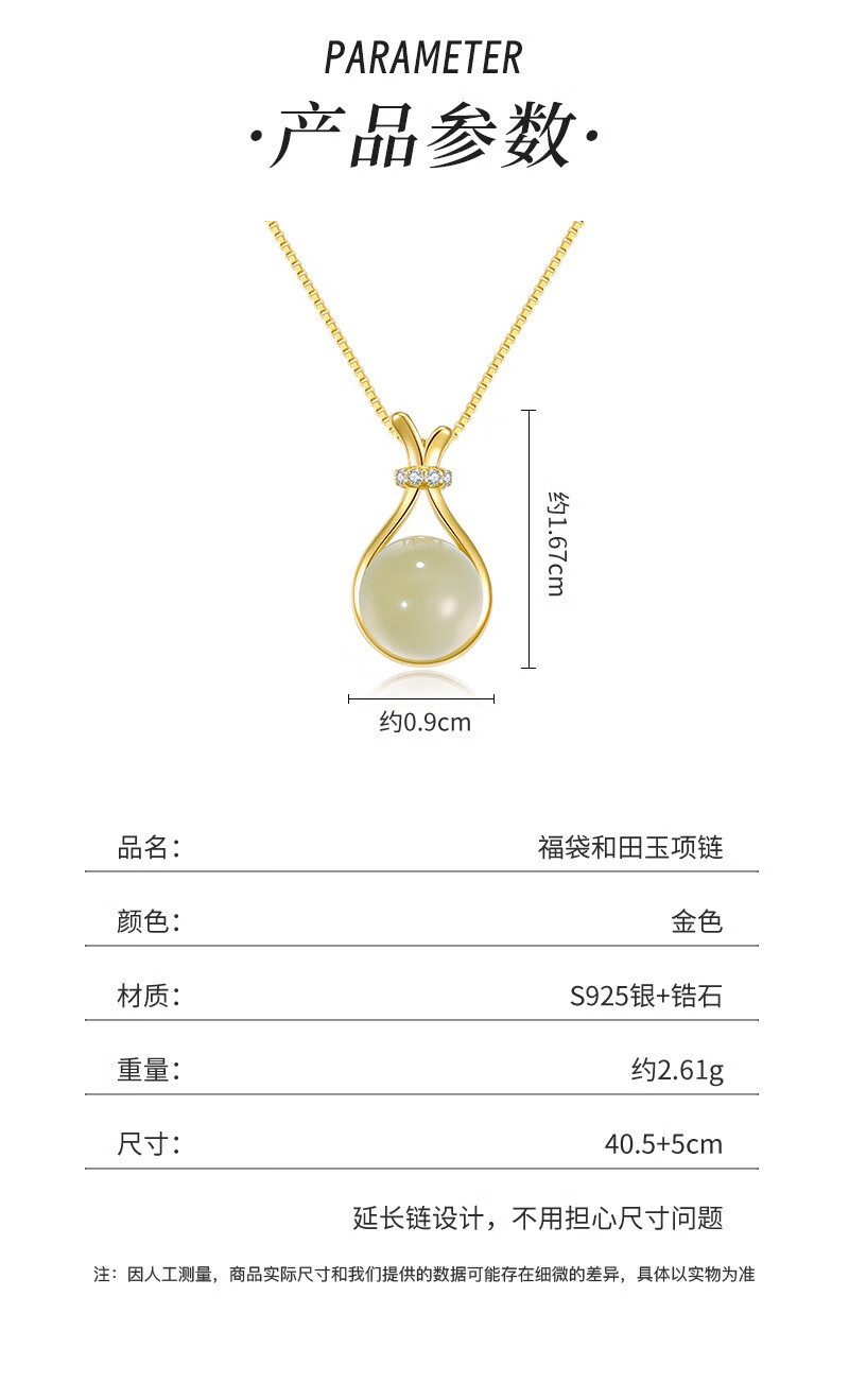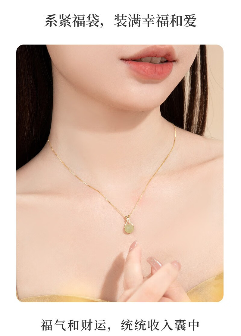 MOLADY S925 Silver Hetian Jade Necklace Women's Light Luxury Lucky Bag Pendant Girl's Birthday Anniversary Gift for Girlfriend and Wife Imported Zircon Lucky Bag Hetian Jade Necklace* Gift Box