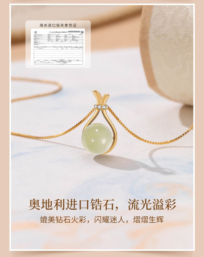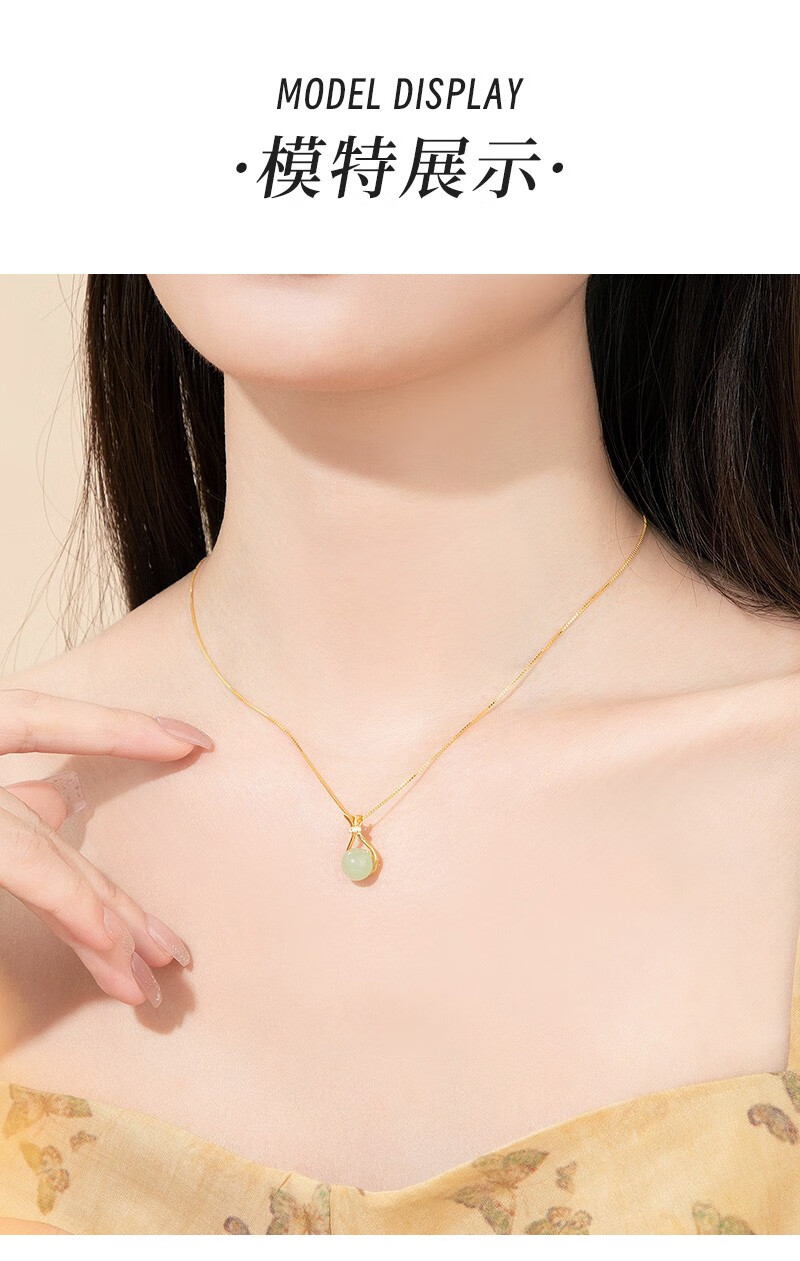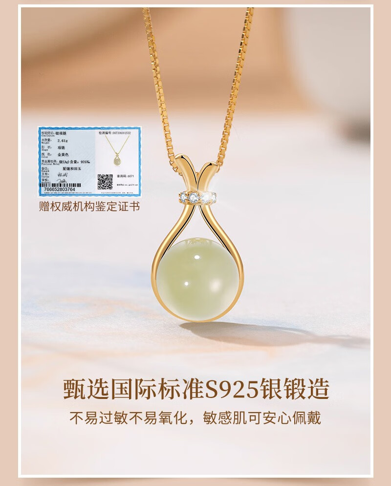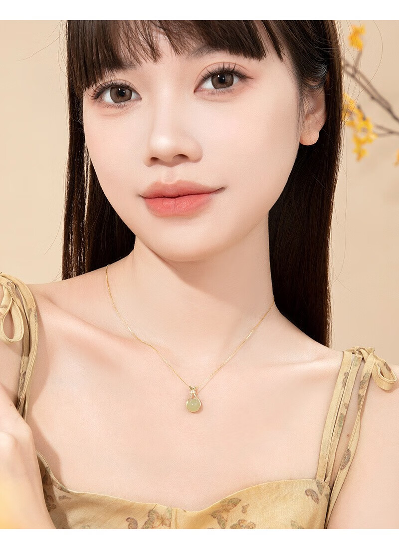 MOLADY S925 Silver Hetian Jade Necklace Women's Light Luxury Lucky Bag Pendant Girl's Birthday Anniversary Gift for Girlfriend and Wife Imported Zircon Lucky Bag Hetian Jade Necklace* Gift Box