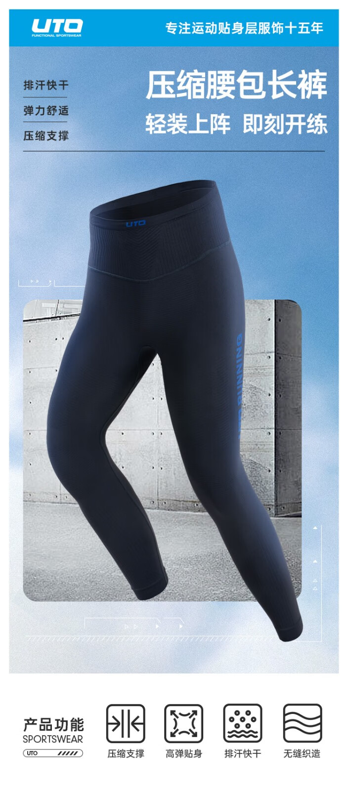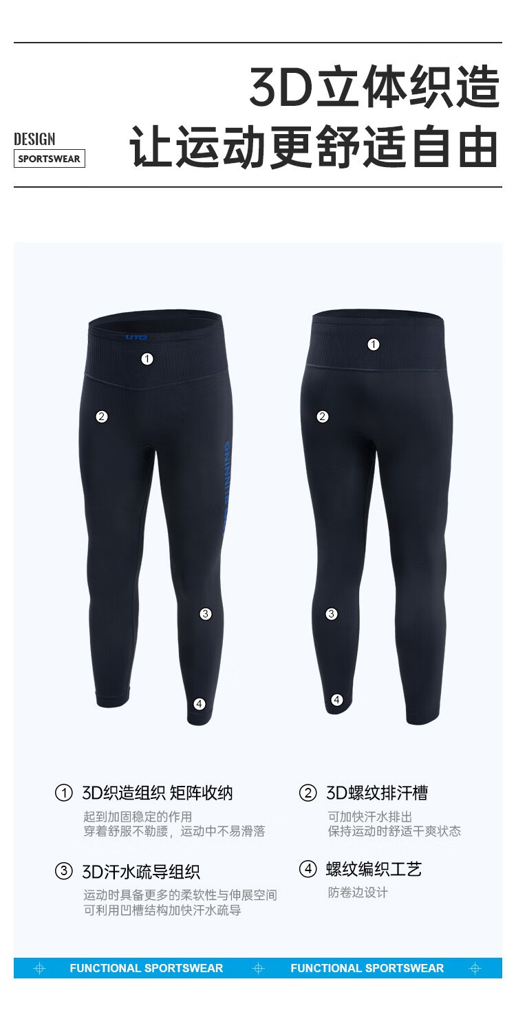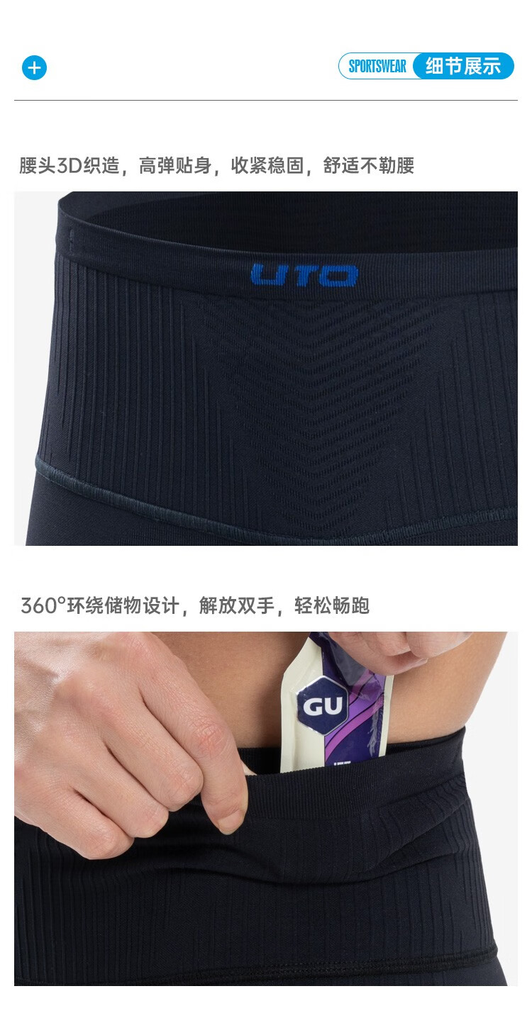 UTO compression pants for men and women running pants marathon professional sports fitness pants mobile phone waist bag pants black-men's L
